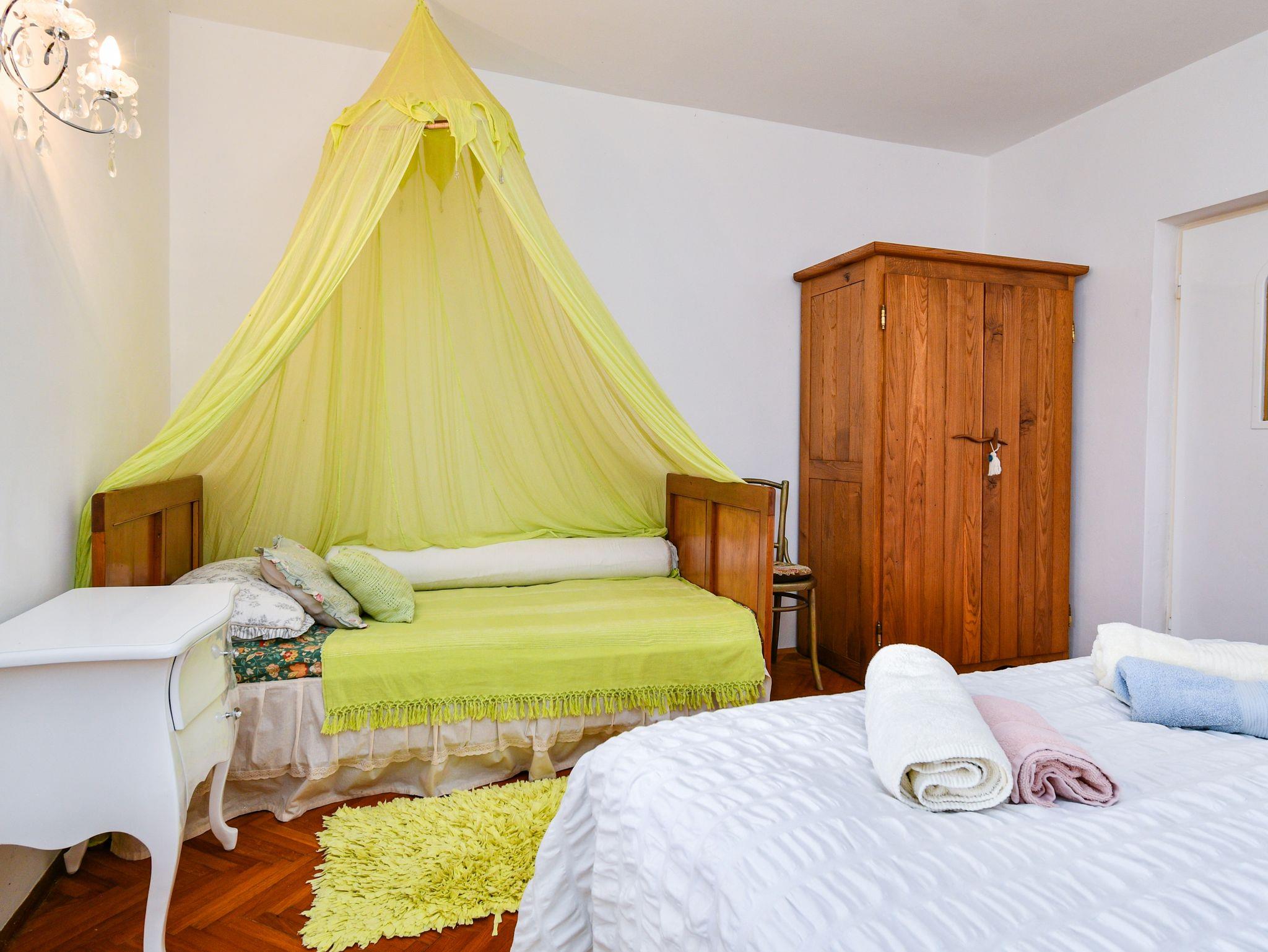 Umgebung des Objekts (Ordentlich), Hof (700m2, Kinderbereich, Sitzbereich), Parkplatz (Anzahl der Parkplätze: 5, Entfernung vom Objekt: im Hof), Pool: gemeinsam, Dimensionen: 8m x 5m x 1.55m, Wassertyp: Süßwasser, Heizung: Ja, Grill: gemeinsam, WiFi Internet, Fahrrad (Anzahl: 4), Föhn, Kinderbett