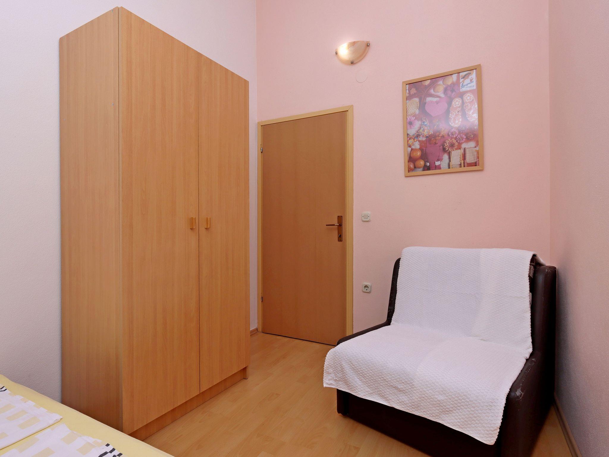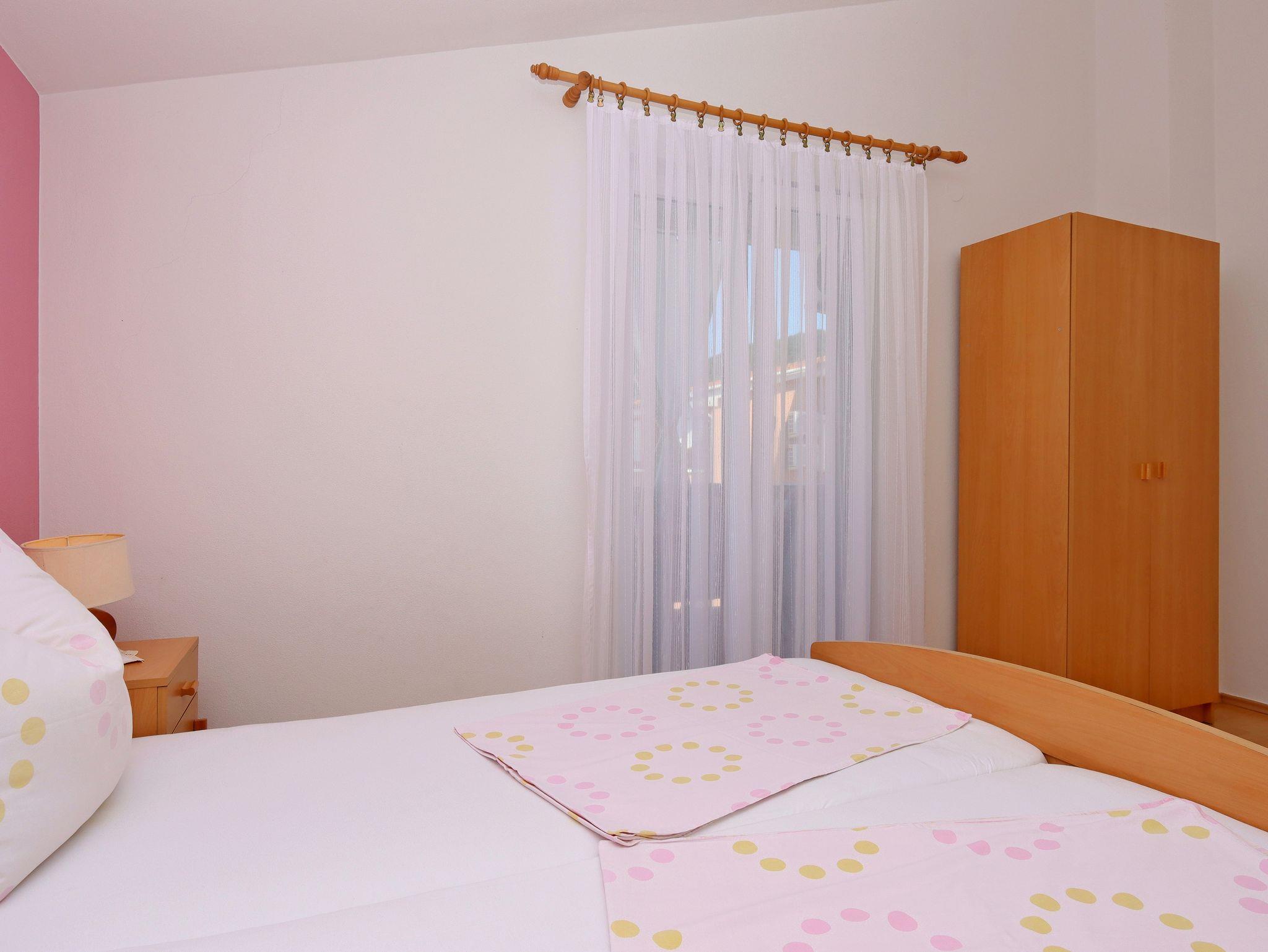 Ferienwohnung bietet Platz für 4 Gäste. Die Betten sind in Schlafzimmern, die es 2 gibt, innerhalb einer Gesamtfläche von 32m2, angeordnet. Die Gäste haben einen eigenen Balkon zur Verfügung, auf der sie in warmen Sommernächten genießen können. Es ist erlaubt, Speisen auf dem Gemeinschafts-Grill vorzubereiten. IM PREIS INBEGRIFFEN: Kurtaxe, Endreinigung, Klimatisierung, Parkplatz, Internet, Kinderbett. VERBINDLICHE ZUSÄTZLICHE KOSTEN: Aufzahlung für Kurzaufenthalte (prozentualer Zuschlag pro Nächtigungsanzahl: 30% - 1, 20% - 2, 10% - 3). Die Verfügbarkeit zusätzlicher Dienstleistungen in Ihrem reservierten Termin und die Preise derselben (falls nicht aufgeführt) müssen im Voraus überprüft werden. Zusätzliche Dienstleistungen die in der Zahlungsaufforderung nicht aufgeführt sind werden direkt beim Vermieter bezahlt, angenommen der Gast nutzt auch diese. Ermäßigung auf den Grundpreis: Gratistag 14=13 (bei einem Aufenthalt von 14 Tagen oder mehr erhalten Sie einen Gratistag für den Aufenthalt bis 31.12.26).