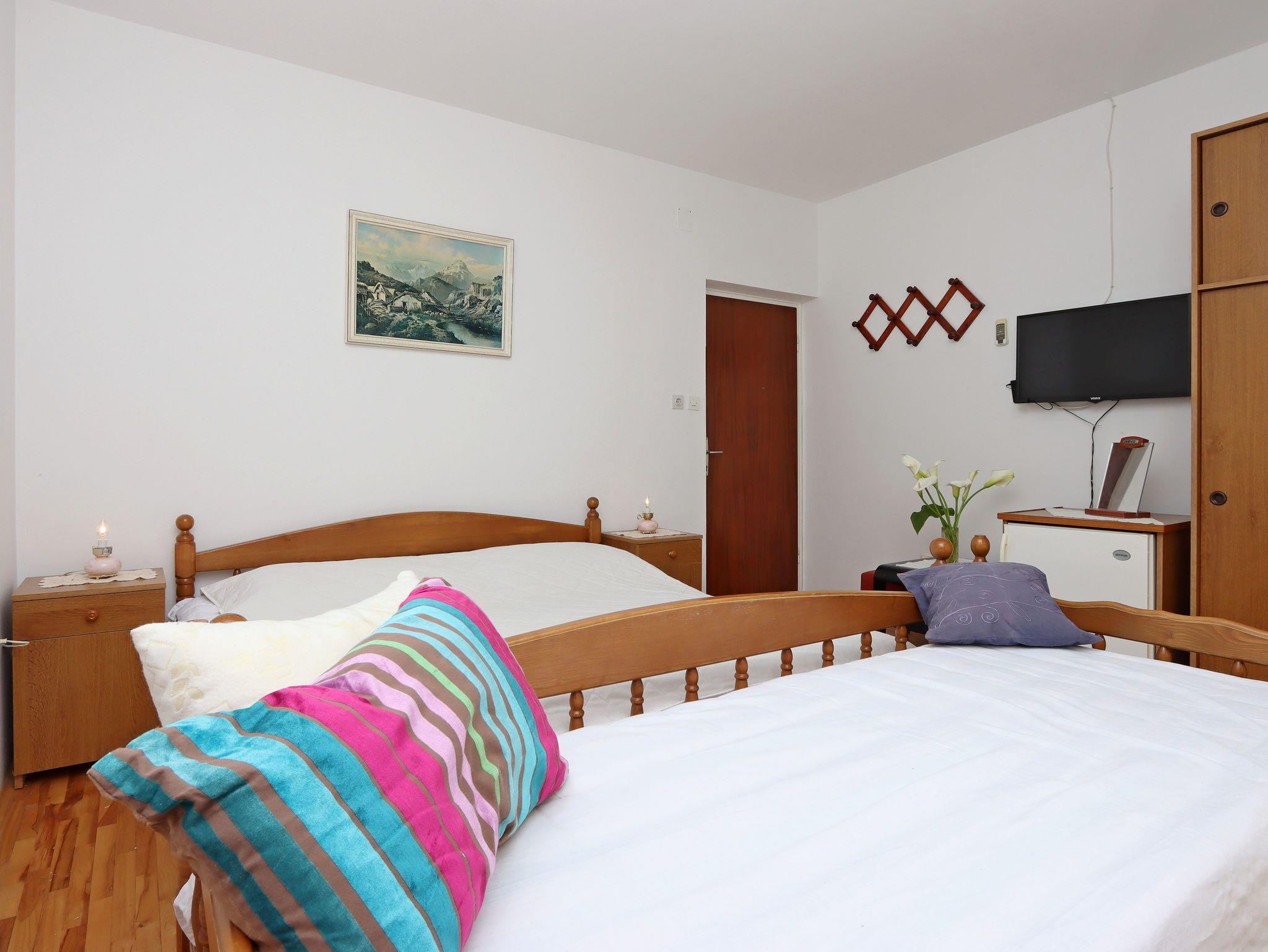 Zimmer bietet Platz für 2 Gäste. Die Betten sind in Schlafzimmern, die es 1 gibt, innerhalb einer Gesamtfläche von 19m2, angeordnet. Die Gäste haben einen eigenen Balkon zur Verfügung, auf der sie in warmen Sommernächten genießen können. Es ist erlaubt, Speisen auf dem Gemeinschafts-Grill vorzubereiten. Die reservierte Unterkunftseinheit ist ein Zimmer mit eigenem Badezimmer ohne die Möglichkeit der Nutzung einer Küche. IM PREIS INBEGRIFFEN: Kurtaxe, Endreinigung, Parkplatz, Internet, Kinderbett, Bügeleisen, Bügelbrett, Föhn, Sonnenschirm. VERBINDLICHE ZUSÄTZLICHE KOSTEN: Aufzahlung für Kurzaufenthalte (prozentualer Zuschlag pro Nächtigungsanzahl: 30% - 1, 20% - 2, 10% - 3). UNVERBINDLICHE ZUSÄTZLICHE KOSTEN: Frühstück (10,00 €, 50% Nachlass für Kinder zwischen 4 und 12 Jahren, Kinder bis 4 Jahre sind frei.), Klimatisierung (5,00 € pro Nacht), 1 Bett für Kinder (5,00 € Person/Tag). Die Verfügbarkeit zusätzlicher Dienstleistungen in Ihrem reservierten Termin und die Preise derselben (falls nicht aufgeführt) müssen im Voraus überprüft werden. Zusätzliche Dienstleistungen die in der Zahlungsaufforderung nicht aufgeführt sind werden direkt beim Vermieter bezahlt, angenommen der Gast nutzt auch diese.