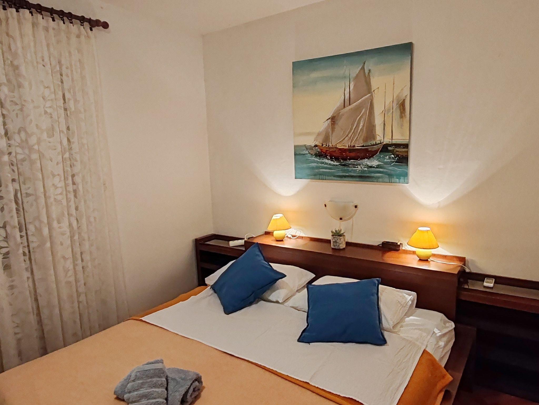 Zimmer bietet Platz für 2 Gäste. Die Betten sind in Schlafzimmern, die es 1 gibt, innerhalb einer Gesamtfläche von 19m2, angeordnet. Die Gäste haben einen eigenen Balkon zur Verfügung, auf der sie in warmen Sommernächten genießen können. Das Zimmer bietet Meerblick. Es ist erlaubt, Speisen auf dem Gemeinschafts-Grill vorzubereiten. In der Unterkunftseinheit besteht die Möglichkeit des Mitbringens von Haustieren gegen Aufpreis. Die reservierte Unterkunftseinheit ist ein Zimmer mit eigenem Badezimmer ohne die Möglichkeit der Nutzung einer Küche. IM PREIS INBEGRIFFEN: Kurtaxe, Endreinigung, Klimatisierung, Parkplatz, Internet, Wäschewaschen, Kinderbett, Bügeleisen, Bügelbrett, Föhn, Sonnenschirm, Liegestühle. UNVERBINDLICHE ZUSÄTZLICHE KOSTEN: Frühstück (15,00 €, 50% Nachlass für Kinder zwischen 4 und 12 Jahren, Kinder bis 4 Jahre sind frei.), Boot (150,00 € pro Nacht), Bootsanlegeplatz (15,00 € pro Nacht), Haustiere (15,00 € pro Nacht). Die Verfügbarkeit zusätzlicher Dienstleistungen in Ihrem reservierten Termin und die Preise derselben (falls nicht aufgeführt) müssen im Voraus überprüft werden. Zusätzliche Dienstleistungen die in der Zahlungsaufforderung nicht aufgeführt sind werden direkt beim Vermieter bezahlt, angenommen der Gast nutzt auch diese.