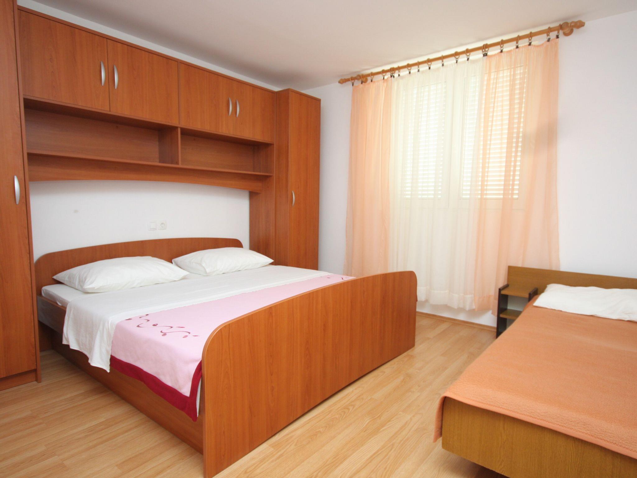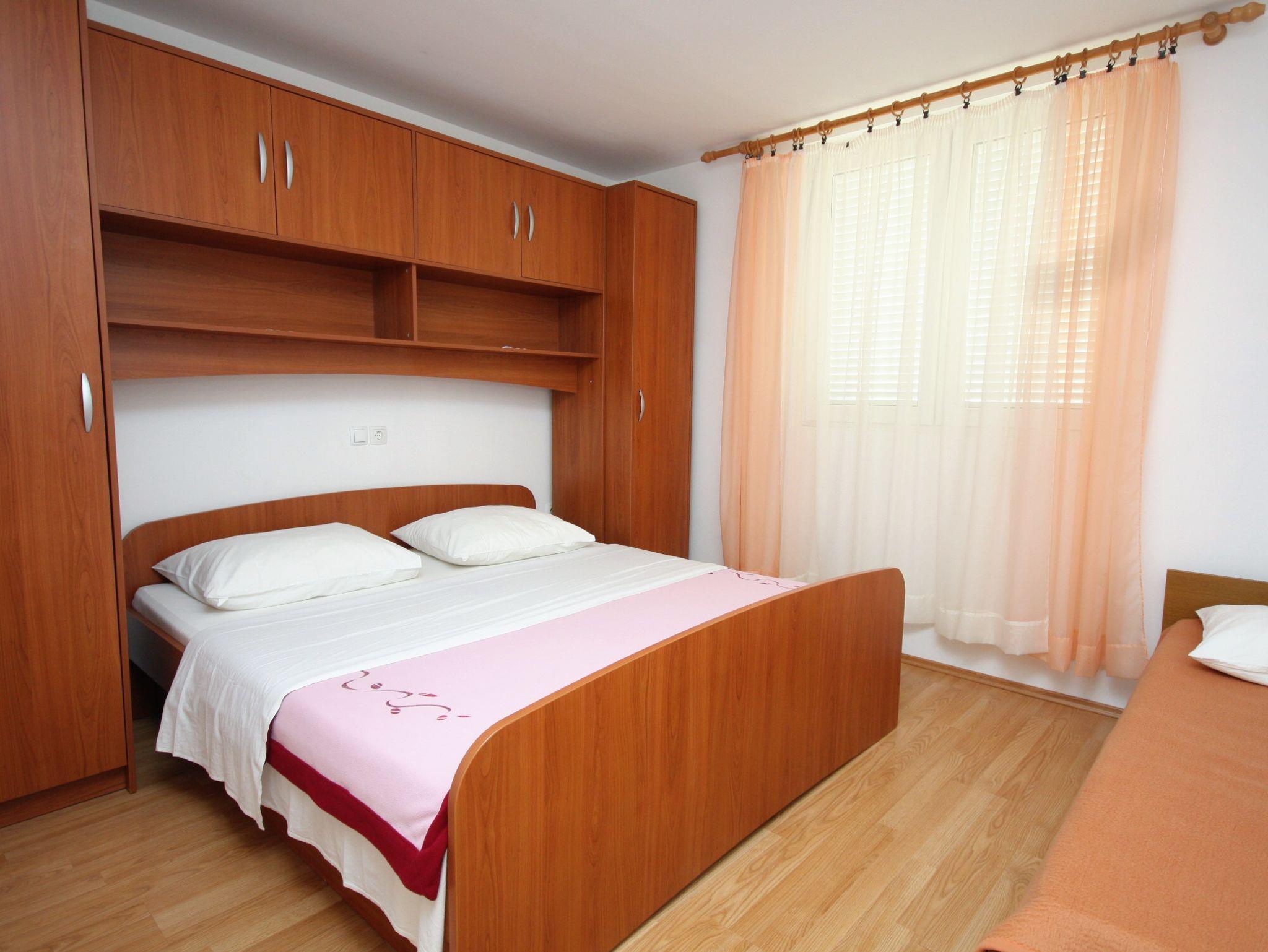 Ferienwohnung bietet Platz für 5 Gäste. Die Betten sind in Schlafzimmern, die es 2 gibt, innerhalb einer Gesamtfläche von 49m2, angeordnet. Die Gäste haben eine eigene Terrasse zur Verfügung, auf der sie in warmen Sommernächten genießen können. Das Apartment bietet Meerblick. Es ist erlaubt, Speisen auf dem Gemeinschafts-Grill vorzubereiten. Während ihres Aufenthalts können Gäste das gemeinsam zur Nutzung stehende Schwimmbad benutzen. IM PREIS INBEGRIFFEN: Kurtaxe, Endreinigung, Pool, Parkplatz, Internet, Föhn, Liegestühle. VERBINDLICHE ZUSÄTZLICHE KOSTEN: Aufzahlung für Kurzaufenthalte (prozentualer Zuschlag pro Nächtigungsanzahl: 30% - 1, 20% - 2, 10% - 3). UNVERBINDLICHE ZUSÄTZLICHE KOSTEN: Klimatisierung (5,00 € pro Nacht), Wäschewaschen (5,00 € Waschen), Bootsanlegeplatz (5,00 € pro Nacht). Die Verfügbarkeit zusätzlicher Dienstleistungen in Ihrem reservierten Termin und die Preise derselben (falls nicht aufgeführt) müssen im Voraus überprüft werden. Zusätzliche Dienstleistungen die in der Zahlungsaufforderung nicht aufgeführt sind werden direkt beim Vermieter bezahlt, angenommen der Gast nutzt auch diese.