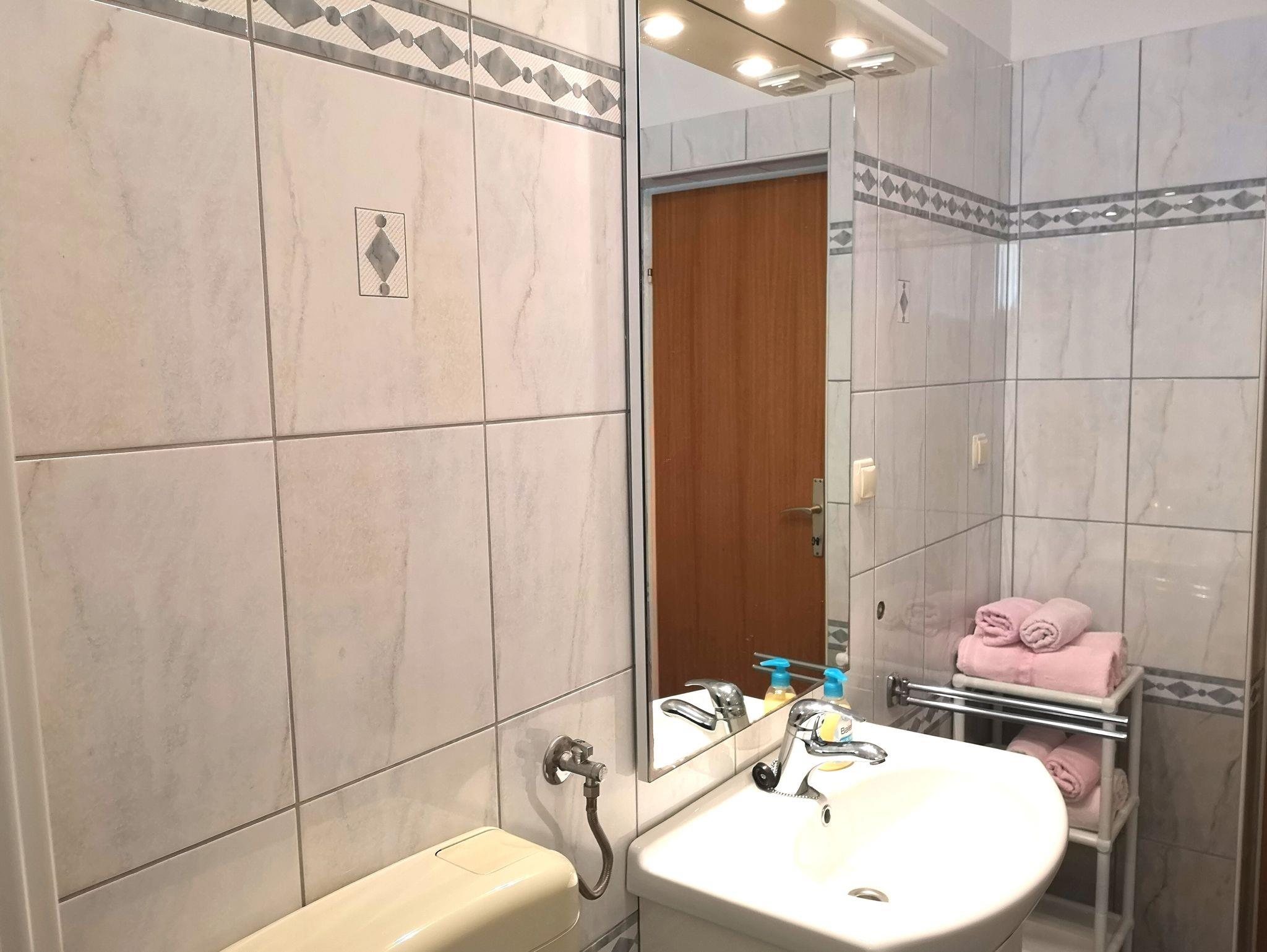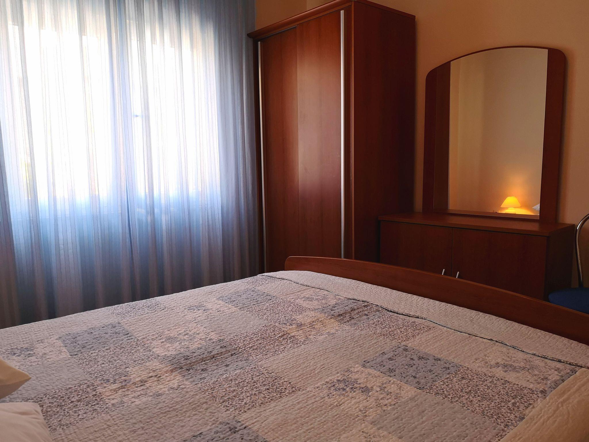 Ferienwohnung bietet Platz für 5 Gäste. Die Betten sind in Schlafzimmern, die es 2 gibt, und in Wohnzimmer, innerhalb einer Gesamtfläche von 53m2, angeordnet. Die Gäste haben eine eigene Terrasse zur Verfügung, auf der sie in warmen Sommernächten genießen können. Es ist erlaubt, Speisen auf dem Gemeinschafts-Grill vorzubereiten. Während ihres Aufenthalts können Gäste das gemeinsam zur Nutzung stehende Schwimmbad benutzen. In der Unterkunftseinheit besteht die Möglichkeit des Mitbringens von Haustieren gegen Aufpreis. In der gebuchten Unterkunftseinheit zahlt man am Ort ein Depositum ( der Preis ist an der Internetseite angeführt ). IM PREIS INBEGRIFFEN: Kurtaxe, Endreinigung, Pool, Parkplatz, Internet, Kinderbett, Bügeleisen, Bügelbrett, Föhn, Sonnenschirm, Liegestühle. VERBINDLICHE ZUSÄTZLICHE KOSTEN: Kaution (150,00 € Einmalzahlung), Aufzahlung für Kurzaufenthalte (prozentualer Zuschlag pro Nächtigungsanzahl: 30% - 1, 20% - 2, 10% - 3). UNVERBINDLICHE ZUSÄTZLICHE KOSTEN: Klimatisierung (5,00 € pro Nacht), Haustiere (15,00 € pro Nacht). Die Verfügbarkeit zusätzlicher Dienstleistungen in Ihrem reservierten Termin und die Preise derselben (falls nicht aufgeführt) müssen im Voraus überprüft werden. Zusätzliche Dienstleistungen die in der Zahlungsaufforderung nicht aufgeführt sind werden direkt beim Vermieter bezahlt, angenommen der Gast nutzt auch diese.
