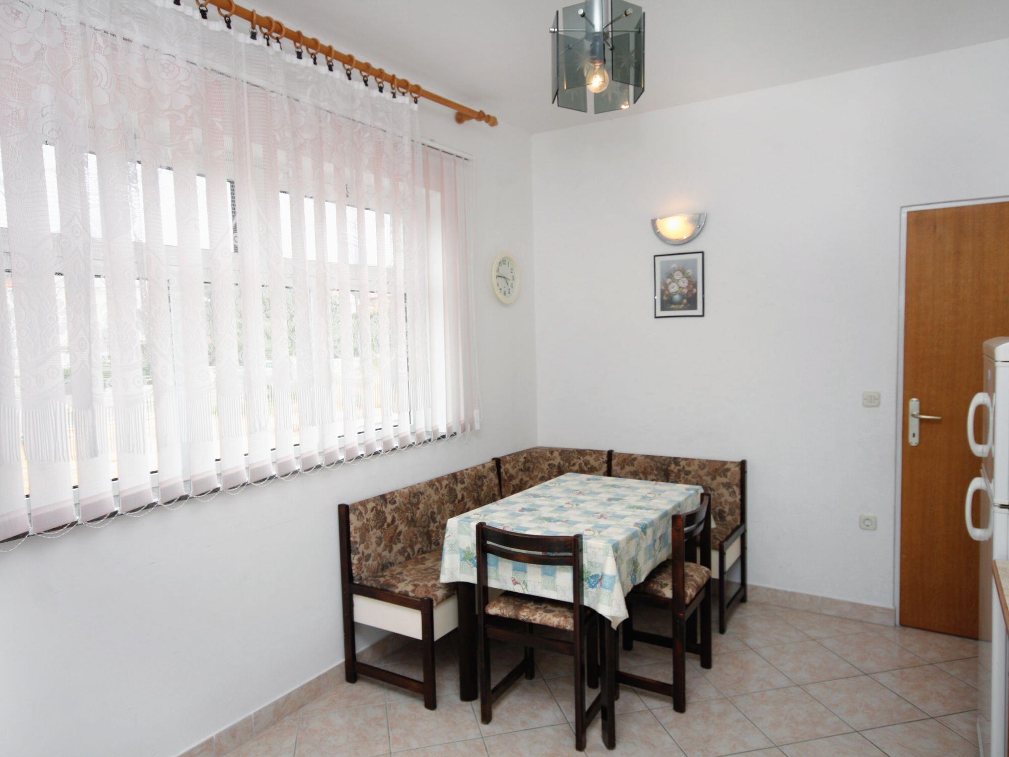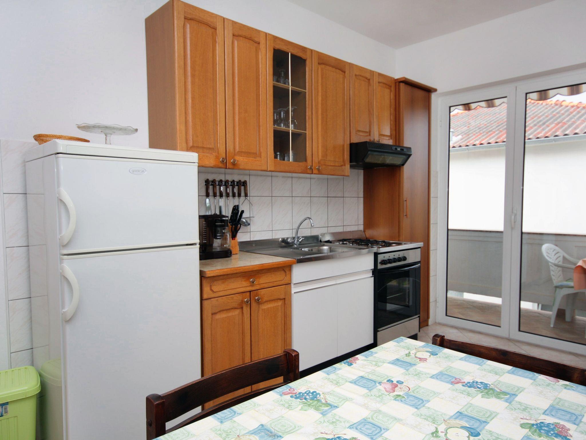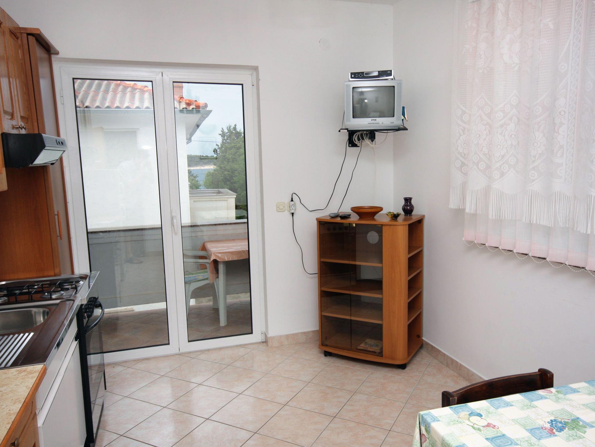 Ferienwohnung bietet Platz für 5 Gäste. Die Betten sind in Schlafzimmern, die es 2 gibt, innerhalb einer Gesamtfläche von 50m2, angeordnet. Die Gäste haben einen eigenen Balkon zur Verfügung, auf der sie in warmen Sommernächten genießen können. Das Apartment bietet Meerblick. IM PREIS INBEGRIFFEN: Kurtaxe, Endreinigung, Parkplatz, Internet, Kinderbett. VERBINDLICHE ZUSÄTZLICHE KOSTEN: Aufzahlung für Kurzaufenthalte (prozentualer Zuschlag pro Nächtigungsanzahl: 30% - 1, 20% - 2, 10% - 3). UNVERBINDLICHE ZUSÄTZLICHE KOSTEN: Klimatisierung (1,00 € pro Stunde), Wäschewaschen (3,00 € Waschen), Bootsanlegeplatz (8,00 € pro Nacht). Die Verfügbarkeit zusätzlicher Dienstleistungen in Ihrem reservierten Termin und die Preise derselben (falls nicht aufgeführt) müssen im Voraus überprüft werden. Zusätzliche Dienstleistungen die in der Zahlungsaufforderung nicht aufgeführt sind werden direkt beim Vermieter bezahlt, angenommen der Gast nutzt auch diese.