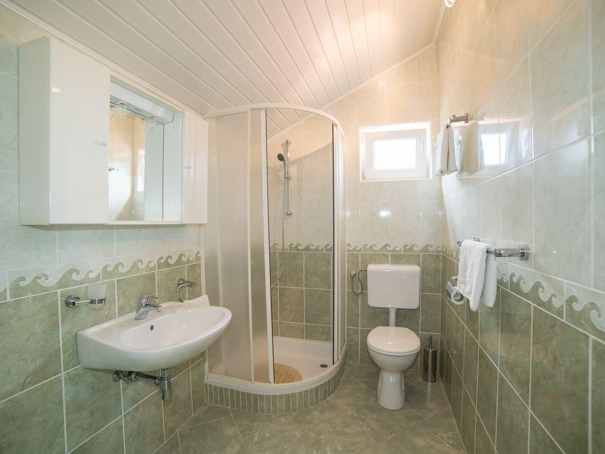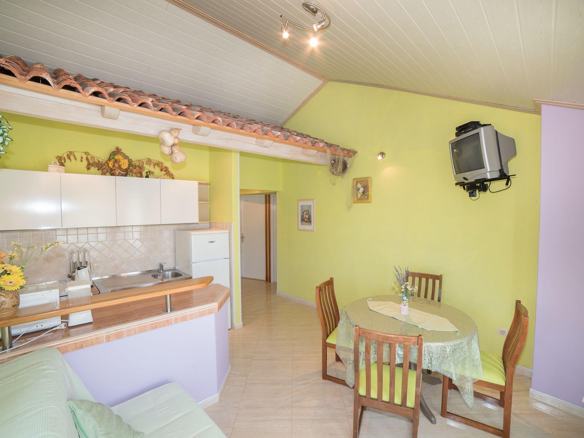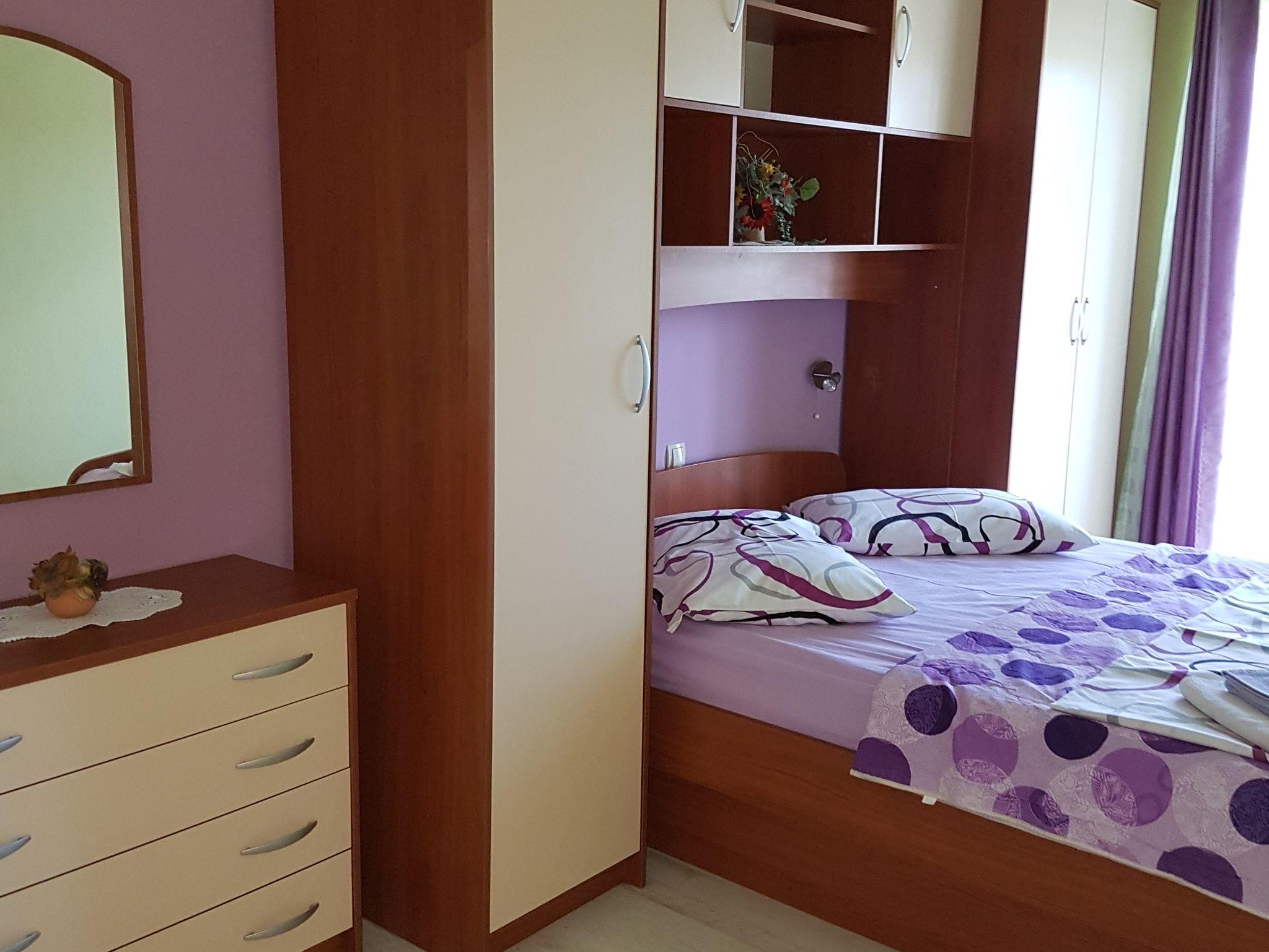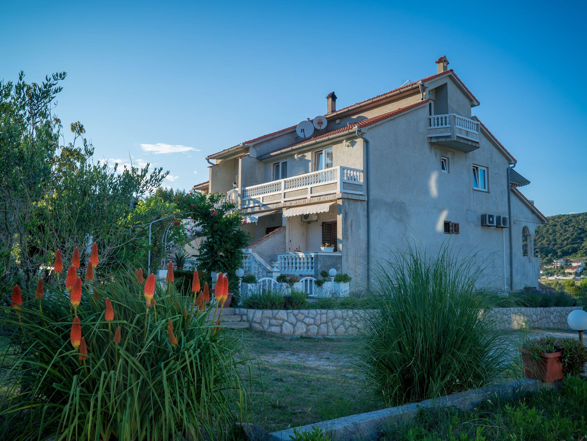 Ferienwohnung bietet Platz für 5 Gäste. Die Betten sind in Schlafzimmern, die es 2 gibt, und in Wohnzimmer, innerhalb einer Gesamtfläche von 50m2, angeordnet. Die Gäste haben eine eigene Terrasse zur Verfügung, auf der sie in warmen Sommernächten genießen können. Das Apartment bietet Meerblick. Es ist erlaubt, Speisen auf dem Gemeinschafts-Grill vorzubereiten. In der Unterkunftseinheit besteht die Möglichkeit des Mitbringens von Haustieren gegen Aufpreis. IM PREIS INBEGRIFFEN: Kurtaxe, Endreinigung, Klimatisierung, Parkplatz, Internet, Föhn. VERBINDLICHE ZUSÄTZLICHE KOSTEN: Aufzahlung für Kurzaufenthalte (prozentualer Zuschlag pro Nächtigungsanzahl: 30% - 1, 20% - 2, 10% - 3). UNVERBINDLICHE ZUSÄTZLICHE KOSTEN: Wäschewaschen (10,00 € Waschen), Bootsanlegeplatz (20,00 € pro Nacht), Haustiere (10,00 € pro Nacht), Zusatzbett (10,00 € pro Nacht). Die Verfügbarkeit zusätzlicher Dienstleistungen in Ihrem reservierten Termin und die Preise derselben (falls nicht aufgeführt) müssen im Voraus überprüft werden. Zusätzliche Dienstleistungen die in der Zahlungsaufforderung nicht aufgeführt sind werden direkt beim Vermieter bezahlt, angenommen der Gast nutzt auch diese.