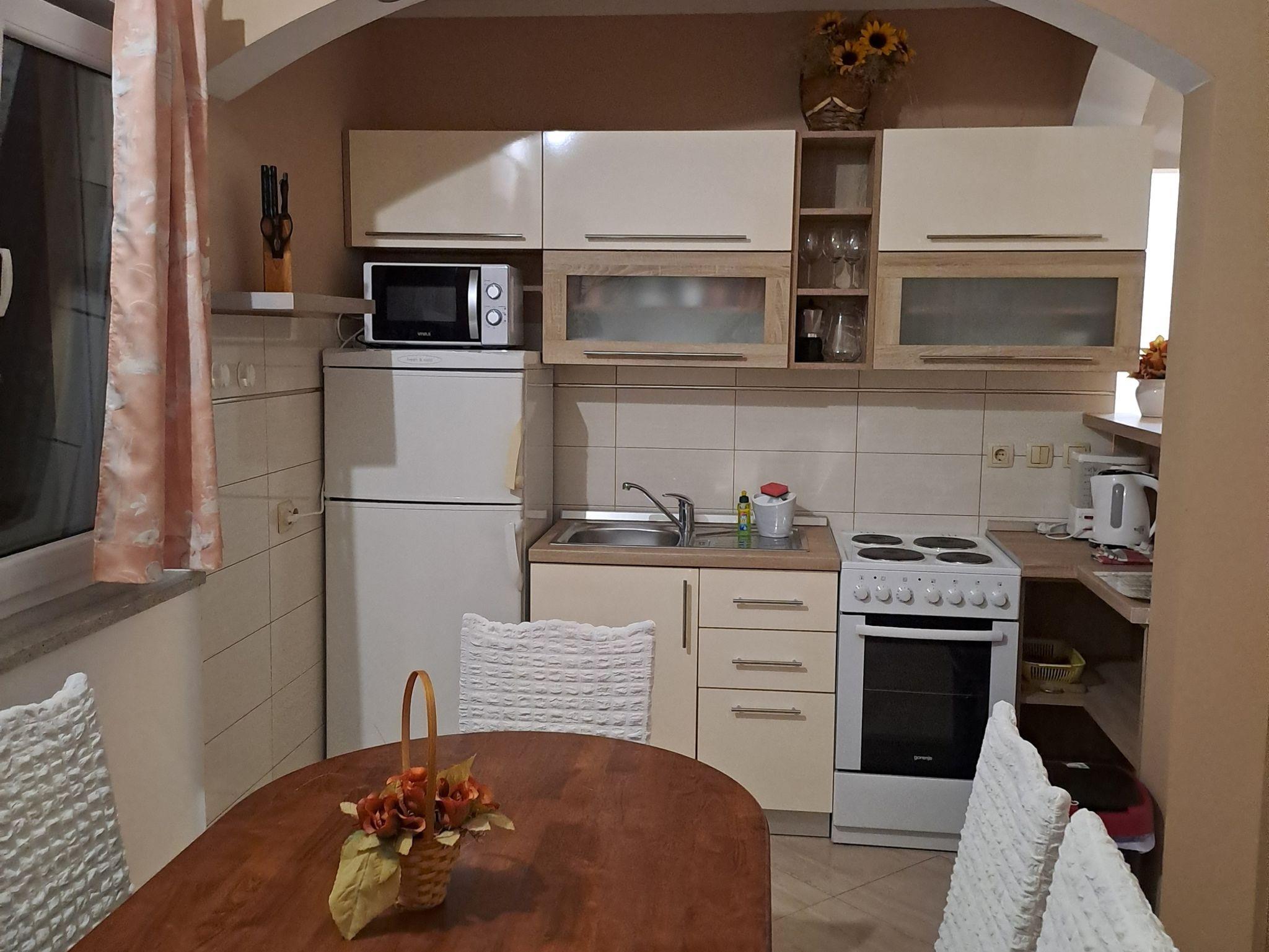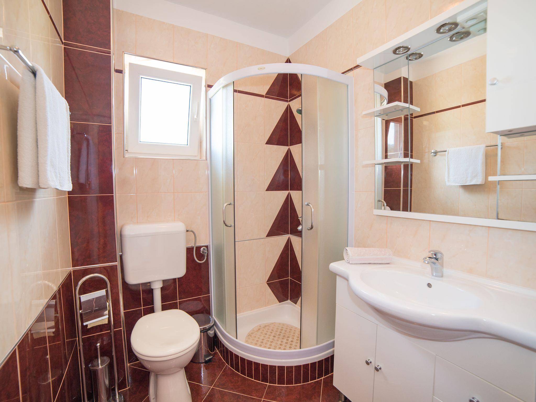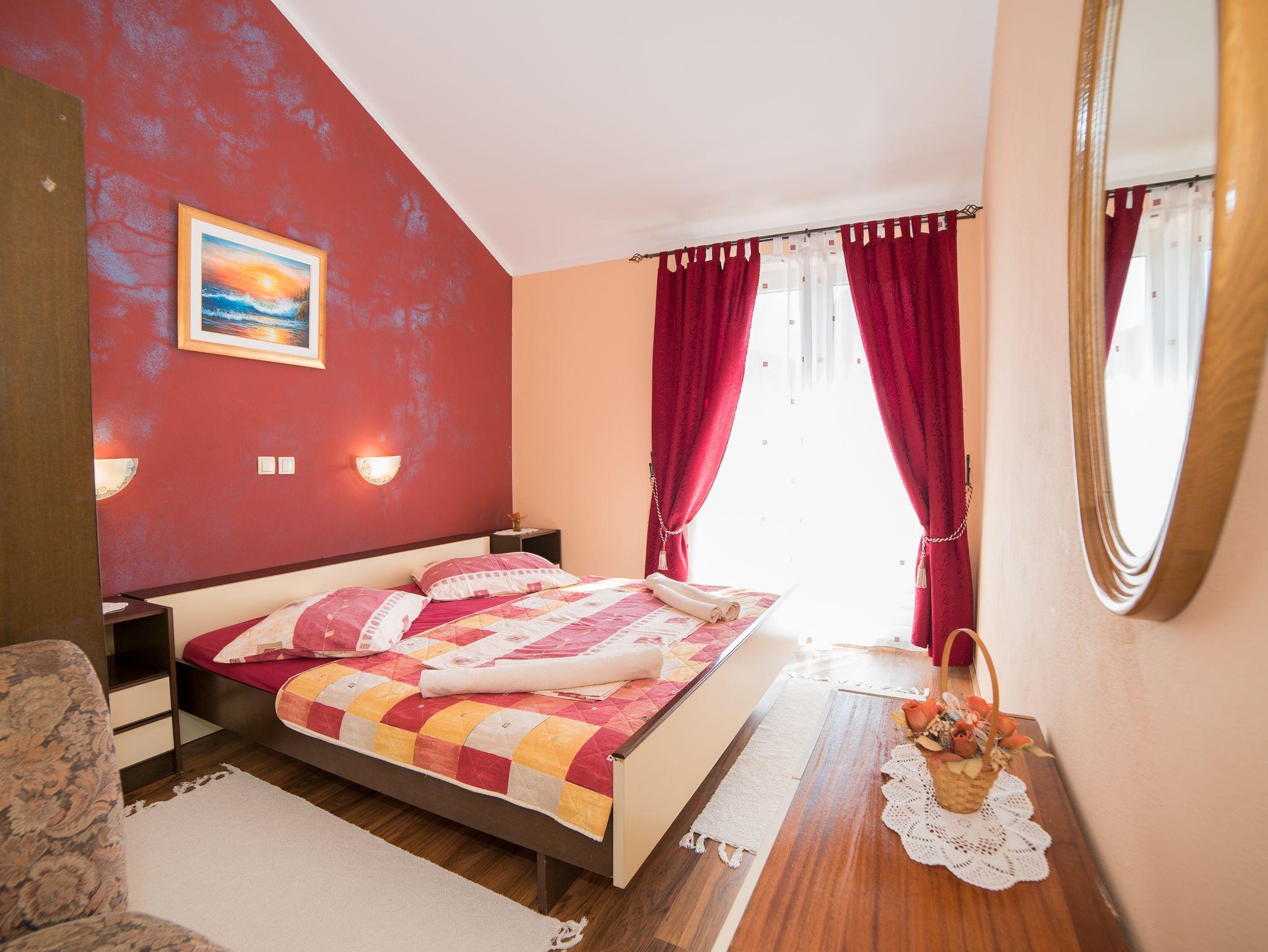 Ferienwohnung bietet Platz für 5 Gäste. Die Betten sind in Schlafzimmern, die es 2 gibt, und in Wohnzimmer, innerhalb einer Gesamtfläche von 46m2, angeordnet. Die Gäste haben eine eigene Terrasse zur Verfügung, auf der sie in warmen Sommernächten genießen können. Das Apartment bietet Meerblick. Es ist erlaubt, Speisen auf dem Gemeinschafts-Grill vorzubereiten. In der Unterkunftseinheit besteht die Möglichkeit des Mitbringens von Haustieren gegen Aufpreis. IM PREIS INBEGRIFFEN: Kurtaxe, Endreinigung, Klimatisierung, Parkplatz, Internet, Föhn. VERBINDLICHE ZUSÄTZLICHE KOSTEN: Aufzahlung für Kurzaufenthalte (prozentualer Zuschlag pro Nächtigungsanzahl: 30% - 1, 20% - 2, 10% - 3). UNVERBINDLICHE ZUSÄTZLICHE KOSTEN: Wäschewaschen (10,00 € Waschen), Bootsanlegeplatz (20,00 € pro Nacht), Haustiere (10,00 € pro Nacht), Zusatzbett (10,00 € pro Nacht). Die Verfügbarkeit zusätzlicher Dienstleistungen in Ihrem reservierten Termin und die Preise derselben (falls nicht aufgeführt) müssen im Voraus überprüft werden. Zusätzliche Dienstleistungen die in der Zahlungsaufforderung nicht aufgeführt sind werden direkt beim Vermieter bezahlt, angenommen der Gast nutzt auch diese.