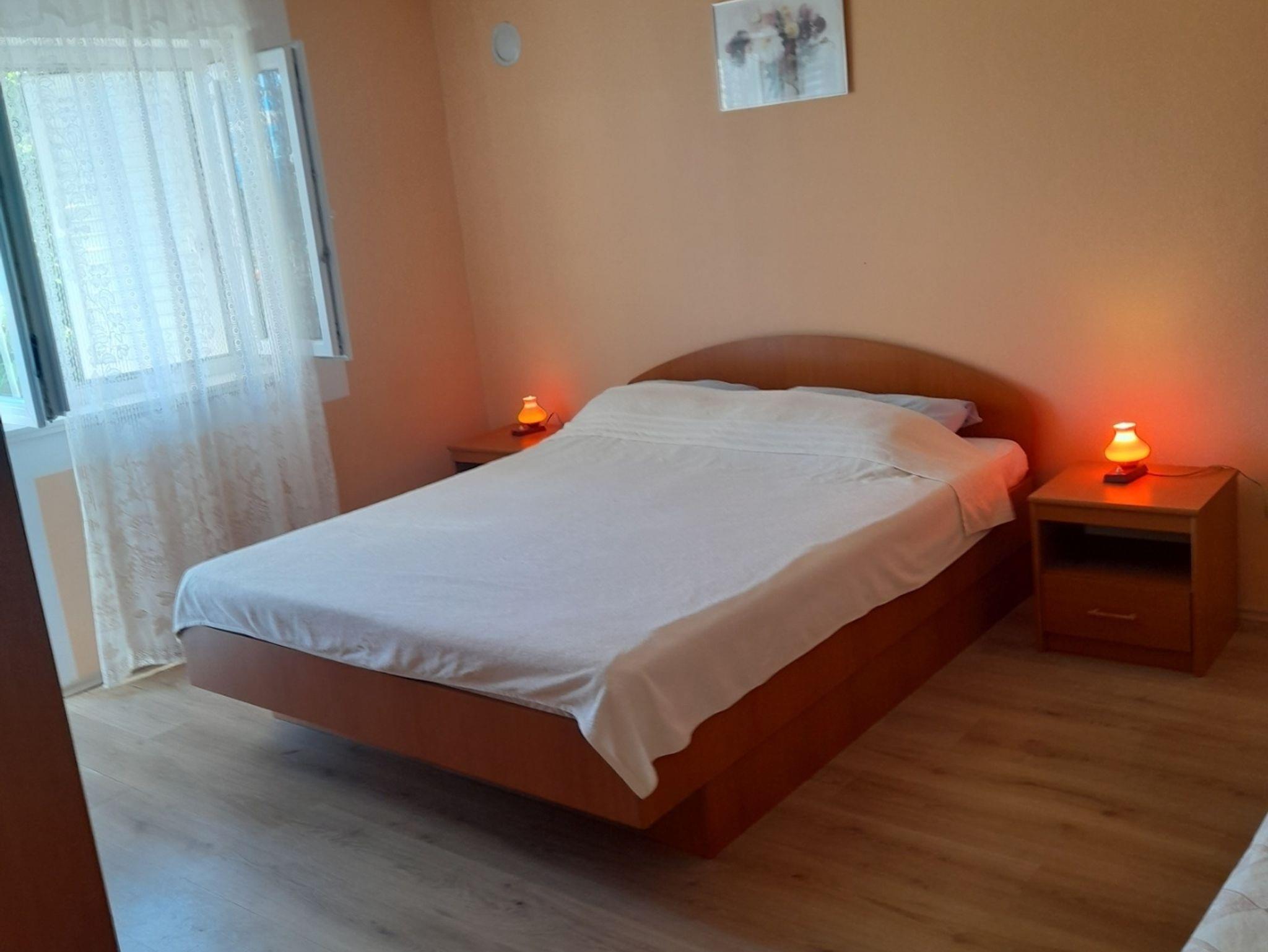Ferienwohnung bietet Platz für 2 Gäste. Die Betten sind in Schlafzimmern, die es 1 gibt, innerhalb einer Gesamtfläche von 40m2, angeordnet. Die Gäste haben eine eigene Terrasse zur Verfügung, auf der sie in warmen Sommernächten genießen können. Das Apartment bietet Meerblick. Es ist erlaubt, Speisen auf dem Gemeinschafts-Grill vorzubereiten. IM PREIS INBEGRIFFEN: Kurtaxe, Endreinigung, Klimatisierung, Parkplatz, Internet. VERBINDLICHE ZUSÄTZLICHE KOSTEN: Aufzahlung für Kurzaufenthalte (prozentualer Zuschlag pro Nächtigungsanzahl: 30% - 1, 20% - 2, 10% - 3). UNVERBINDLICHE ZUSÄTZLICHE KOSTEN: Wäschewaschen (5,00 € Waschen), Bootsanlegeplatz (5,00 € pro Nacht). Die Verfügbarkeit zusätzlicher Dienstleistungen in Ihrem reservierten Termin und die Preise derselben (falls nicht aufgeführt) müssen im Voraus überprüft werden. Zusätzliche Dienstleistungen die in der Zahlungsaufforderung nicht aufgeführt sind werden direkt beim Vermieter bezahlt, angenommen der Gast nutzt auch diese. Ermäßigung auf den Grundpreis: Gratistag 14=13 (bei einem Aufenthalt von 14 Tagen oder mehr erhalten Sie einen Gratistag für den Aufenthalt bis 31.12.26).