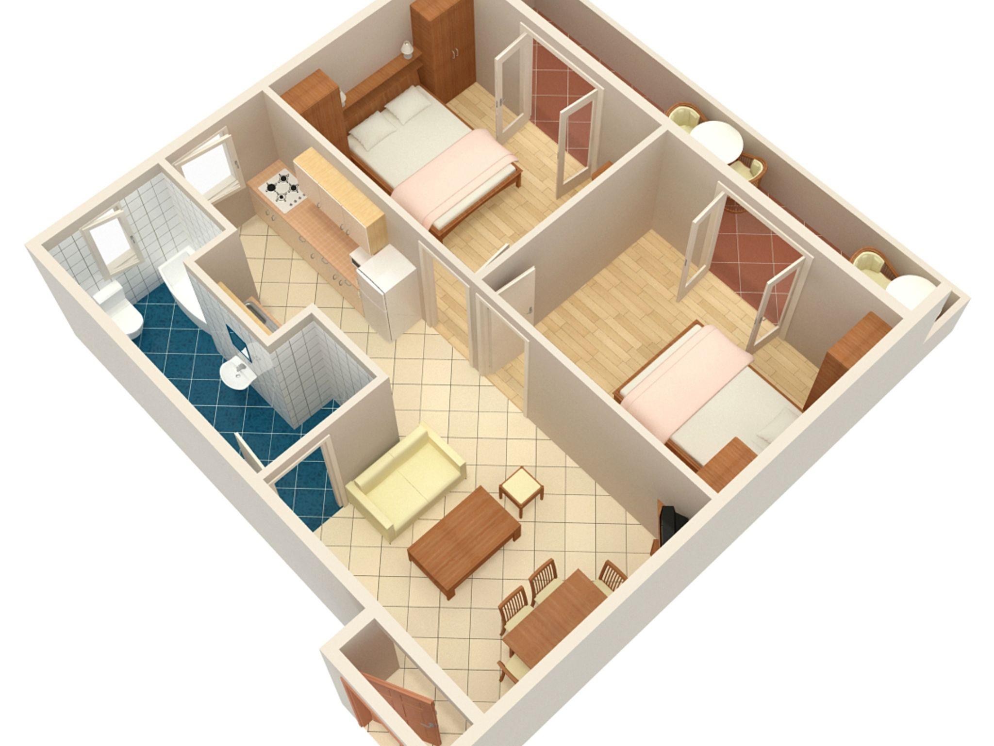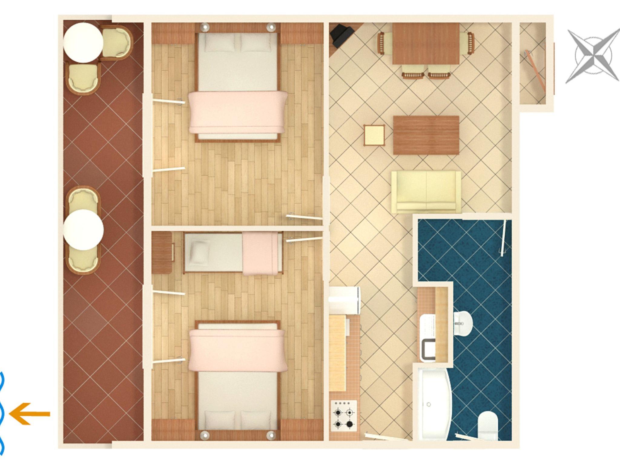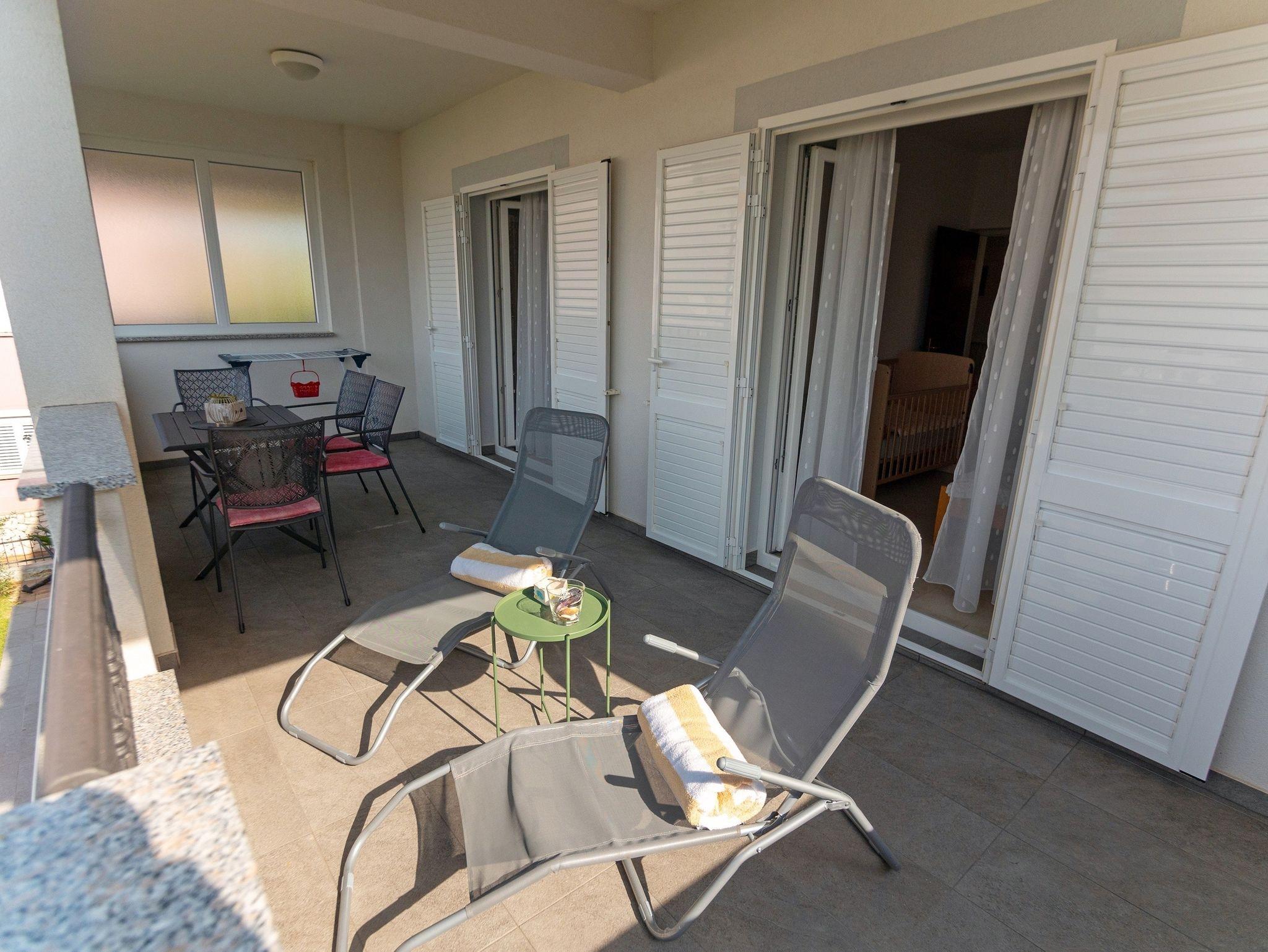 Ferienwohnung bietet Platz für 4 Gäste. Die Betten sind in Schlafzimmern, die es 2 gibt, innerhalb einer Gesamtfläche von 49m2, angeordnet. Die Gäste haben einen eigenen Balkon zur Verfügung, auf der sie in warmen Sommernächten genießen können. Es ist erlaubt, Speisen auf dem Gemeinschafts-Grill vorzubereiten. In der Unterkunftseinheit besteht die Möglichkeit des Mitbringens von Haustieren gegen Aufpreis. IM PREIS INBEGRIFFEN: Kurtaxe, Endreinigung, Klimatisierung, Zentralheizung, Parkplatz, Internet, Kinderbett, Bügeleisen, Bügelbrett, Föhn. VERBINDLICHE ZUSÄTZLICHE KOSTEN: Aufzahlung für Kurzaufenthalte (prozentualer Zuschlag pro Nächtigungsanzahl: 30% - 1, 20% - 2, 10% - 3). UNVERBINDLICHE ZUSÄTZLICHE KOSTEN: Bootsanlegeplatz (10,00 € pro Nacht), Haustiere (10,00 € pro Nacht), Zusatzbett (10,00 € pro Nacht). Die Verfügbarkeit zusätzlicher Dienstleistungen in Ihrem reservierten Termin und die Preise derselben (falls nicht aufgeführt) müssen im Voraus überprüft werden. Zusätzliche Dienstleistungen die in der Zahlungsaufforderung nicht aufgeführt sind werden direkt beim Vermieter bezahlt, angenommen der Gast nutzt auch diese.