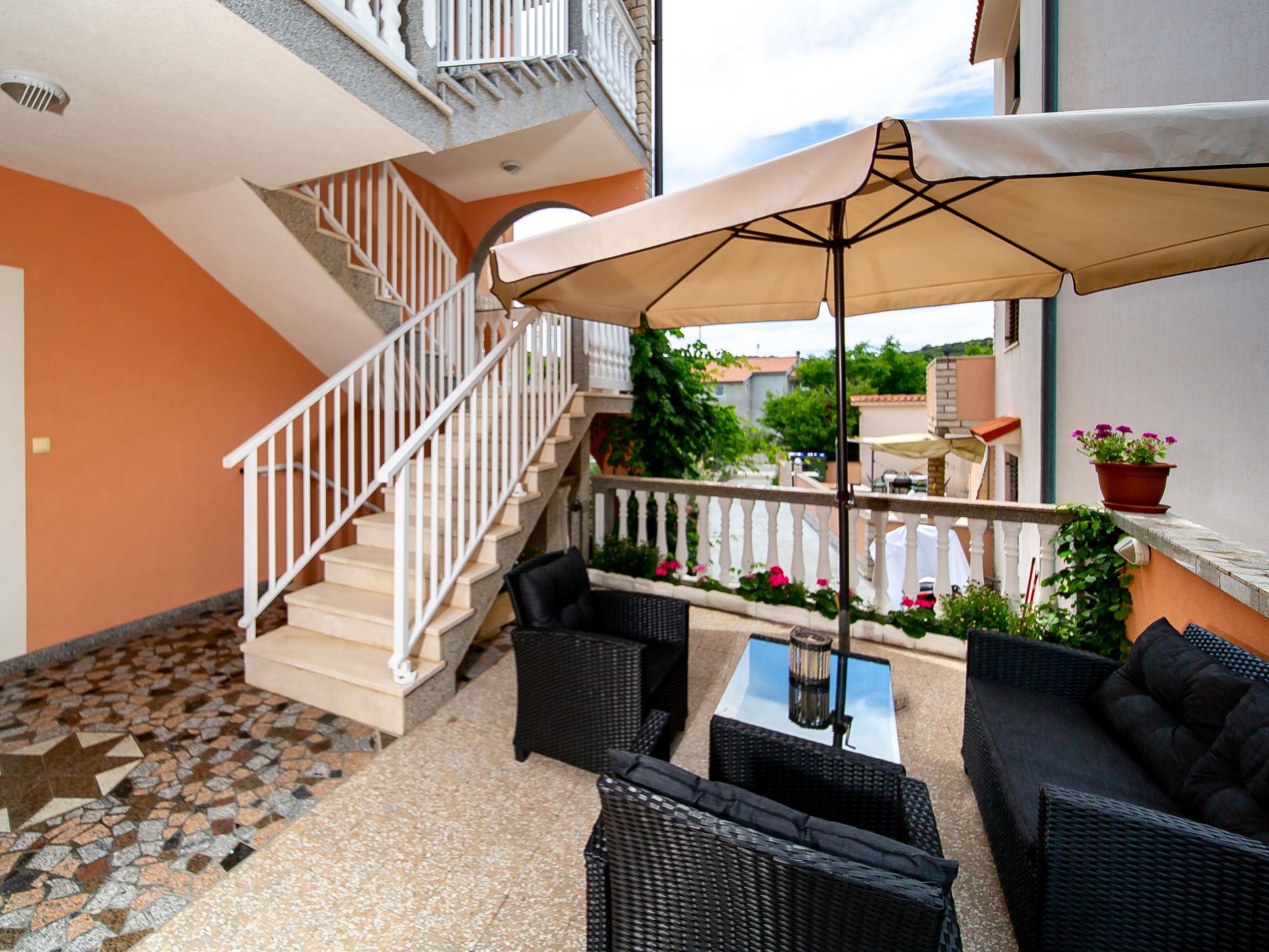 Apartment house "Kastell". 300 m from the centre of Lopar, 13 km from the centre of Rab, 350 m from the sea, 350 m from the beach. For shared use: property 750 m2, garden 40 m2 flowers and trees. Terrace (30 m2), garden furniture, barbecue, children's playground (slide, swing). In the house: internet access, washing machine (extra), tumble dryer (for shared use, extra). Breakfast on request (extra). Parking at the house on the premises. Shop 350 m, supermarket 250 m, restaurant 100 m, café, bus stop 150 m, ferry 1.5 km, sandy beach 350 m. Please note: private mooring (extra) on request.