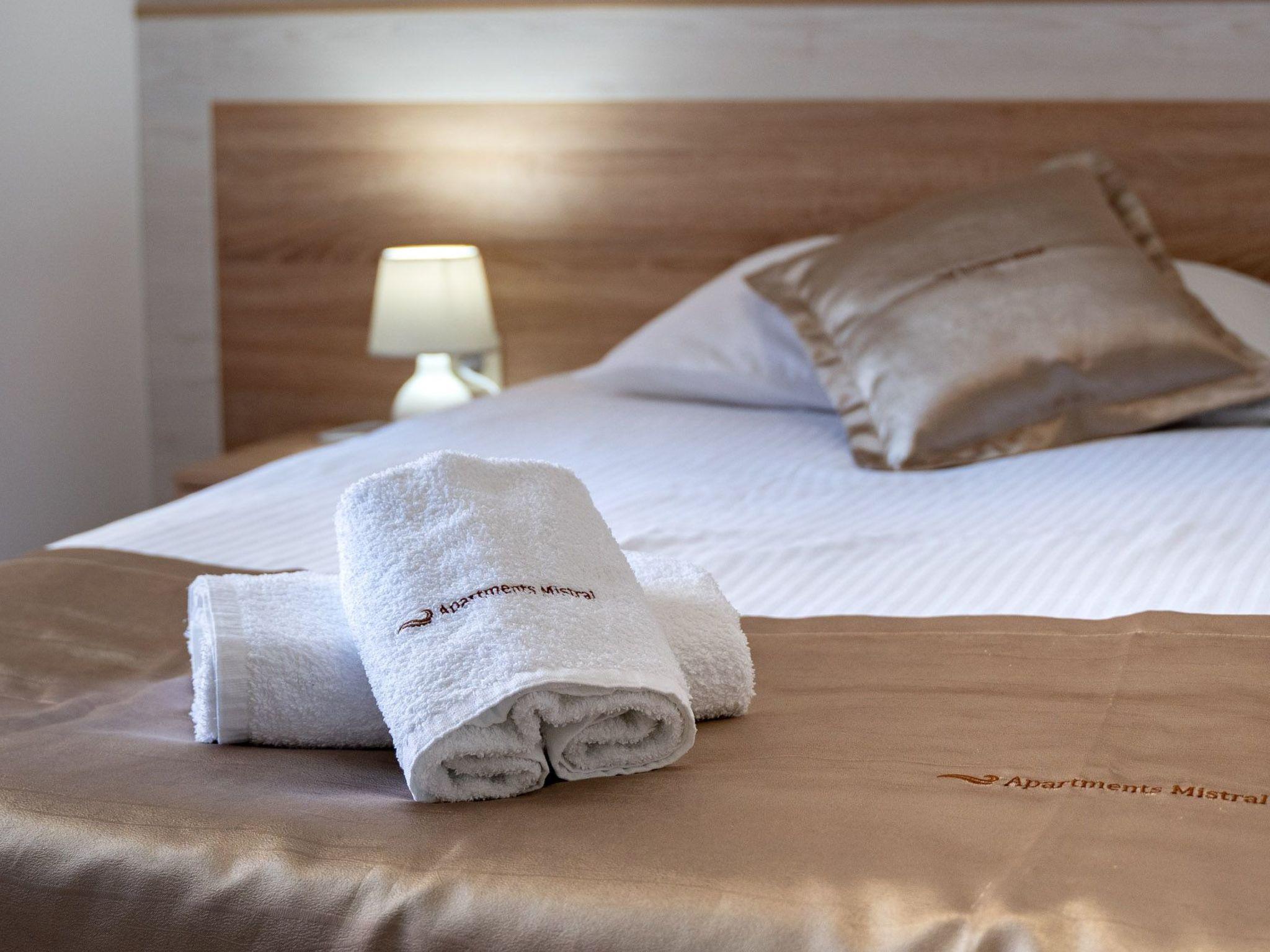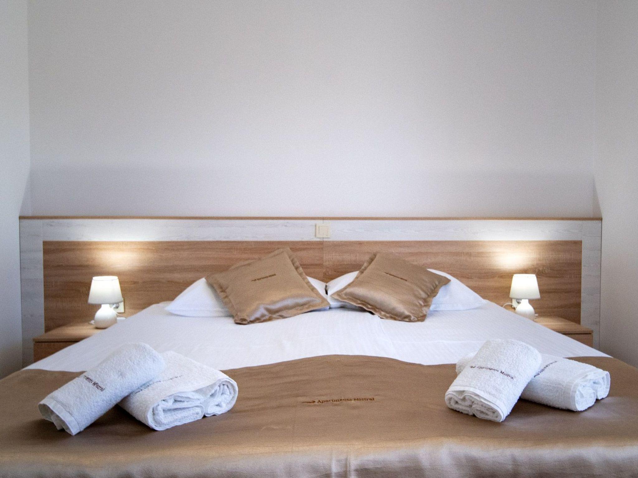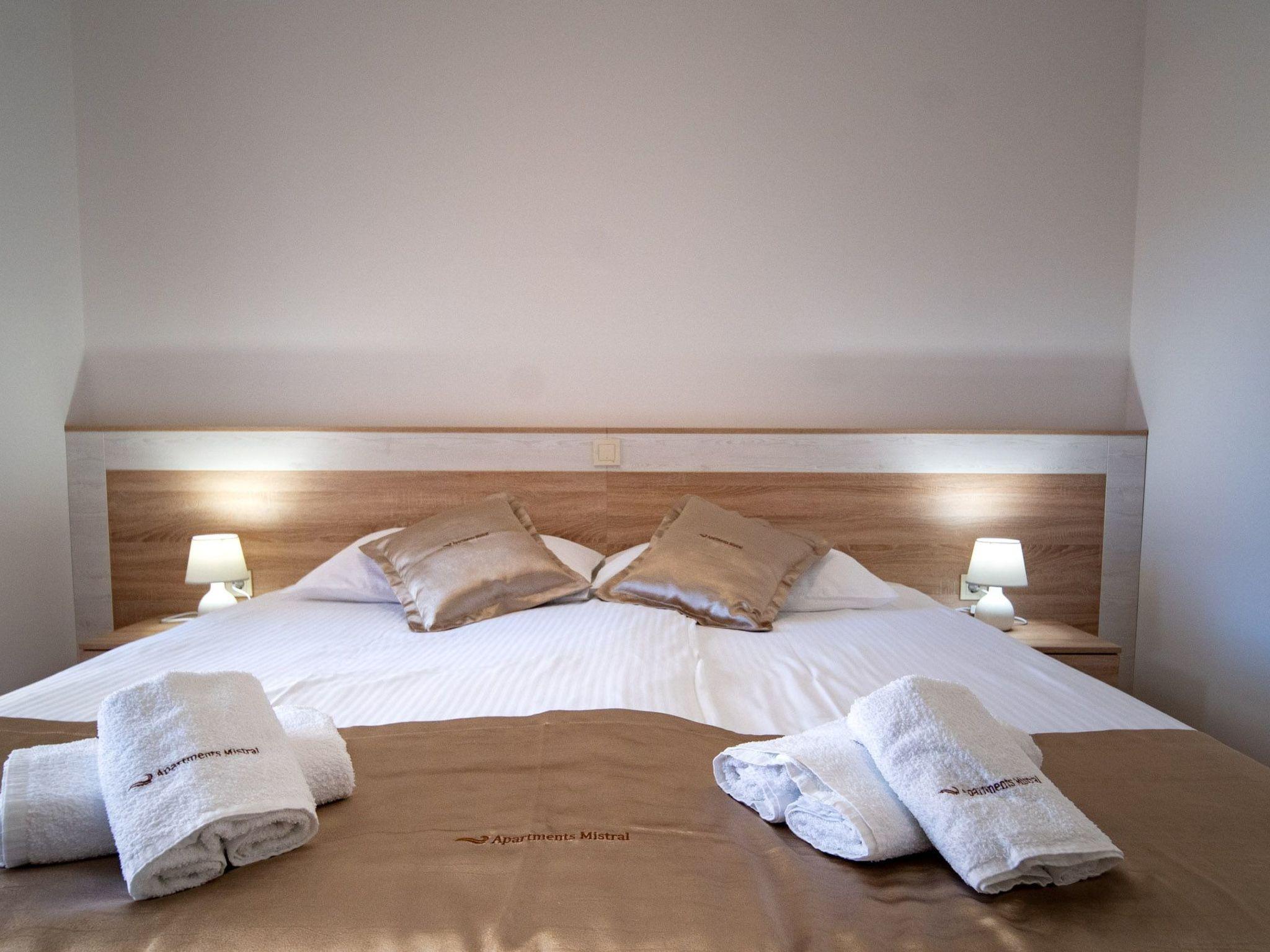 The very spacious flat with three bedrooms is located on the ground floor. Brand new, modern and fully equipped apartment that will fulfil all your wishes. We will do our best to make your holiday unforgettable. 130 square metres with three bedrooms with 3 double beds and an extra bed for two people (folding couch) and a single room for one person. Two bathrooms with showers and another separate toilet offer privacy for all visitors. The kitchen is fully equipped (hob, oven, fridge, dishwasher, microwave, coffee maker, kettle) and you can enjoy your meals in the dining room. Flat A is ideal for a large family or a group of friends. Bed linen and towels are provided. The flat is air-conditioned, has satellite TV, free internet access, a safe and two spacious balconies. On a warm summer evening, a seating area with a garden view invites you to relax.Mistral Apartments are located only 100 m from the centre of Lopar. Completely new and high quality accommodation for the whole family or friends. Here you can spend your holiday relaxed and carefree in a quiet location. Close to restaurants, a large shopping centre Konzum, bakery, post office, children's playground, café, pharmacy, bus stop. Each flat has a kitchen, bedroom, bathroom, TV / SAT, Internet (Wifi), air conditioning, balcony, parking and all other necessary equipment (bed linen, towels, coffee maker, kettle, refrigerator, dishwasher) We hope that you will decide to rent our flats Mistral!Short descriptionOther : Non-smoking houseShort description 1Number of kitchens : 1Other rooms : a large garden pavilion and a rustic tavernSurroundingsLeisure facilities : Car hire, boat hire, bicycle hireSports facilities in the area : Fishing, basketball, mountaineering, hunting, mountain biking, paragliding, cycling, surfing, diving, tennis, water skiingGarden and outdoor facilitiesRecreational facilities at the property : PlaygroundGarden equipment : Garden shed, barbecue, gazebo, play equipmentServicesServices (may apply) chargeable) : Breakfast, drinks service, housekeeping