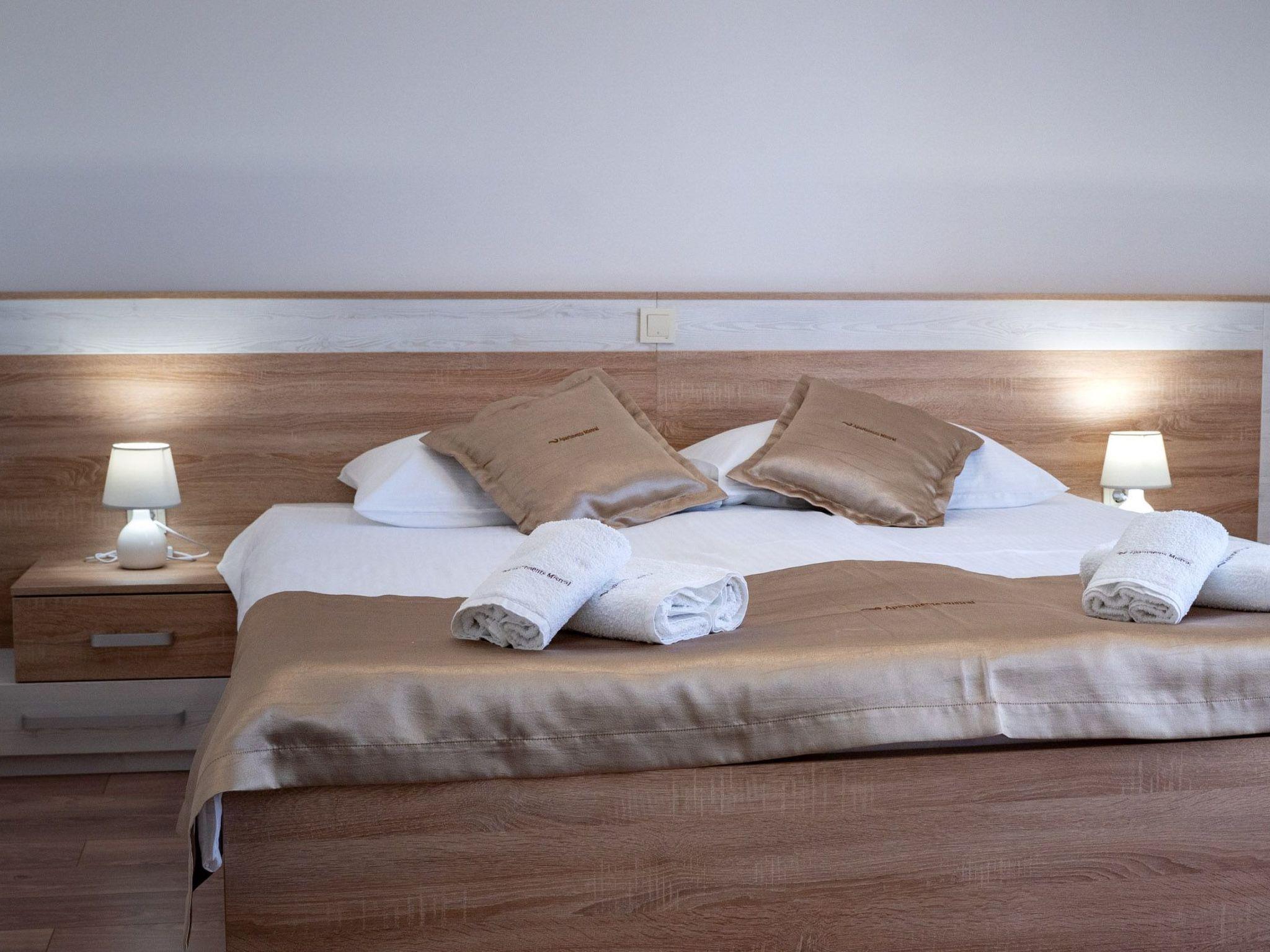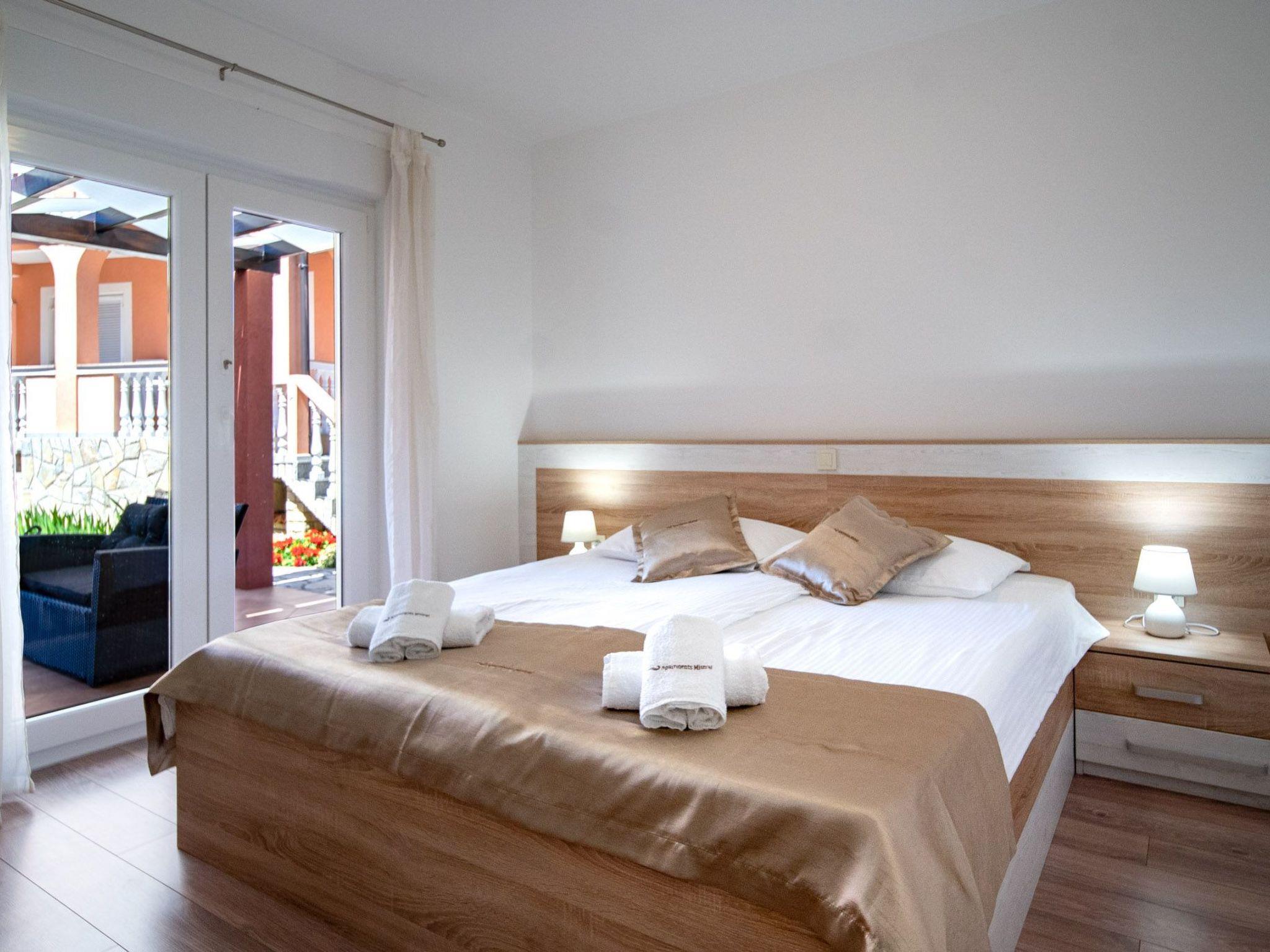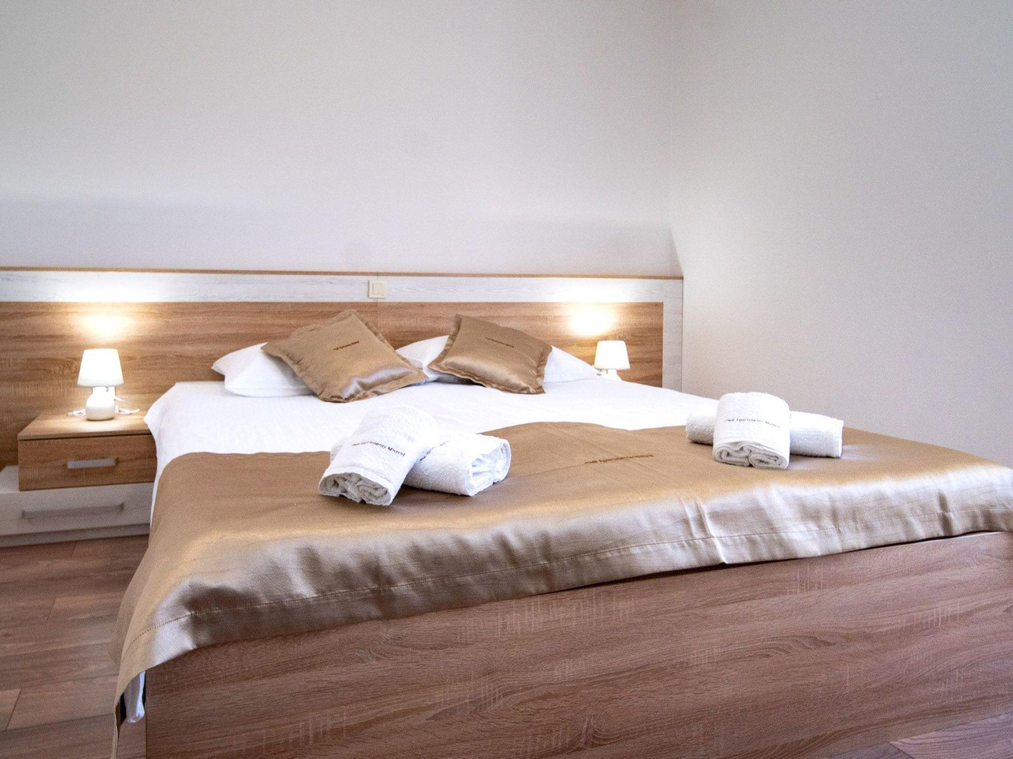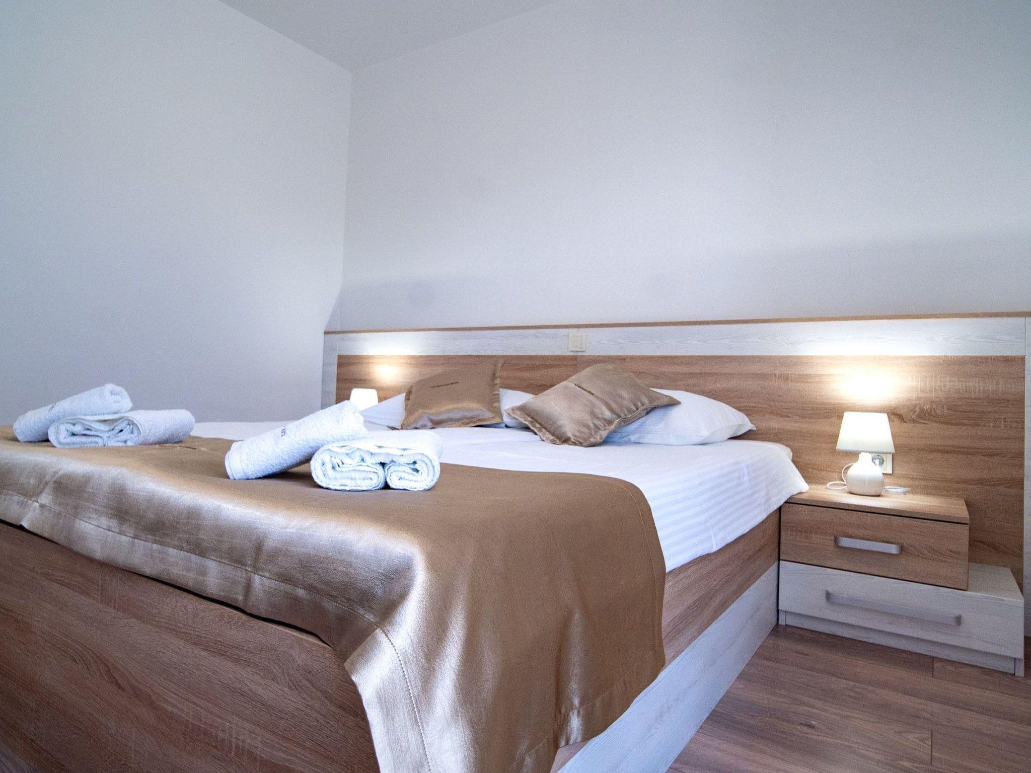The very spacious flat with three bedrooms is located on the ground floor. Brand new, modern and fully equipped apartment that will fulfil all your wishes. We will do our best to make your holiday unforgettable. 130 square metres with three bedrooms with 3 double beds and an extra bed for two people (folding couch) and a single room for one person. Two bathrooms with showers and another separate toilet offer privacy for all visitors. The kitchen is fully equipped (hob, oven, fridge, dishwasher, microwave, coffee maker, kettle) and you can enjoy your meals in the dining room. Flat A is ideal for a large family or a group of friends. Bed linen and towels are provided. The flat is air-conditioned, has satellite TV, free internet access, a safe and two spacious balconies. On a warm summer evening, a seating area with a garden view invites you to relax.Mistral Apartments are located only 100 m from the centre of Lopar. Completely new and high quality accommodation for the whole family or friends. Here you can spend your holiday relaxed and carefree in a quiet location. Close to restaurants, a large shopping centre Konzum, bakery, post office, children's playground, café, pharmacy, bus stop. Each flat has a kitchen, bedroom, bathroom, TV / SAT, Internet (Wifi), air conditioning, balcony, parking and all other necessary equipment (bed linen, towels, coffee maker, kettle, refrigerator, dishwasher) We hope that you will decide to rent our flats Mistral!Short descriptionOther : Non-smoking houseShort description 1Number of kitchens : 1Other rooms : a large garden pavilion and a rustic tavernSurroundingsLeisure facilities : Car hire, boat hire, bicycle hireSports facilities in the area : Fishing, basketball, mountaineering, hunting, mountain biking, paragliding, cycling, surfing, diving, tennis, water skiingGarden and outdoor facilitiesRecreational facilities at the property : PlaygroundGarden equipment : Garden shed, barbecue, gazebo, play equipmentServicesServices (may apply) chargeable) : Breakfast, drinks service, housekeeping