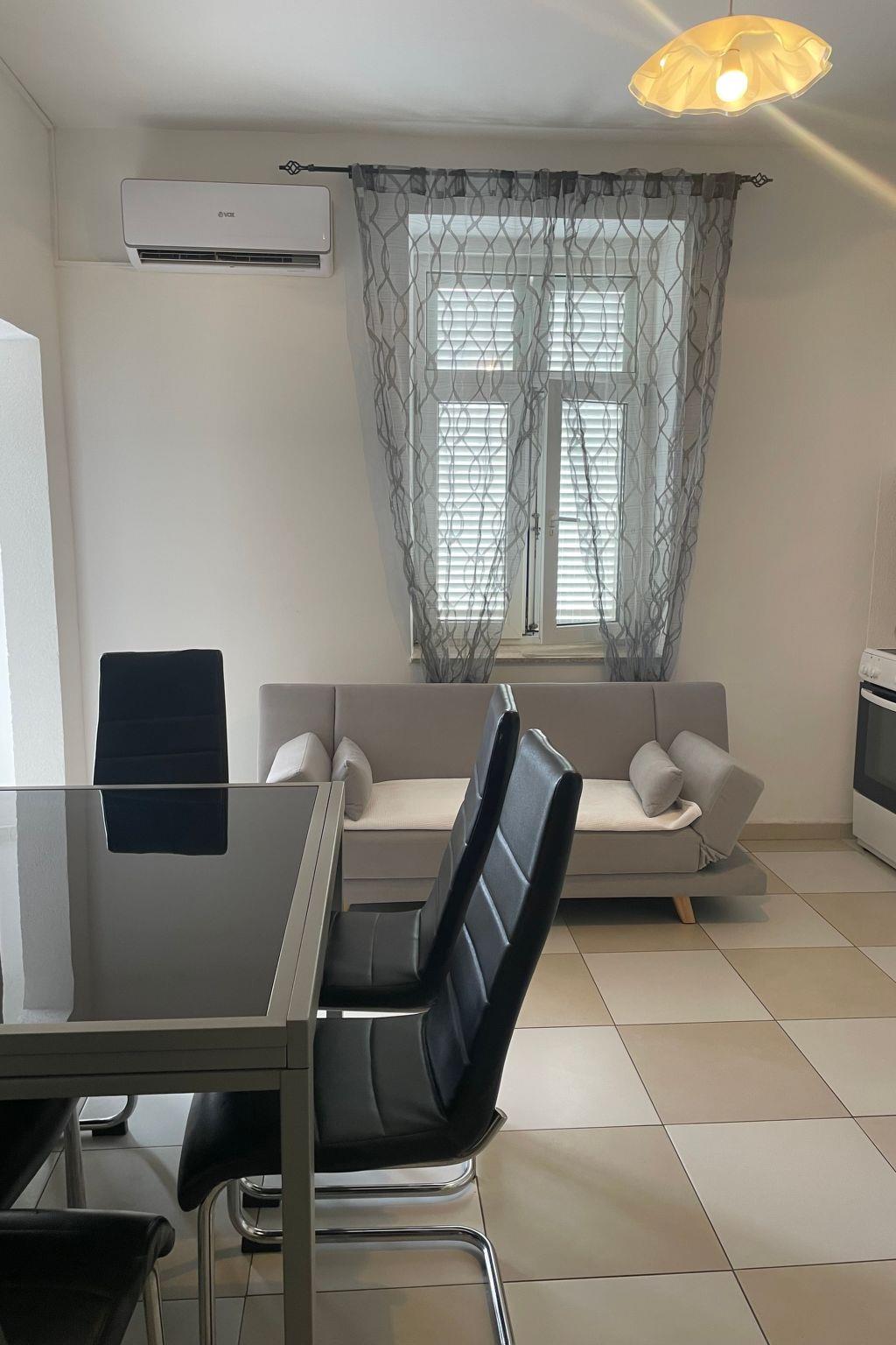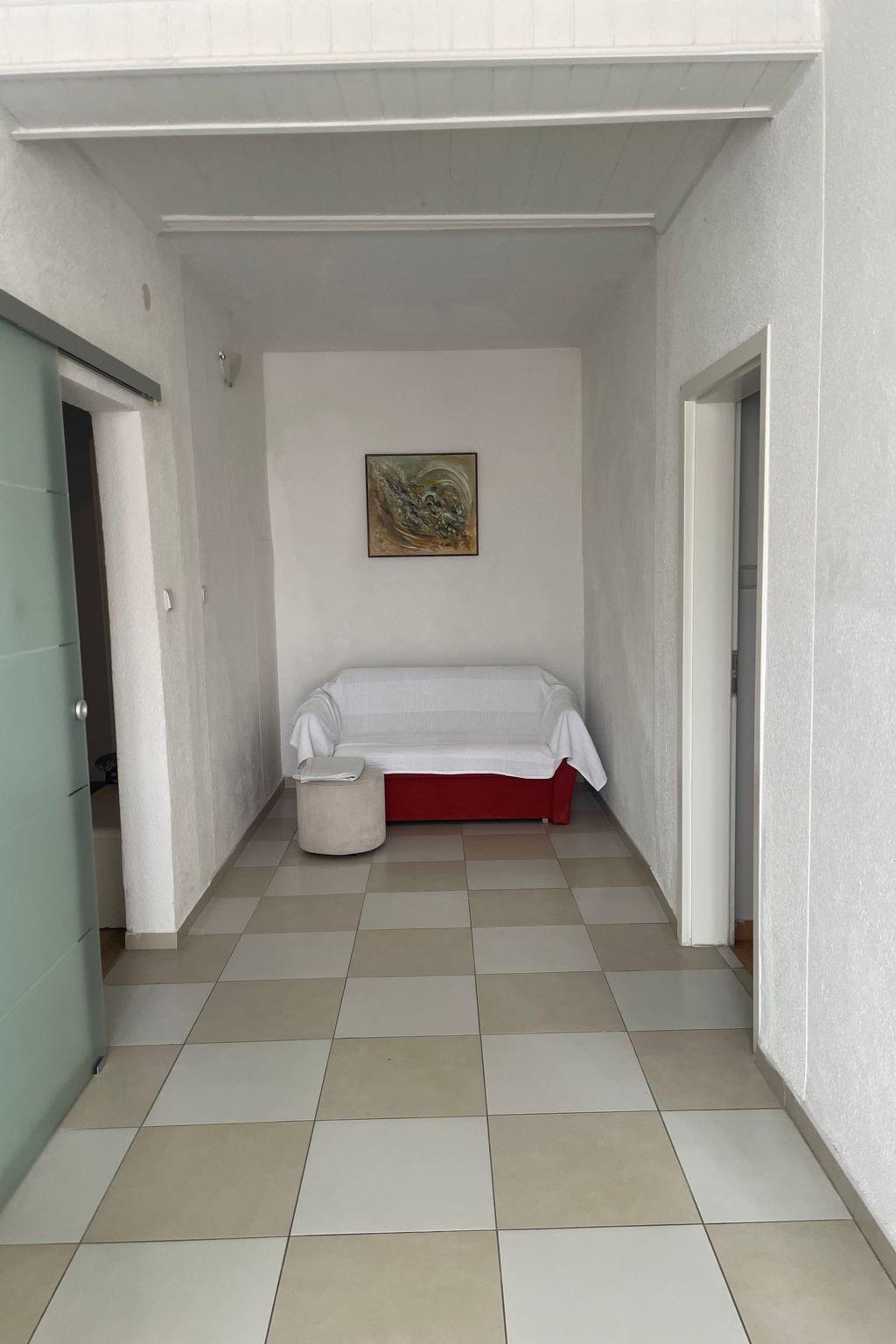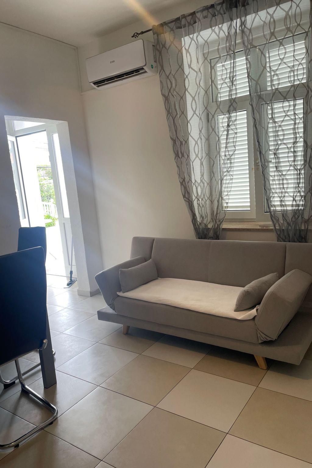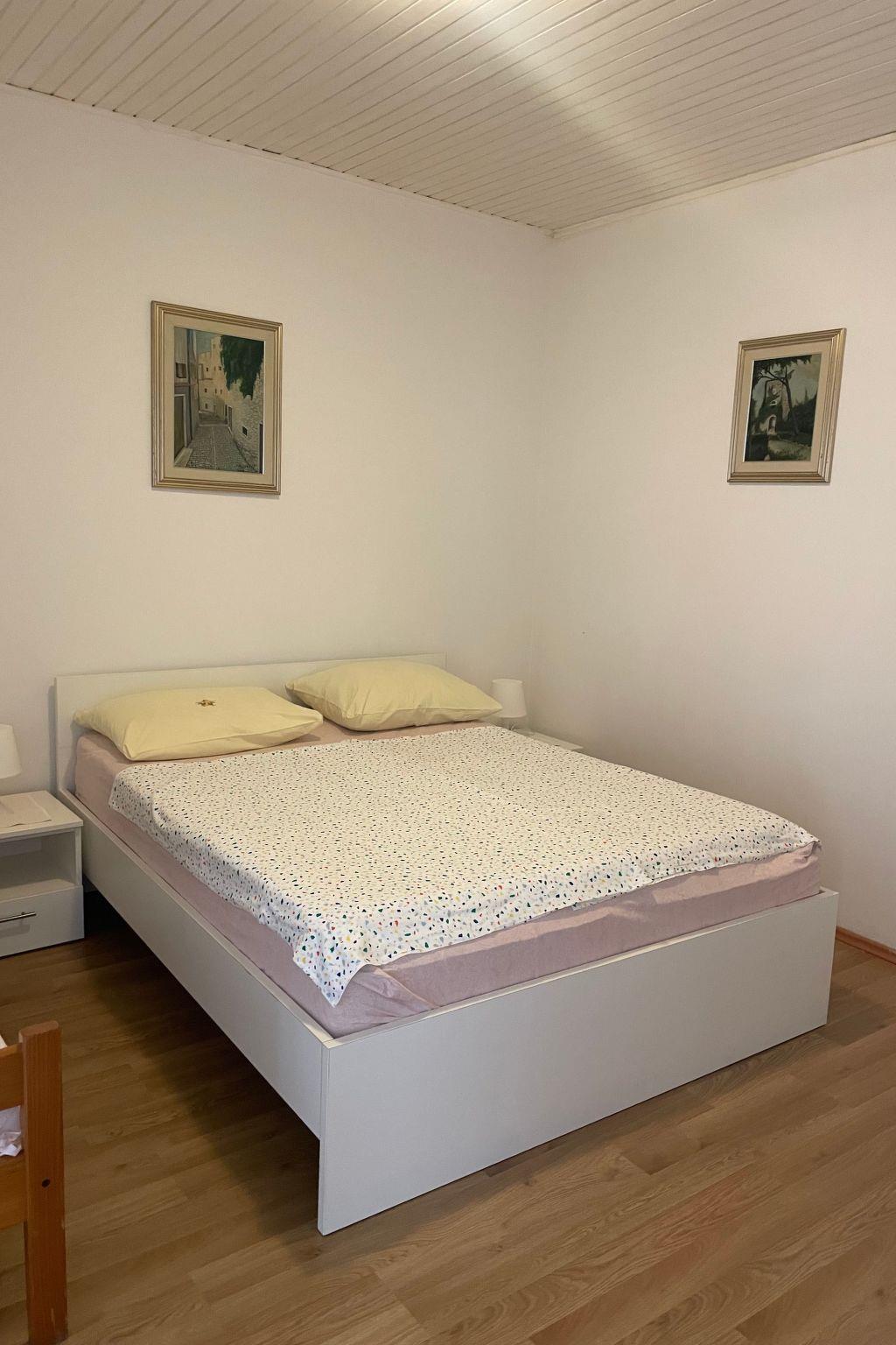 The grund floor is about 80m in size and comprises of the following rooms.A living room with a fully-eguipped kitchen, comfortable couch, a flatscreen TV and two doble rooms with the possibility of additional beds. There is also a large bathroom with a shower and separate toilet.Apartment has a large terrace (80m) with sea view and garden where you and your children can enjoy. Apartment has no air conditionig but it is pleasantly cool in summer because of its thick walls.