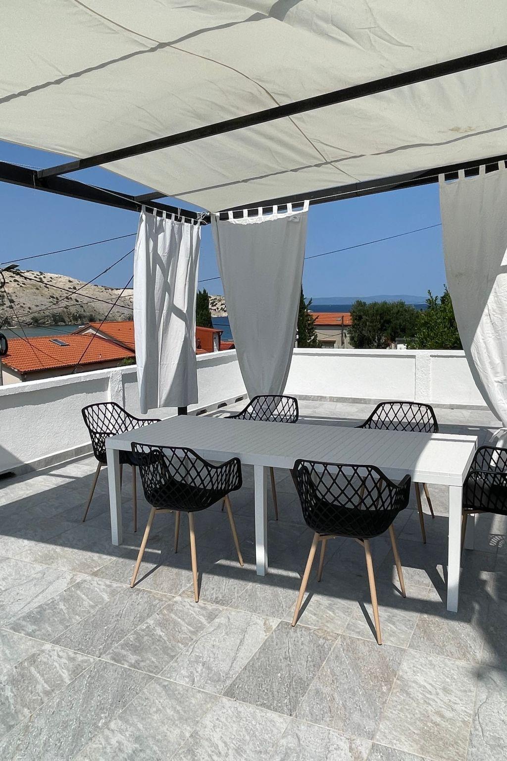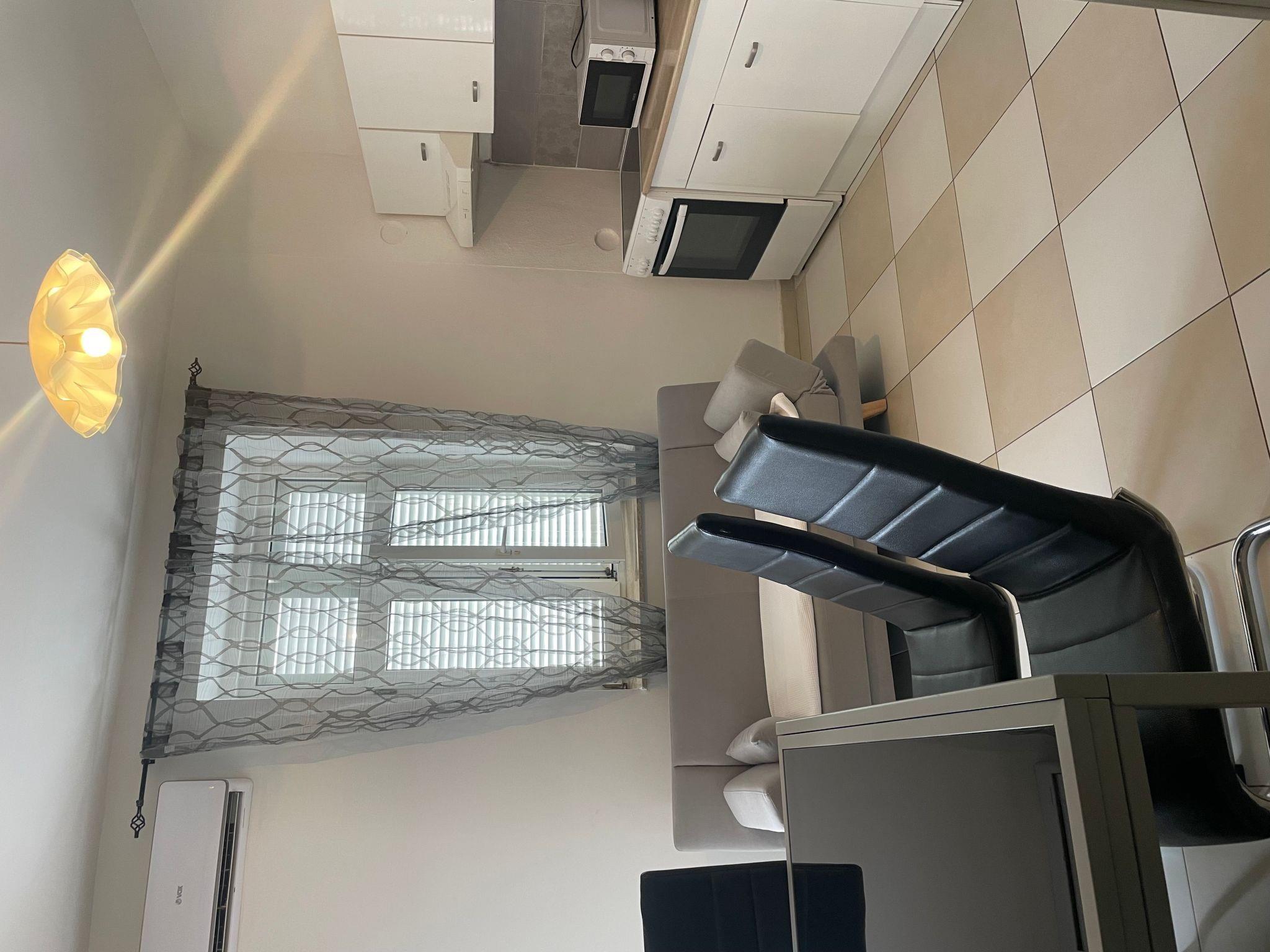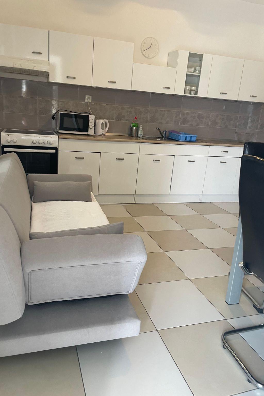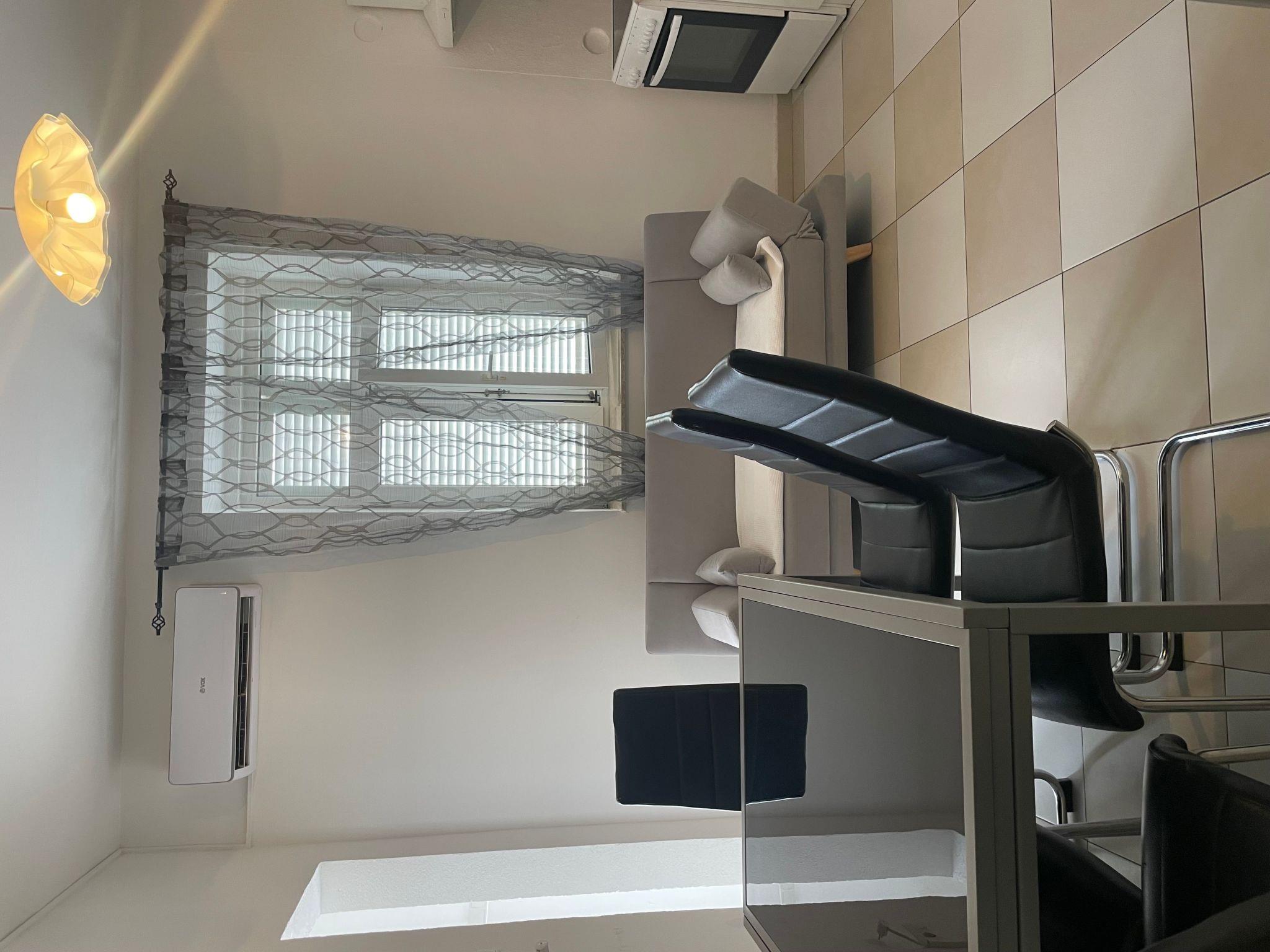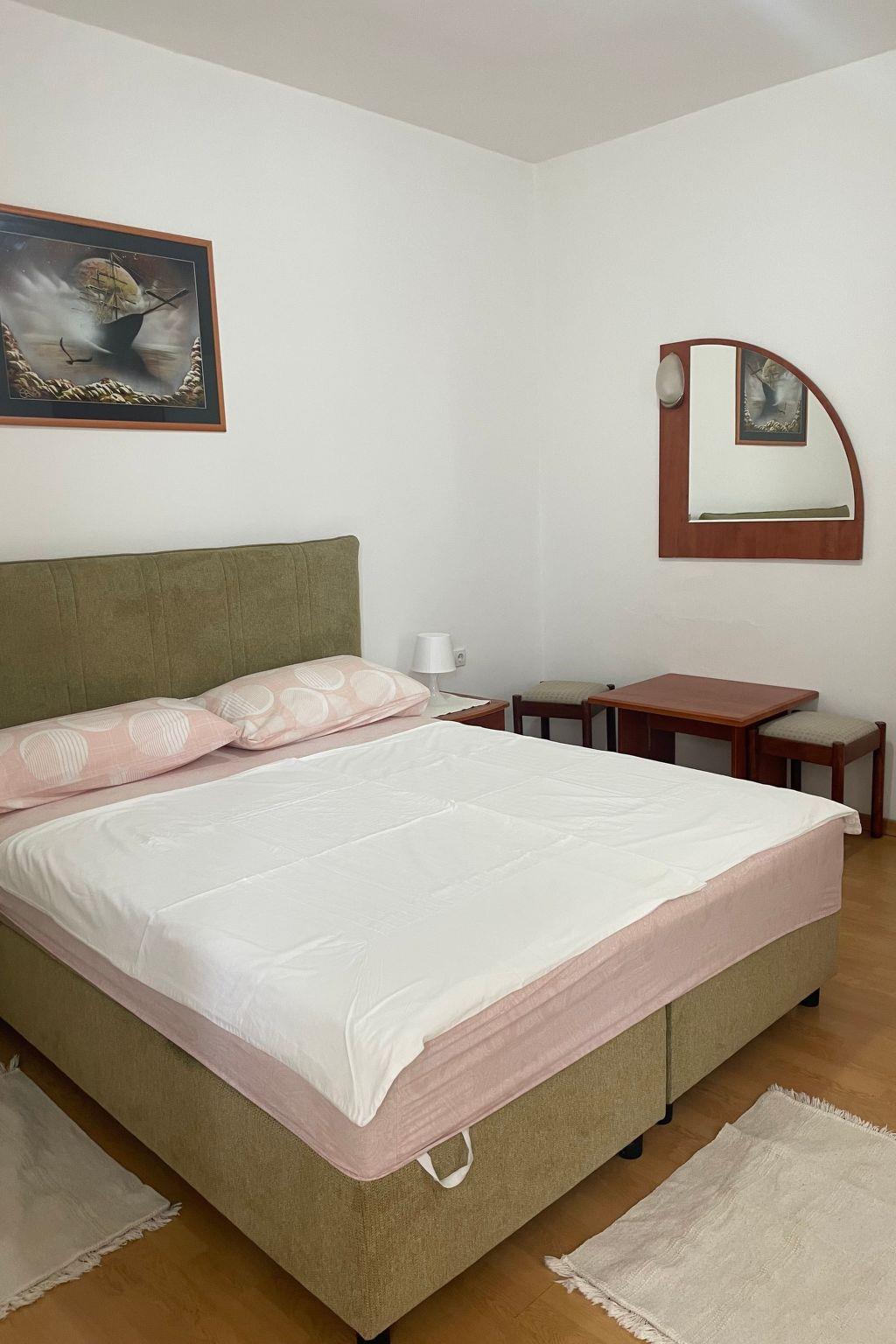 The grund floor is about 80m in size and comprises of the following rooms.A living room with a fully-eguipped kitchen, comfortable couch, a flatscreen TV and two doble rooms with the possibility of additional beds. There is also a large bathroom with a shower and separate toilet.Apartment has a large terrace (80m) with sea view and garden where you and your children can enjoy. Apartment has no air conditionig but it is pleasantly cool in summer because of its thick walls.
