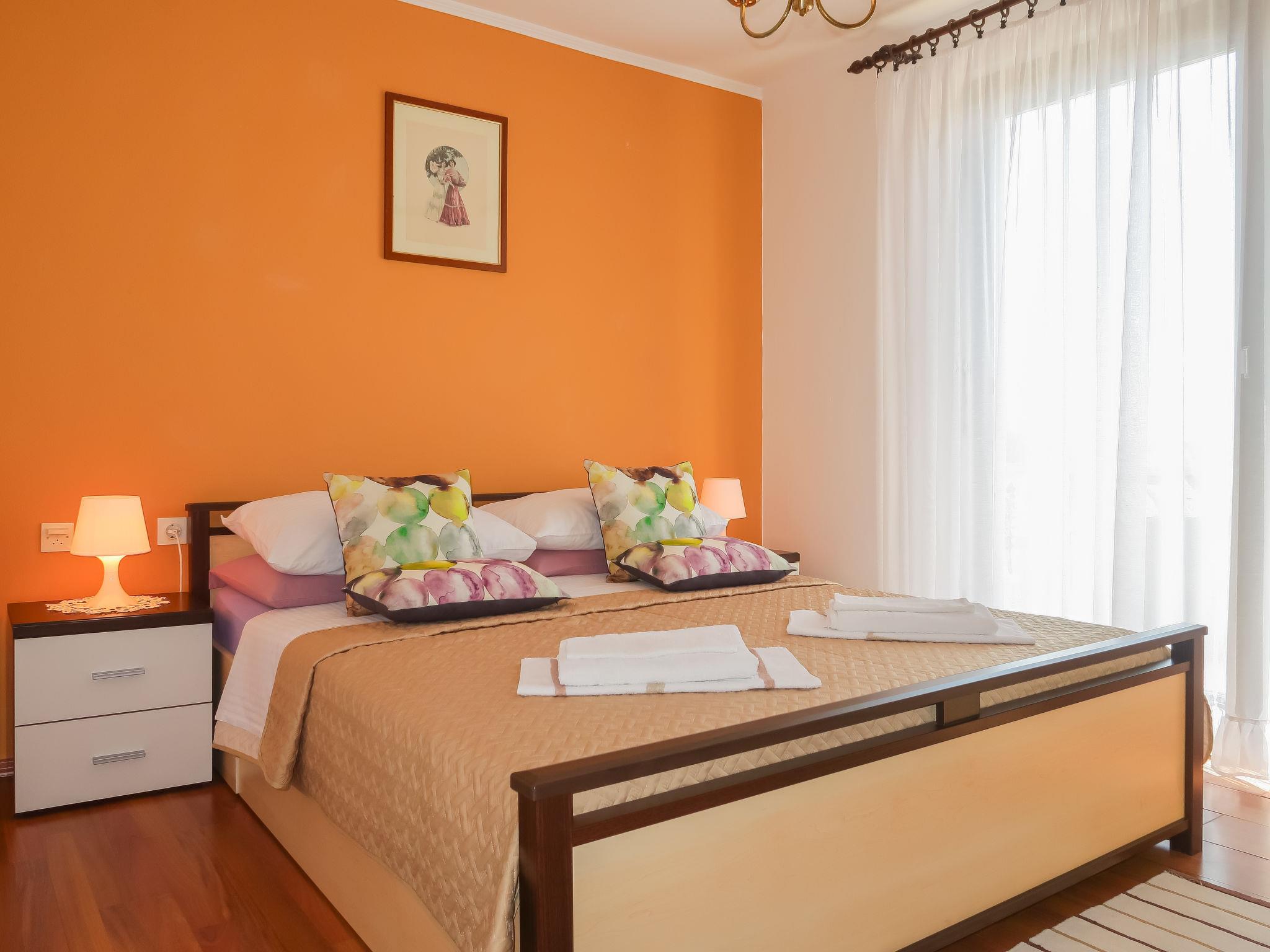 "Kolic", 3-room apartment 55 m2 on 1st floor. Living/dining room with satellite TV (flat screen), air conditioning. 2 rooms, each room with 1 french bed (160 cm, length 200 cm). Exit to the terrace. Kitchen (4 hot plates, oven, dishwasher, toaster, kettle, microwave, freezer, electric coffee machine). Shower/WC. Air-conditioning (extra). No heating option. Terrace. Terrace furniture. Facilities: Internet (WiFi, free).