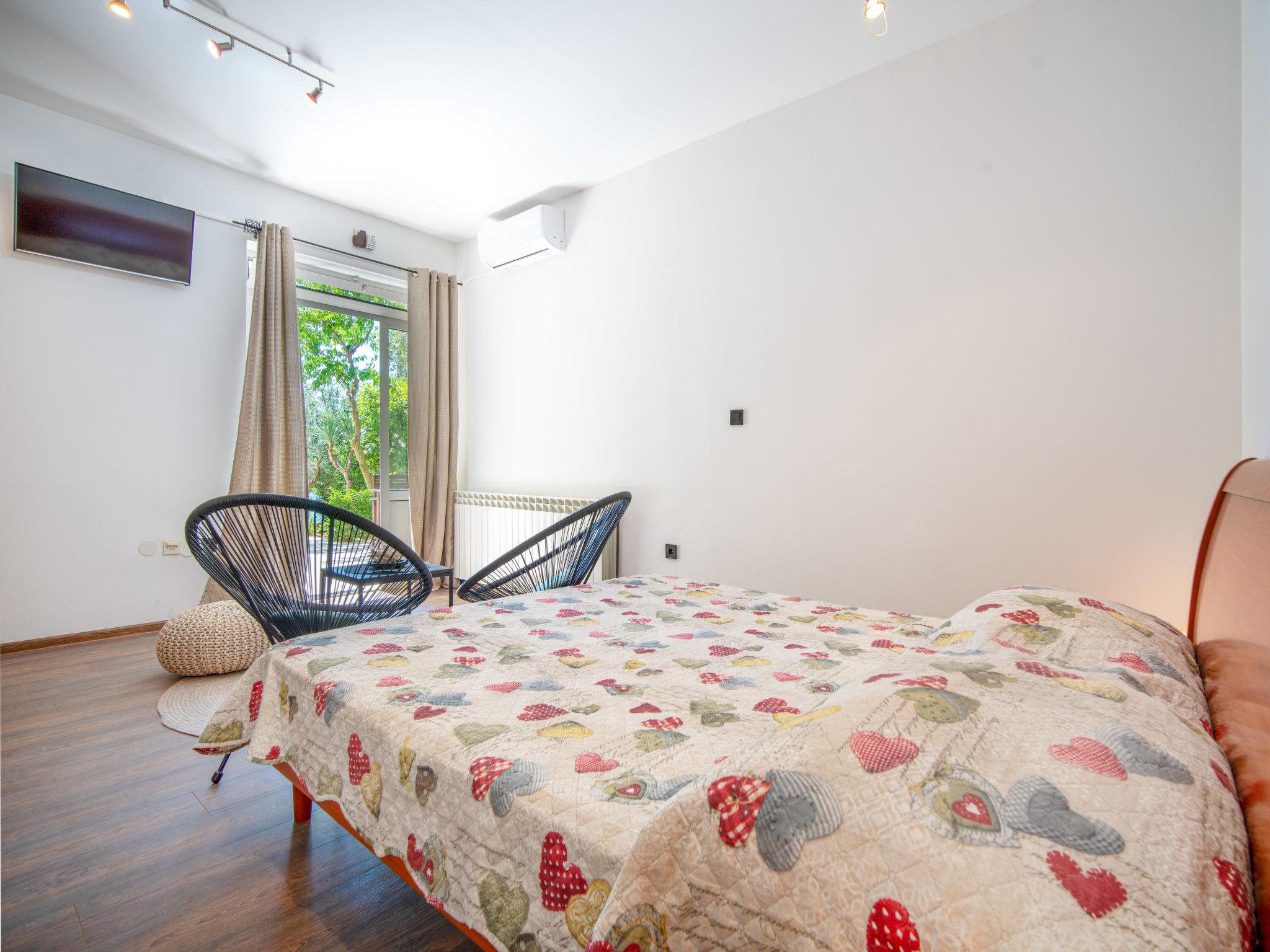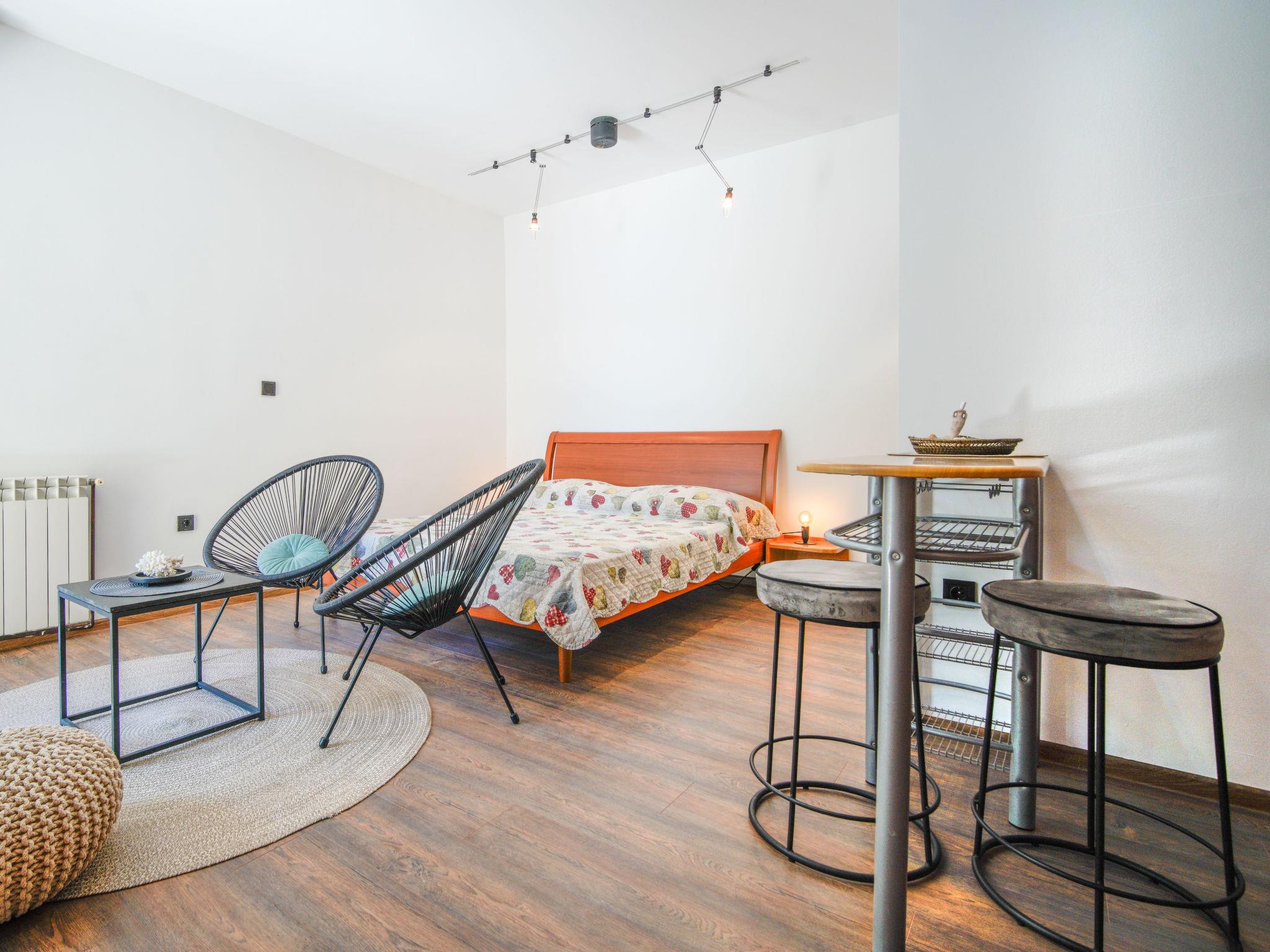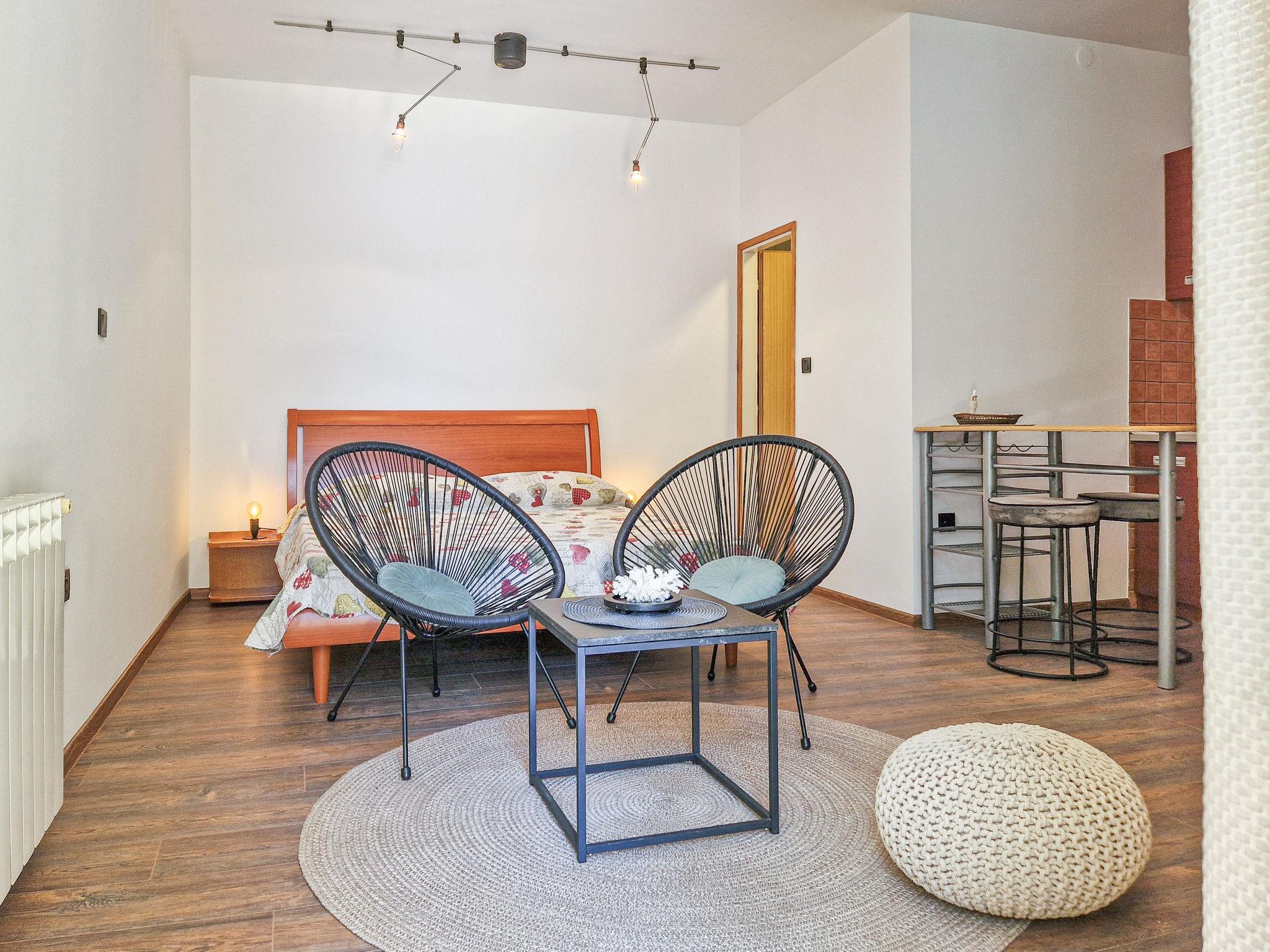 1-room studio 23 m2, on the ground floor. 1 room with 1 double bed (2 x 80 cm, length 190 cm), satellite TV and air conditioning. Kitchenette (2 ceramic glass hob hotplates, freezer, electric coffee machine) with dining table. Shower/WC. Air-conditioning (extra). Terrace 14 m2. Terrace furniture. Facilities: Internet (WiFi, free). Please note: maximum 1 pet/ dog allowed. Private entrance.