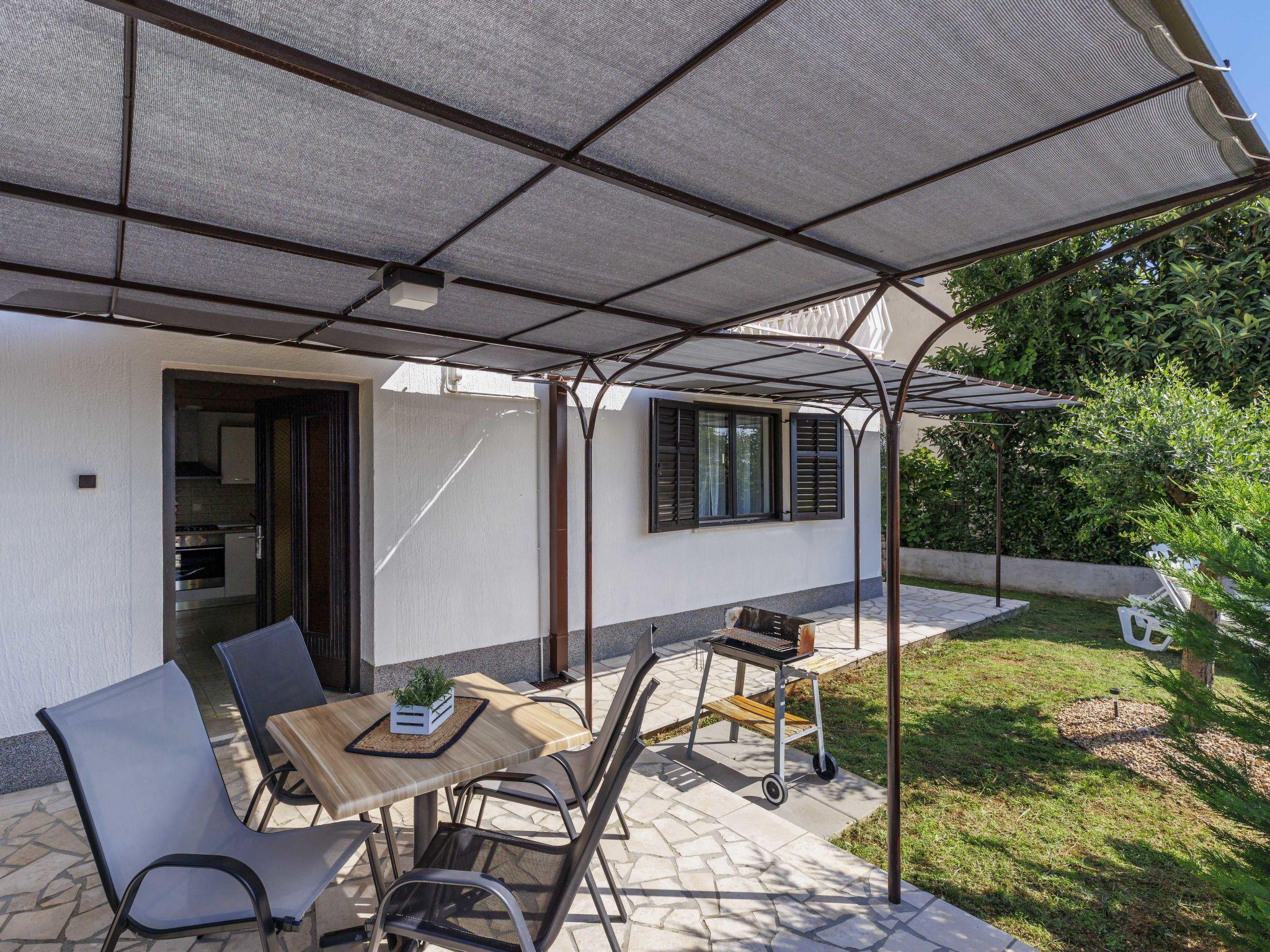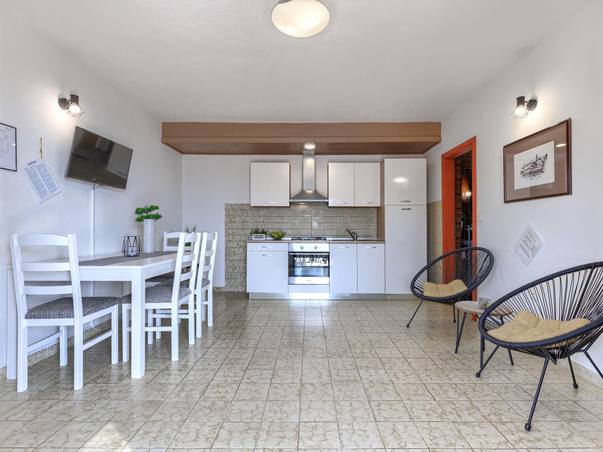 "Katarina", 3-room apartment 55 m2, on the ground floor. Living/dining room with satellite TV and air conditioning. Exit to the terrace. 1 room with 1 french bed (160 cm, length 200 cm). 1 room with 2 beds. Open kitchen (1 hot plate, oven, 3 gas rings, toaster, kettle, electric coffee machine). Shower/WC. No heating option. Terrace 15 m2. Terrace furniture, barbecue (portable), deck chairs (2). View of the sea. Facilities: Internet (WiFi, free). Please note: non-smoking house. Private entrance.
