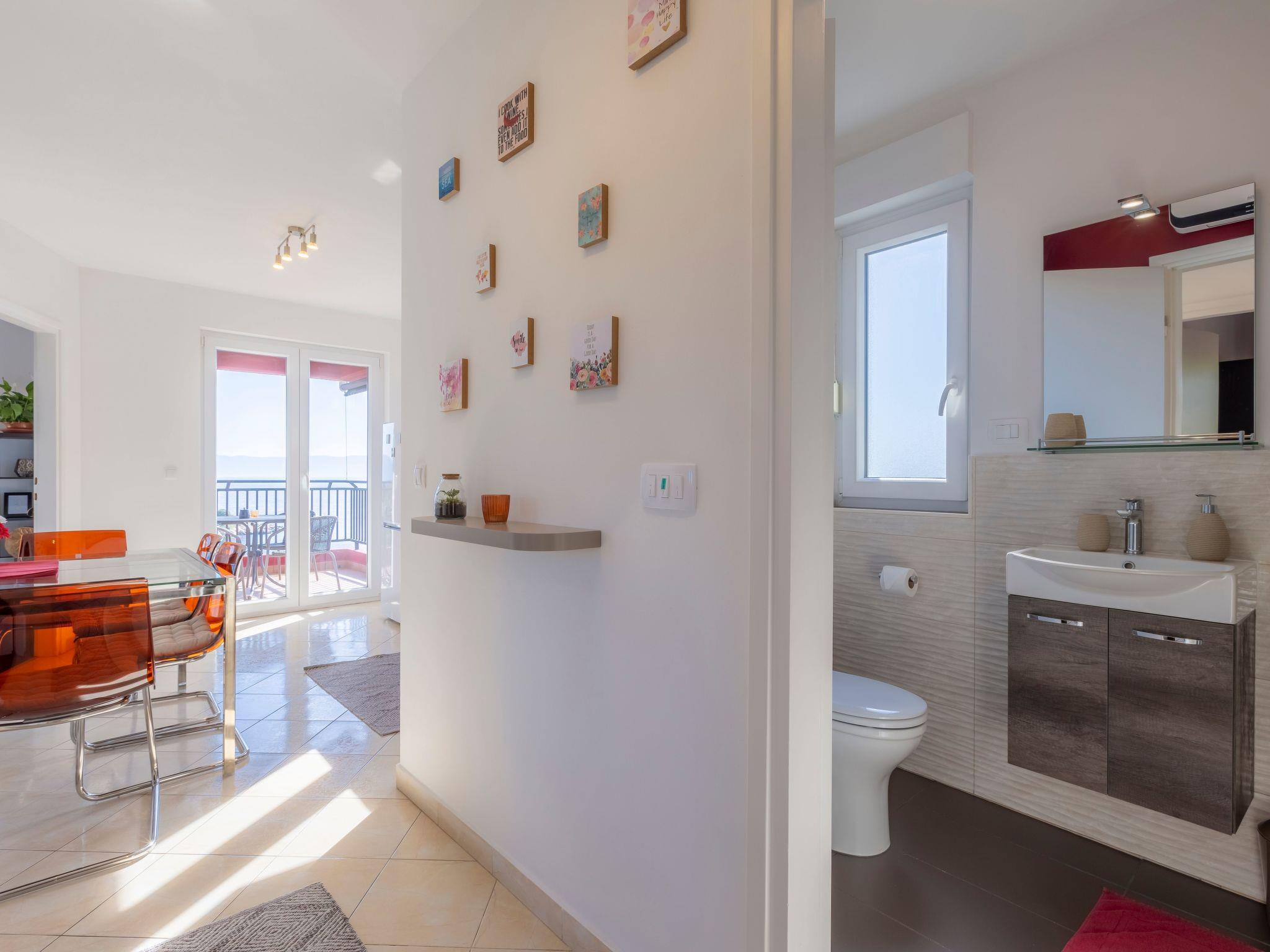 The balcony is accessible from both the kitchen and the living room. Here you can sit for hours and enjoy the marvellous view of the sea and the island of Cres. A sunshade provides the necessary shade on hot days as well as additional privacy.