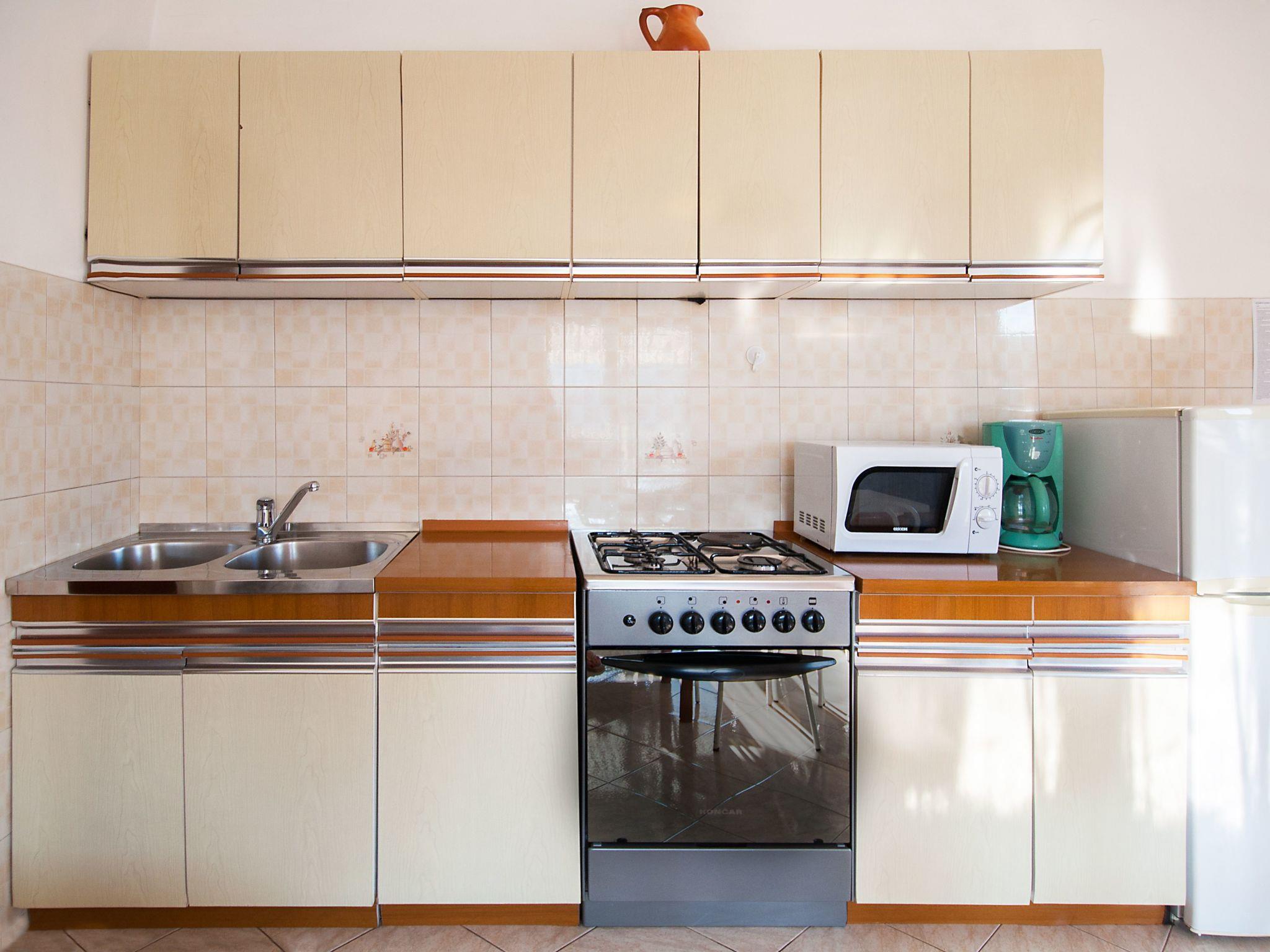 Step into the comfort of our well-appointed apartment, where every detail has been carefully considered to ensure a pleasant stay. Equipped with an air conditioning unit in part of the apartment, it offers a refreshing retreat from the warm Mediterranean climate. The kitchenette is fully furnished with a stove, filter coffee machine, and electric kettle, catering to all your culinary needs. A bathroom with a tub and integrated shower complements the interior, promising relaxation after a day of exploration.