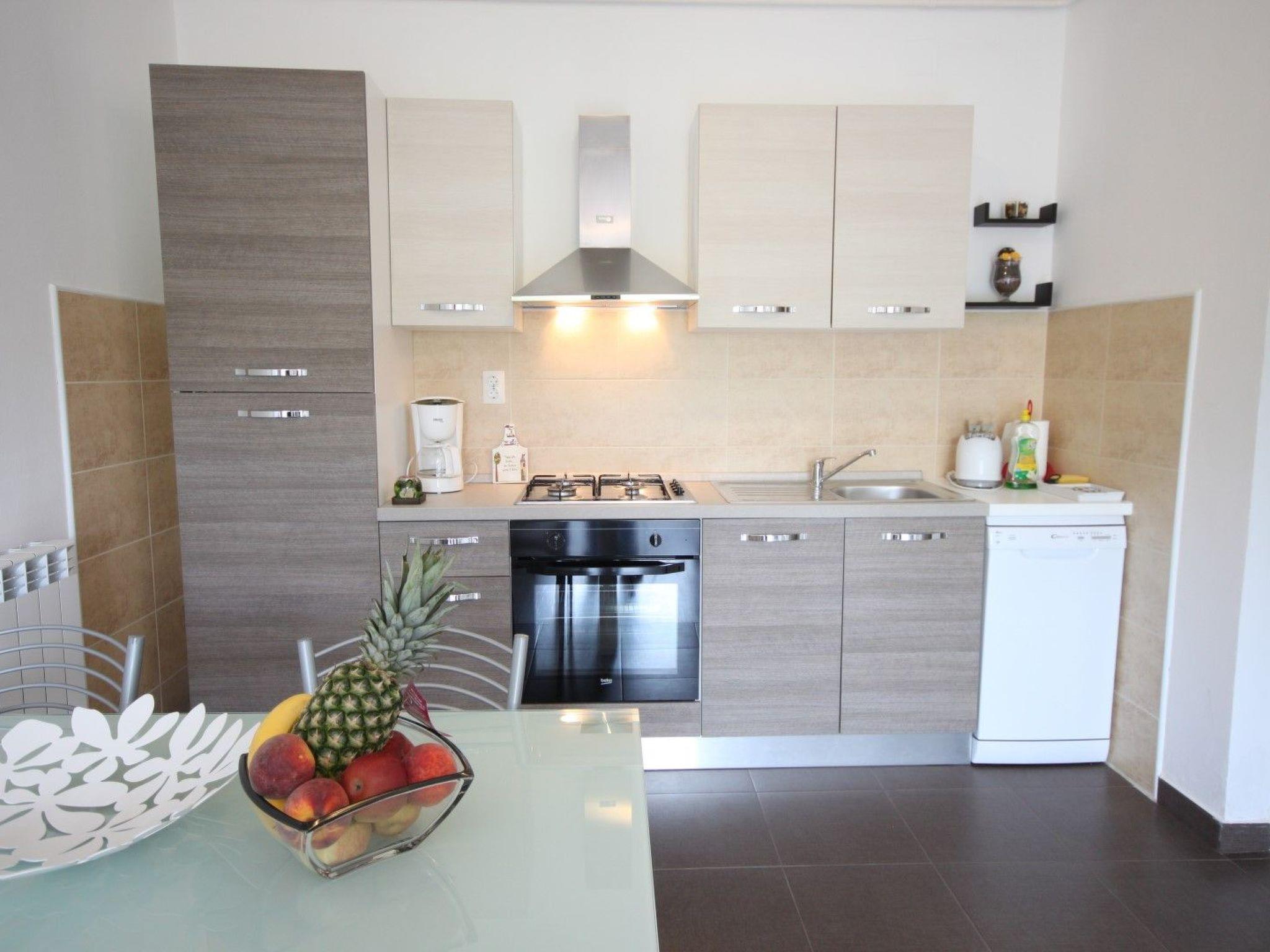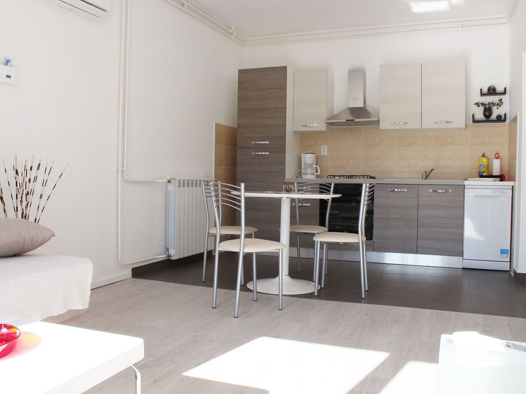 This holiday apartment provides 40m² of living space and is suitable for a maximum of two adults and two children. It is thoughtfully decorated, so guests will feel comfortable. The apartment has a kitchen with a coffee machine and everything needed for cooking. The living room is fully furnished and has satellite TV and a sofa that can be used as a sofa bed (2 x 80 x 190cm) for two people. The bedroom has a comfortable double bed (2 x 90 x 190cm), a wardrobe and bedside tables. The bathroom has a shower. The air-conditioning is payable by consumption by the chip card.