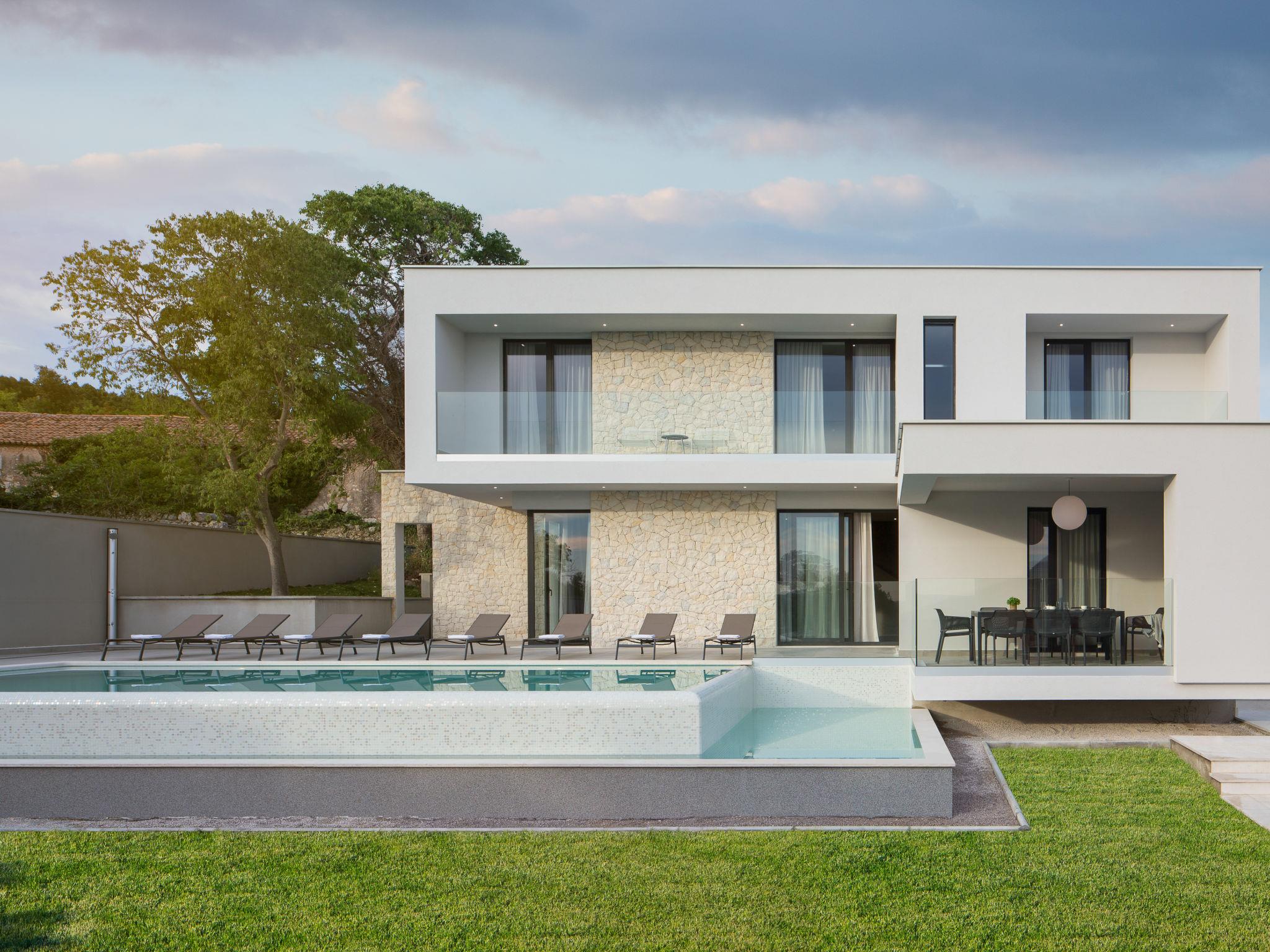 Sv.Lovrec Labinski 20 km from Rabac: Beautiful villa "Paola", 2 storeys. 14 km from the centre of Labin, in a quiet, sunny, elevated position, 2 km from the sea, in the countryside. Private: property 1'000 m2 (fenced), beautiful garden with lawn and wildlife garden, swimming pool angular (10 x 4 m, depth 140 cm, seasonal availability: 11.Apr. - 24.Oct.) with internal staircase. Outdoor shower, terrace (30 m2), barbecue, children's playground (swing). In the house: internet access, washing machine. Motor access (300 m via unmade road). Parking at the house on the premises. Shop 3 km, supermarket 14 km, restaurant 4 km, bus stop 15.6 km, pebble beach 4 km, rocky beach 4 km. Walking paths from the house 100 m, cycle lane 150 m.