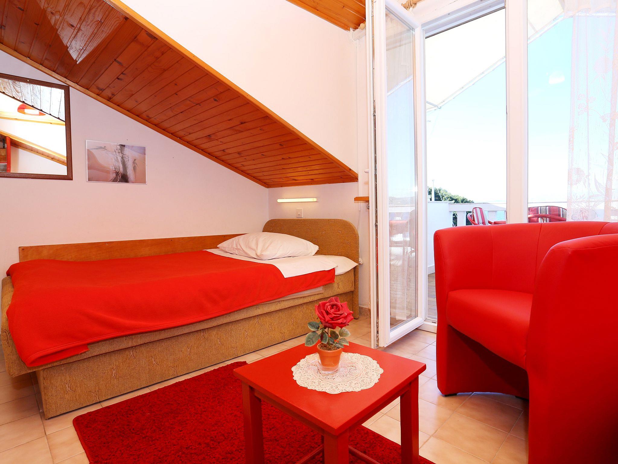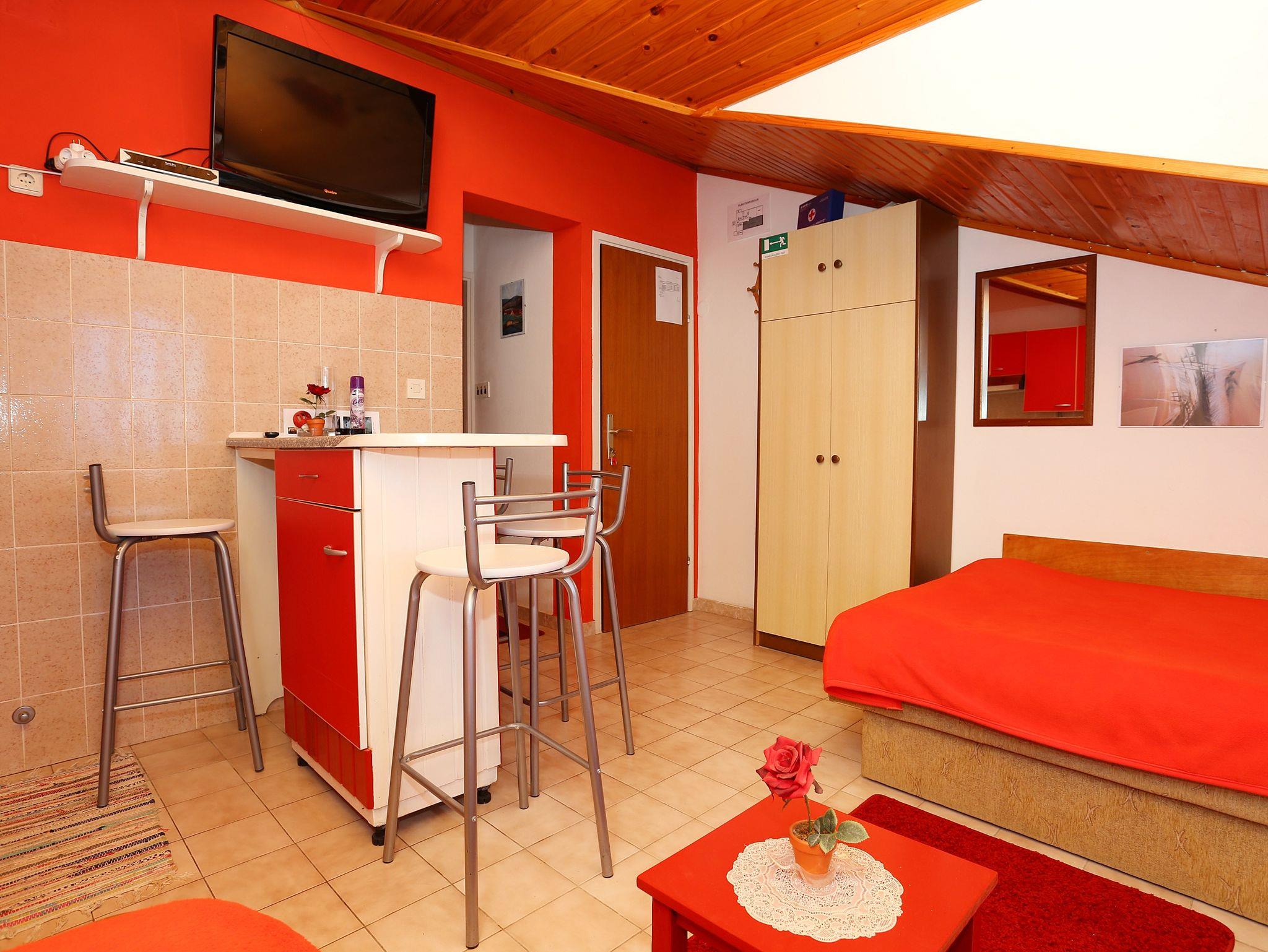 Ferienwohnung bietet Platz für 4 Gäste. Die Betten sind in Schlafzimmern, die es 1 gibt, und in Wohnzimmer, innerhalb einer Gesamtfläche von 29m2, angeordnet. Die Gäste haben eine eigene Terrasse zur Verfügung, auf der sie in warmen Sommernächten genießen können. Das Apartment bietet Meerblick. Es ist erlaubt, Speisen auf dem Gemeinschafts-Grill vorzubereiten. In der Unterkunftseinheit besteht die Möglichkeit des Mitbringens von Haustieren gegen Aufpreis. IM PREIS INBEGRIFFEN: Kurtaxe, Endreinigung, Klimatisierung, Parkplatz, Internet, Wäschewaschen, Bootsanlegeplatz, Kinderbett, Bügeleisen, Bügelbrett, Föhn, Liegestühle. VERBINDLICHE ZUSÄTZLICHE KOSTEN: Aufzahlung für Kurzaufenthalte (prozentualer Zuschlag pro Nächtigungsanzahl: 30% - 1, 20% - 2, 10% - 3). UNVERBINDLICHE ZUSÄTZLICHE KOSTEN: Haustiere (9,00 € pro Nacht), Zusatzbett (7,00 € pro Nacht). Die Verfügbarkeit zusätzlicher Dienstleistungen in Ihrem reservierten Termin und die Preise derselben (falls nicht aufgeführt) müssen im Voraus überprüft werden. Zusätzliche Dienstleistungen die in der Zahlungsaufforderung nicht aufgeführt sind werden direkt beim Vermieter bezahlt, angenommen der Gast nutzt auch diese. Ermäßigung auf den Grundpreis: Gratistag 21=19 (bei einem Aufenthalt von 21 Tagen oder mehr erhalten Sie 2 Gratistage für den Aufenthalt bis 31.12.26).