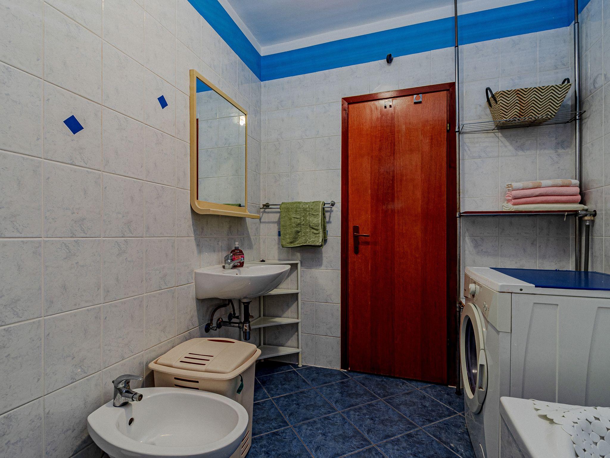 Ferienwohnung bietet Platz für 6 Gäste. Die Betten sind in Schlafzimmern, die es 3 gibt, innerhalb einer Gesamtfläche von 71m2, angeordnet. Die Gäste haben eine eigene Terrasse zur Verfügung, auf der sie in warmen Sommernächten genießen können. Das Apartment bietet Meerblick. Es ist erlaubt, Speisen auf dem Gemeinschafts-Grill vorzubereiten. IM PREIS INBEGRIFFEN: Kurtaxe, Endreinigung, Klimatisierung, Parkplatz, Internet, Zusatzbett, Bügeleisen, Bügelbrett, Föhn. Die Verfügbarkeit zusätzlicher Dienstleistungen in Ihrem reservierten Termin und die Preise derselben (falls nicht aufgeführt) müssen im Voraus überprüft werden. Zusätzliche Dienstleistungen die in der Zahlungsaufforderung nicht aufgeführt sind werden direkt beim Vermieter bezahlt, angenommen der Gast nutzt auch diese.
