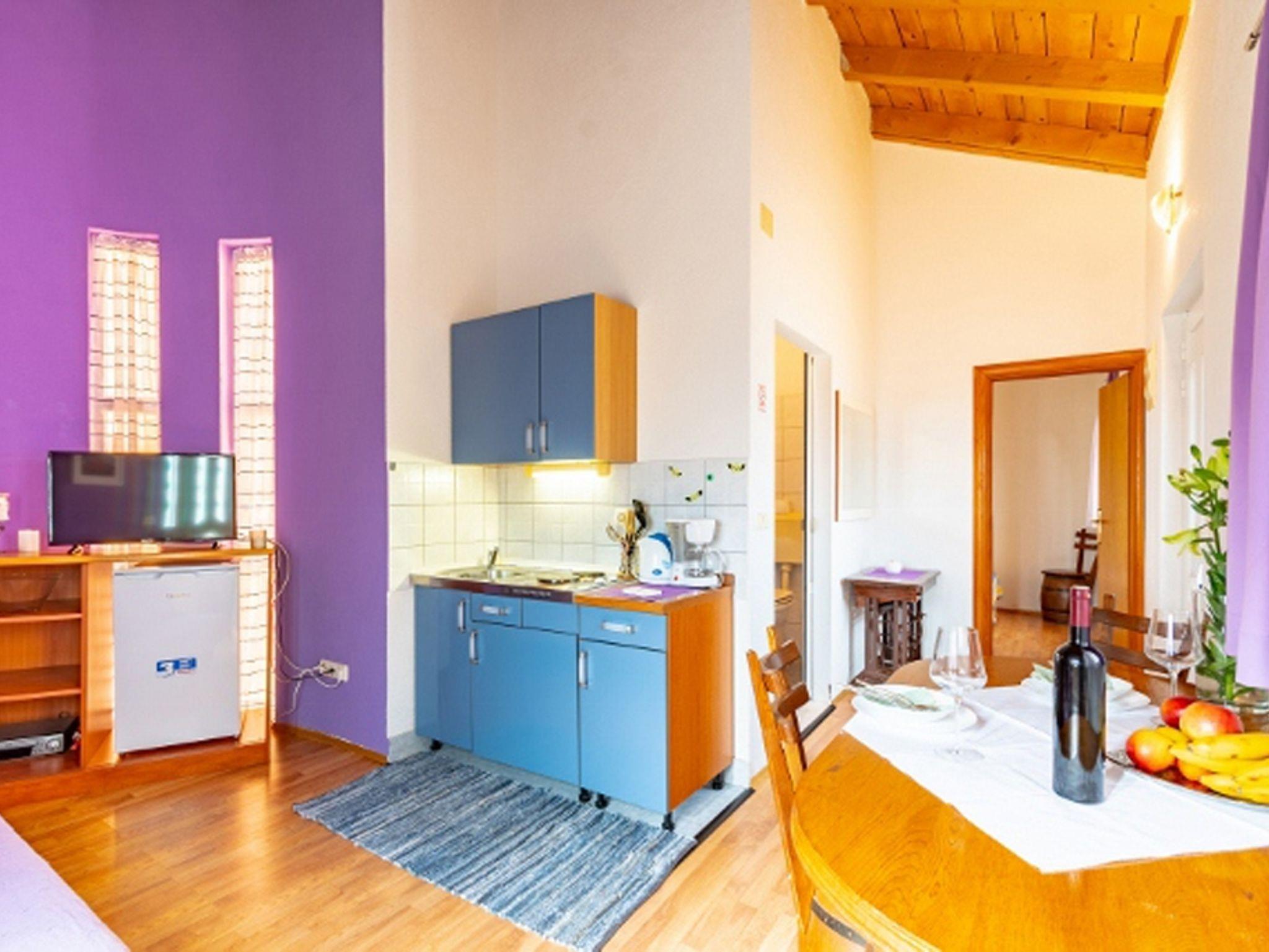 Ferienwohnung bietet Platz für 2 Gäste. Die Betten sind in Schlafzimmern, die es 1 gibt, innerhalb einer Gesamtfläche von 27m2, angeordnet. Die Gäste haben eine eigene Terrasse zur Verfügung, auf der sie in warmen Sommernächten genießen können. Das Apartment bietet Meerblick. Es ist erlaubt, Speisen auf dem Gemeinschafts-Grill vorzubereiten. In der Unterkunftseinheit besteht die Möglichkeit des Mitbringens von Haustieren, und die Dienstleistung ist im Preis der Unterkunft enthalten. IM PREIS INBEGRIFFEN: Kurtaxe, Endreinigung, Klimatisierung, Parkplatz, Internet, Haustiere, Föhn, Sonnenschirm, Liegestühle, 1 Bett für Kinder (im Preis enthalten). VERBINDLICHE ZUSÄTZLICHE KOSTEN: Aufzahlung für Kurzaufenthalte (prozentualer Zuschlag pro Nächtigungsanzahl: 30% - 1, 20% - 2, 10% - 3). Die Verfügbarkeit zusätzlicher Dienstleistungen in Ihrem reservierten Termin und die Preise derselben (falls nicht aufgeführt) müssen im Voraus überprüft werden. Zusätzliche Dienstleistungen die in der Zahlungsaufforderung nicht aufgeführt sind werden direkt beim Vermieter bezahlt, angenommen der Gast nutzt auch diese.
