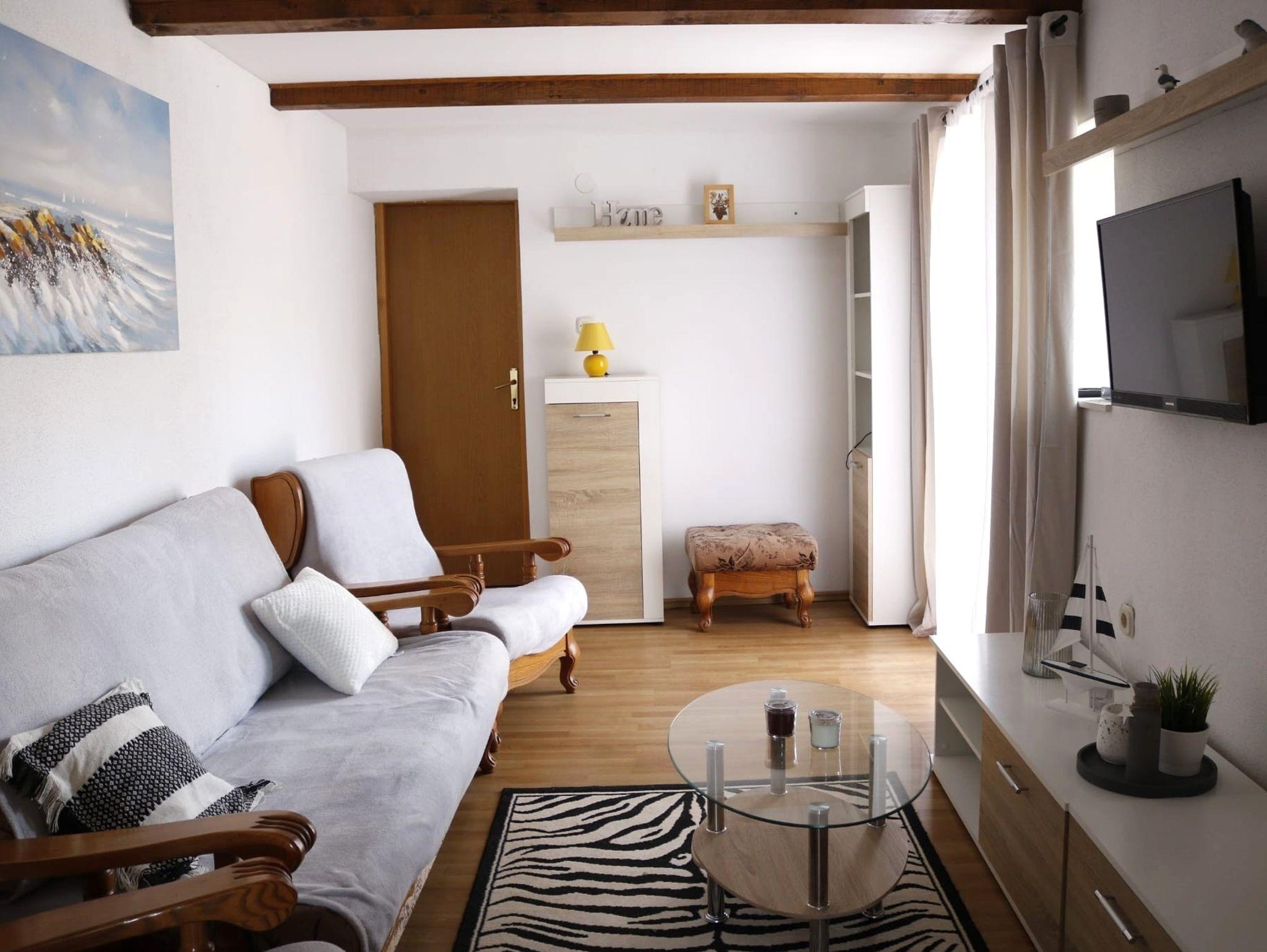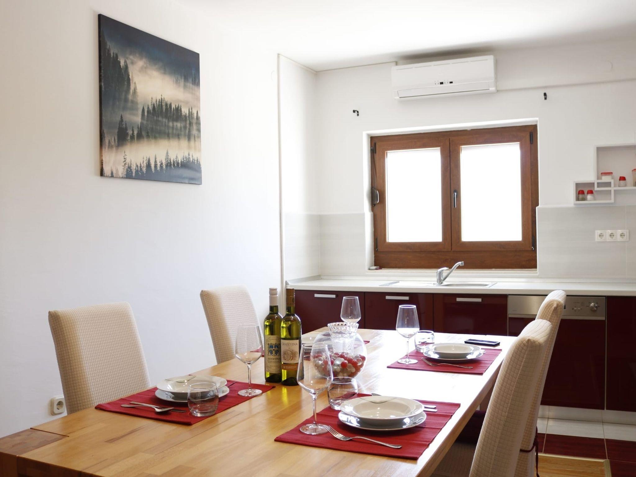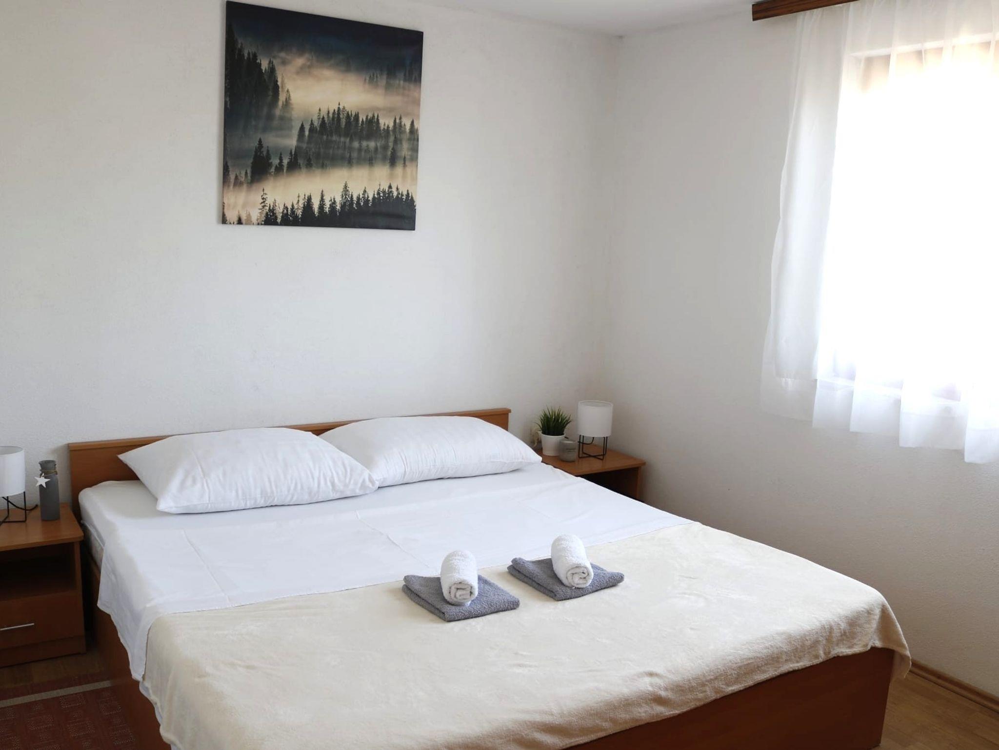 Ferienwohnung bietet Platz für 5 Gäste. Die Betten sind in Schlafzimmern, die es 2 gibt, und in Wohnzimmer, innerhalb einer Gesamtfläche von 55m2, angeordnet. Die Gäste haben eine eigene Terrasse zur Verfügung, auf der sie in warmen Sommernächten genießen können. Für vollen Genuss und Entspannung gibt es einen privaten Grill für Gäste dieser Unterkunft. Während ihres Aufenthalts können sich Gäste im privaten Schwimmbad entspannen. IM PREIS INBEGRIFFEN: Kurtaxe, Endreinigung, Klimatisierung, Pool, Parkplatz, Internet, Kinderbett, Bügeleisen, Bügelbrett, Föhn. Die Verfügbarkeit zusätzlicher Dienstleistungen in Ihrem reservierten Termin und die Preise derselben (falls nicht aufgeführt) müssen im Voraus überprüft werden. Zusätzliche Dienstleistungen die in der Zahlungsaufforderung nicht aufgeführt sind werden direkt beim Vermieter bezahlt, angenommen der Gast nutzt auch diese. Ermäßigung auf den Grundpreis: Gratistag 14=13 (bei einem Aufenthalt von 14 Tagen oder mehr erhalten Sie einen Gratistag für den Aufenthalt bis 31.12.26).