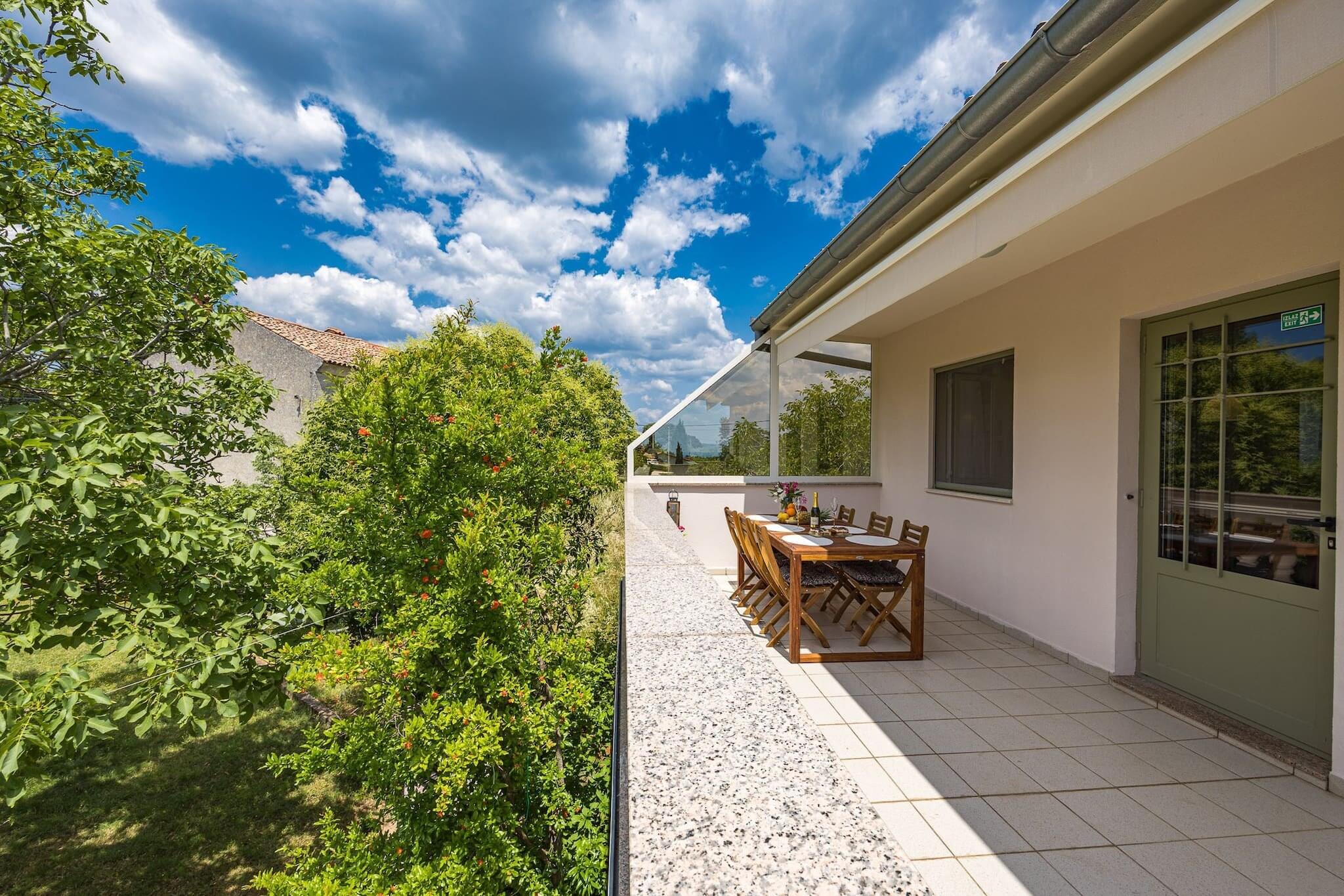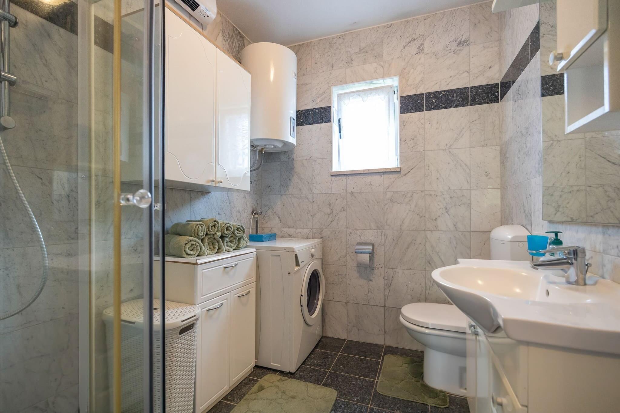 Denne hyggelige lejlighed i Rakalj tilbyder et behageligt ophold med 2 soveværelser, hvilket gør den ideel for op til 4 gæster. Det strækker sig over 90 m² og har en have med udendørsmøbler, perfekt til at slappe af eller nyde måltider udendørs. Lejligheden har også væsentlige faciliteter såsom aircondition, Wi-Fi, et tv med satellitkanaler og en vaskemaskine for din bekvemmelighed. Der er en balkon, hvor gæsterne kan slappe af og nyde omgivelserne. Ejendommen er beliggende i et roligt område, hvilket giver et fredeligt tilflugtssted, mens den forbliver tæt på vigtige tjenester såsom et supermarked og restaurant, kun 150 meter væk. Lejligheden er perfekt beliggende til at udforske området med en klippestrand kun 2 km fra ejendommen og en lufthavn 26 km væk. For dem, der ønsker at opdage charmen ved Rakalj, er byens centrum kun en kort gåtur væk. Gæster vil også sætte pris på den fredfyldte og landlige atmosfære, der tilbyder den perfekte kombination af afslapning og bekvemmelighed. De fredelige omgivelser sikrer en rolig flugt, mens nærheden til butikker og restauranter sikrer, at alt hvad du behøver er inden for rækkevidde. Det veludstyrede køkken i denne lejlighed har en blanding af gas- og elektriske apparater, herunder køleskab, mikroovn, ovn og kaffemaskine, så gæsterne nemt kan tilberede måltider. Der er også ekstra køkkenudstyr, tallerkener og skåle. Lejlighedens tankevækkende faciliteter sikrer et behageligt og behageligt ophold for alle gæster. Med sin kombination af fredelige omgivelser og bekvemme faciliteter tilbyder denne indkvartering den perfekte hjemmebase for din Rakalj-ferie.