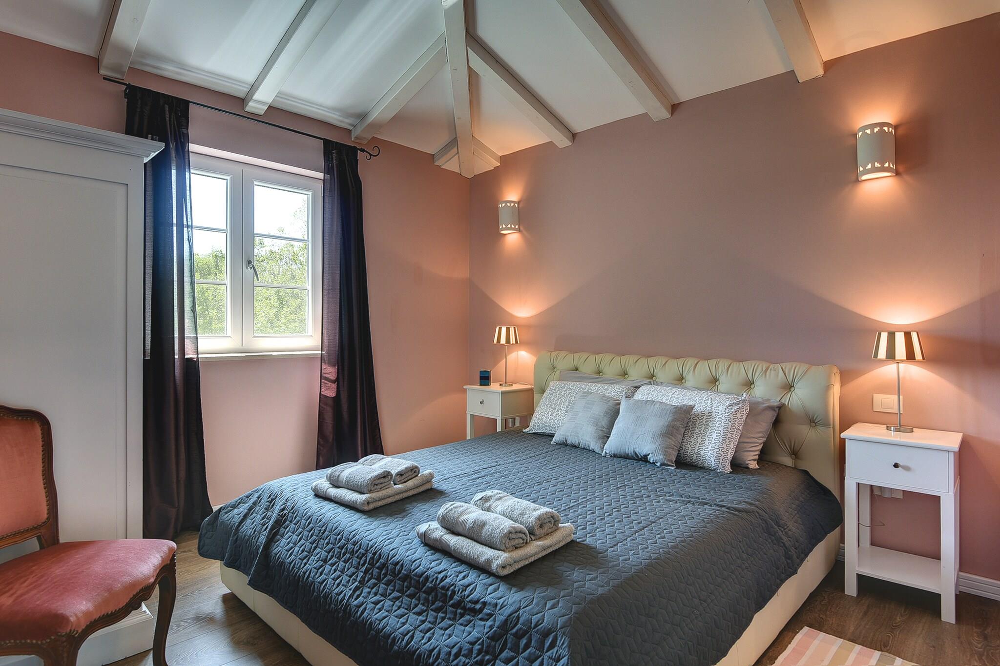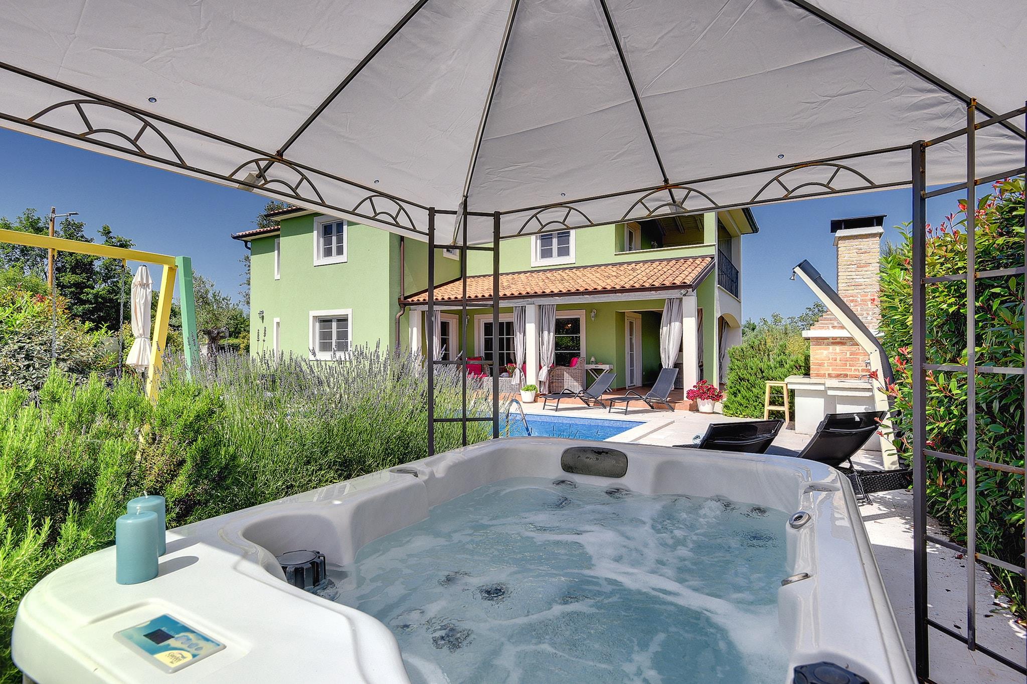 Denne villa med privat swimmingpool ligger i det østlige Istrien, på stedet Rakalj, 2,5 km fra stranden. Et lille supermarked og en restaurant ligger inden for gåafstand. Ud over det velholdte interiør tilbyder Villa Oliva også udendørs faciliteter såsom en privat swimmingpool, jacuzzi og grill. Der er en swing til børnene. I stueetagen finder du en stue med opholdsstue og spisebord og adgang til overdækket terrasse, køkken og separat toilet. På første sal er der tre soveværelser med aircondition og eget badeværelse, en med balkon og havudsigt.