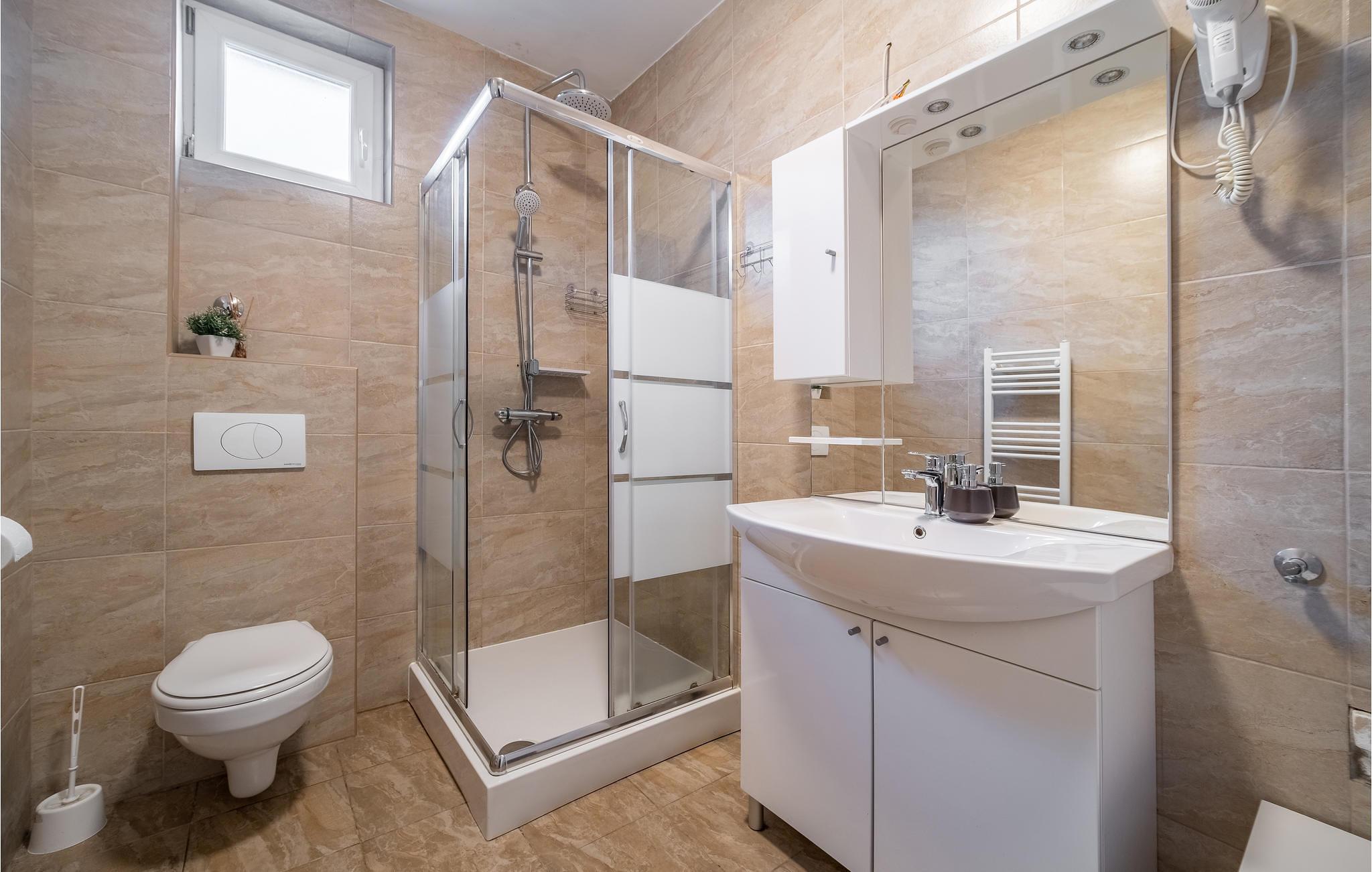 Badeværelse (nr. 1) - WC. Varmt og koldt vand. Bruser