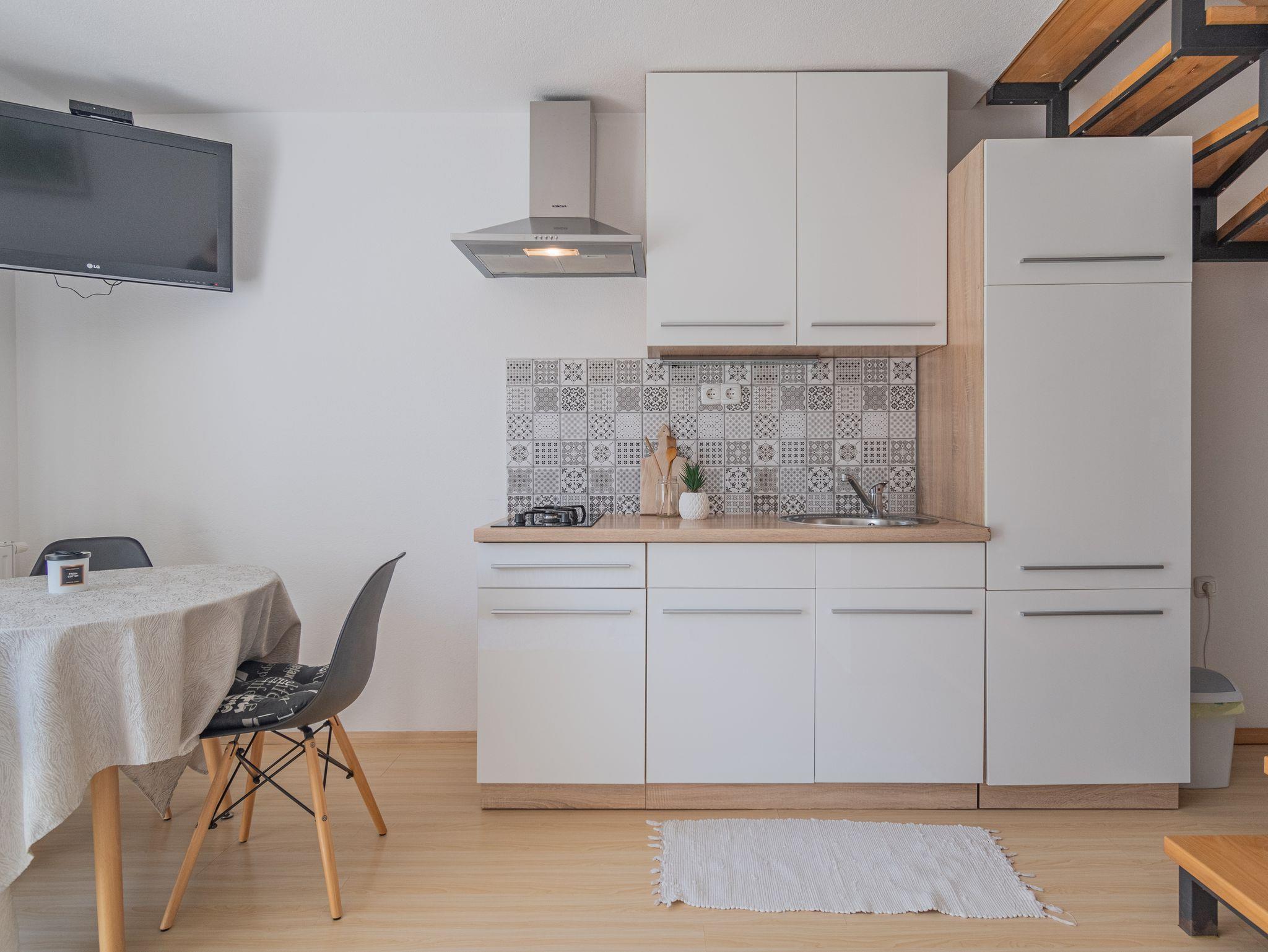 Studio bietet Platz für 3 Gäste. Die Betten sind in Schlafzimmern, die es 1 gibt, innerhalb einer Gesamtfläche von 34m2, angeordnet. Die Gäste haben eine eigene Terrasse zur Verfügung, auf der sie in warmen Sommernächten genießen können. Es ist erlaubt, Speisen auf dem Gemeinschafts-Grill vorzubereiten. IM PREIS INBEGRIFFEN: Kurtaxe, Endreinigung, Klimatisierung, Zentralheizung, Parkplatz, Internet, Bügeleisen, Bügelbrett, Föhn. Die Verfügbarkeit zusätzlicher Dienstleistungen in Ihrem reservierten Termin und die Preise derselben (falls nicht aufgeführt) müssen im Voraus überprüft werden. Zusätzliche Dienstleistungen die in der Zahlungsaufforderung nicht aufgeführt sind werden direkt beim Vermieter bezahlt, angenommen der Gast nutzt auch diese. Ermäßigung auf den Grundpreis: Gratistag 14=13 (bei einem Aufenthalt von 14 Tagen oder mehr erhalten Sie einen Gratistag für den Aufenthalt bis 31.12.26).