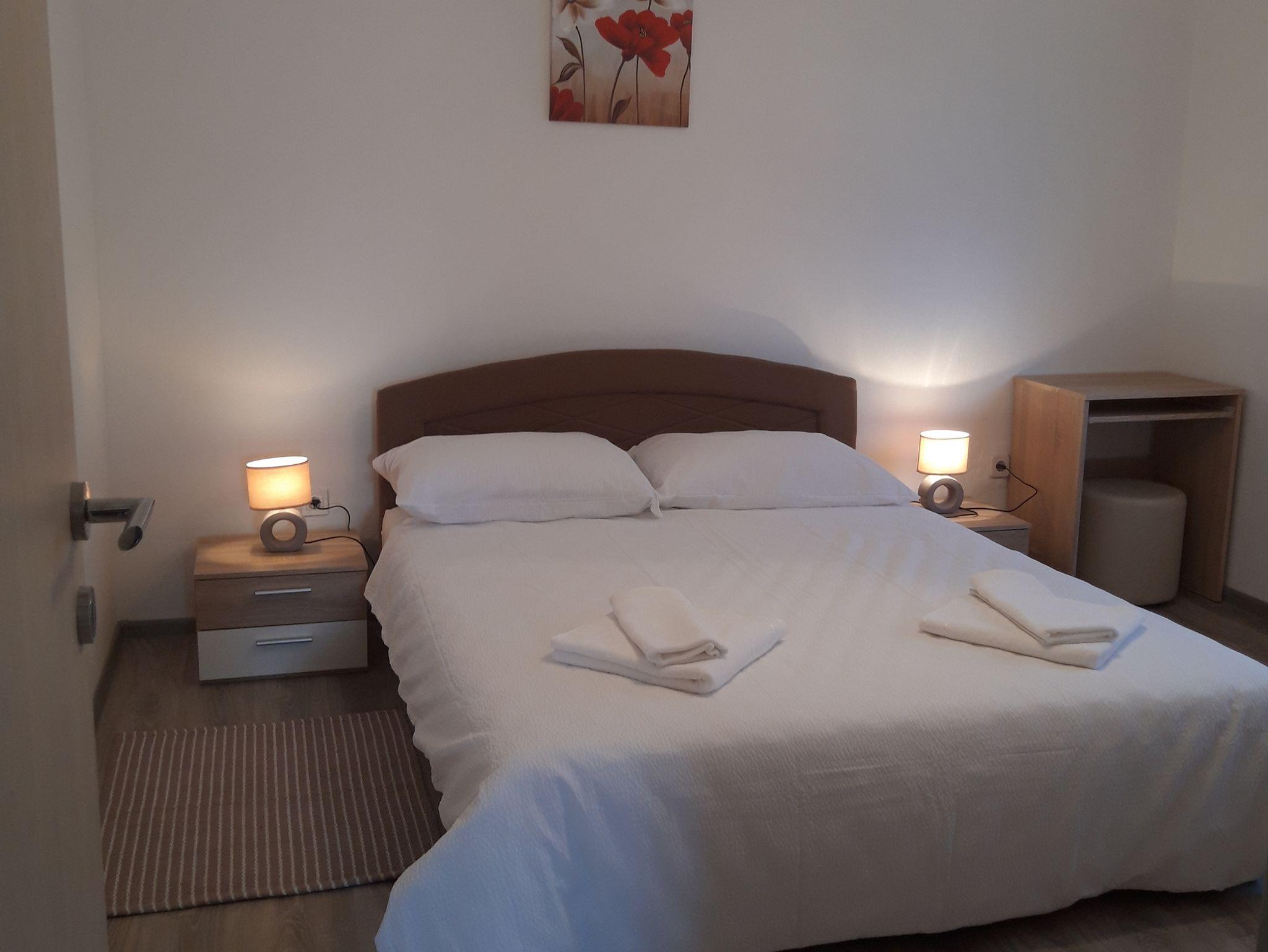 Ferienwohnung bietet Platz für 4 Gäste. Die Betten sind in Schlafzimmern, die es 1 gibt, und in Wohnzimmer, innerhalb einer Gesamtfläche von 50m2, angeordnet. Die Gäste haben eine eigene Terrasse zur Verfügung, auf der sie in warmen Sommernächten genießen können. IM PREIS INBEGRIFFEN: Kurtaxe, Endreinigung, Zentralheizung, Parkplatz, Internet, Bügeleisen, Bügelbrett, Föhn. Die Verfügbarkeit zusätzlicher Dienstleistungen in Ihrem reservierten Termin und die Preise derselben (falls nicht aufgeführt) müssen im Voraus überprüft werden. Zusätzliche Dienstleistungen die in der Zahlungsaufforderung nicht aufgeführt sind werden direkt beim Vermieter bezahlt, angenommen der Gast nutzt auch diese. Ermäßigung auf den Grundpreis: Gratistag 14=13 (bei einem Aufenthalt von 14 Tagen oder mehr erhalten Sie einen Gratistag für den Aufenthalt bis 31.12.26).