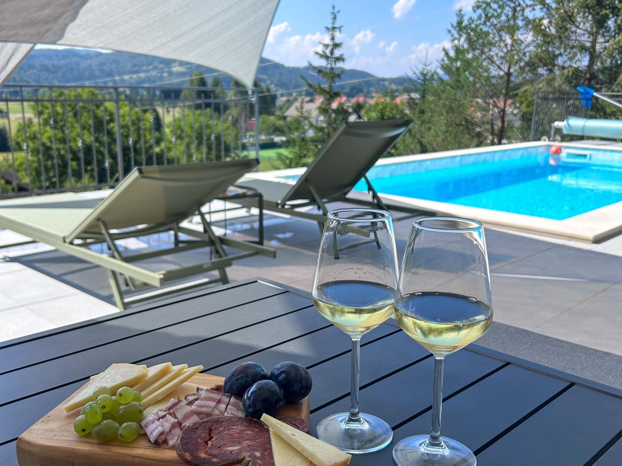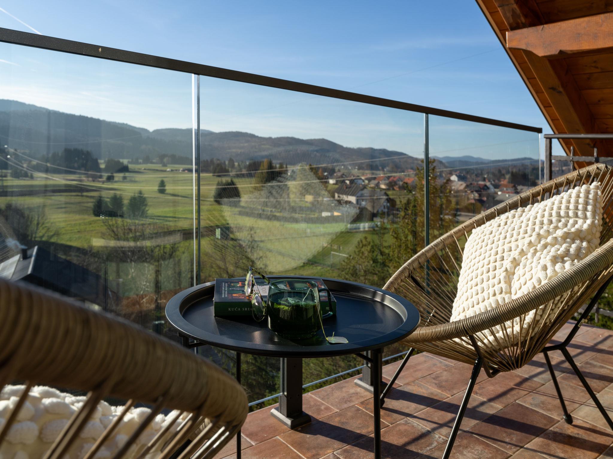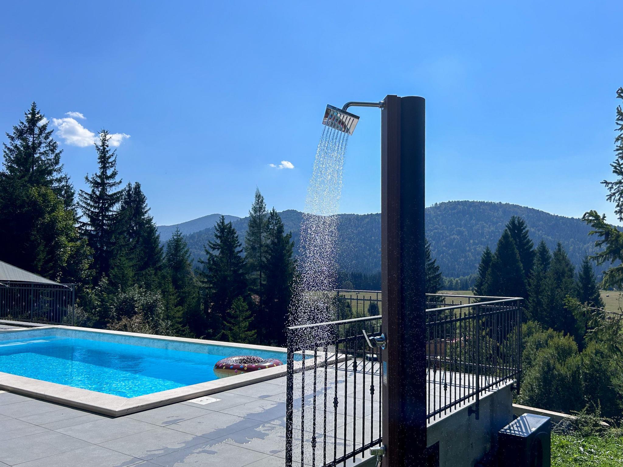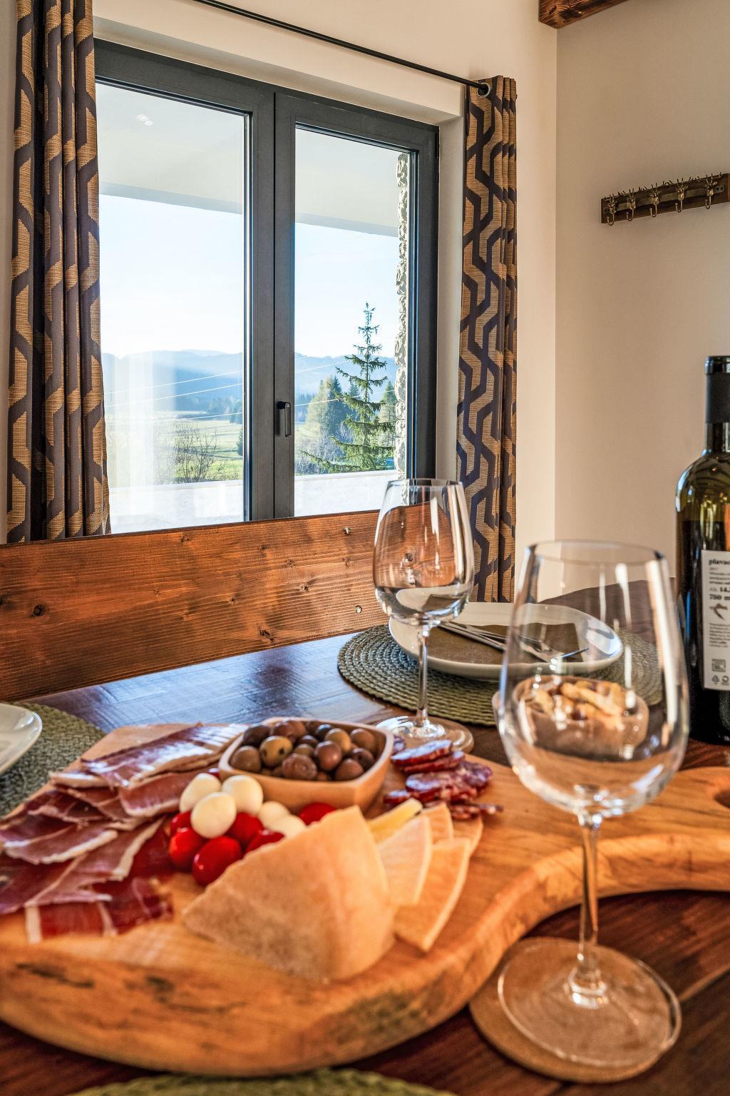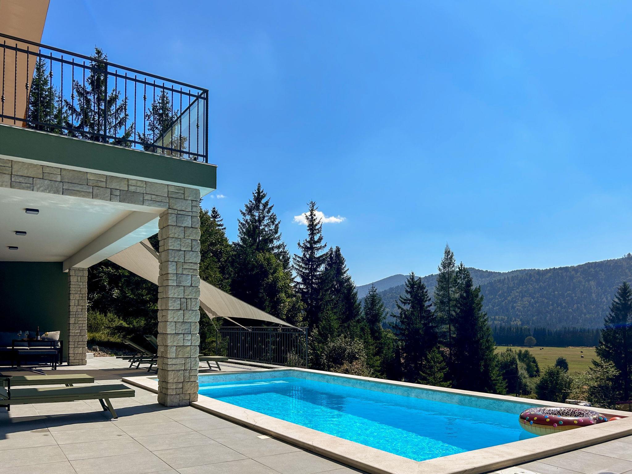 Modern, comfortable villa "Villa Stella Verde", 3 storeys, built in 2024. 1 km from the centre of Ravna Gora, in a sunny, elevated position, 50 km from the sea, in the countryside. Private: property 500 m2, swimming pool angular, heated (22 m2, depth 150 cm, seasonal availability: 01.May. - 30.Oct.) with internal staircase and salt-electrolysis pool-cleaning system. Outdoor shower, terrace (90 m2), garden furniture, pool maintenance by the owner/gardener. In the house: internet access, sauna, hot tub (all included), central heating system. Parking (for 4 cars) at the house on the premises. Shop 1.5 km, restaurant 750 m, bus stop 7.6 km, railway station 7.9 km, pebble beach 50 km. Nearby attractions: NP Risnjak 30 km, Zeleni vir 18 km. Please note: suitable for families. The owner does not accept any youth groups. It is necessary to announce 7 days in advance if the pool heating is required. It is not possible to use the hot tub on the day of arrival.