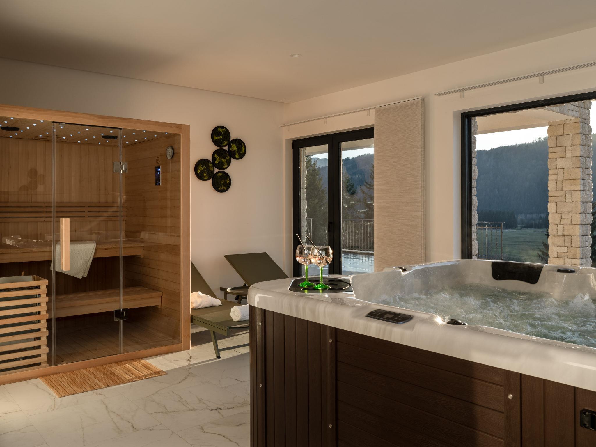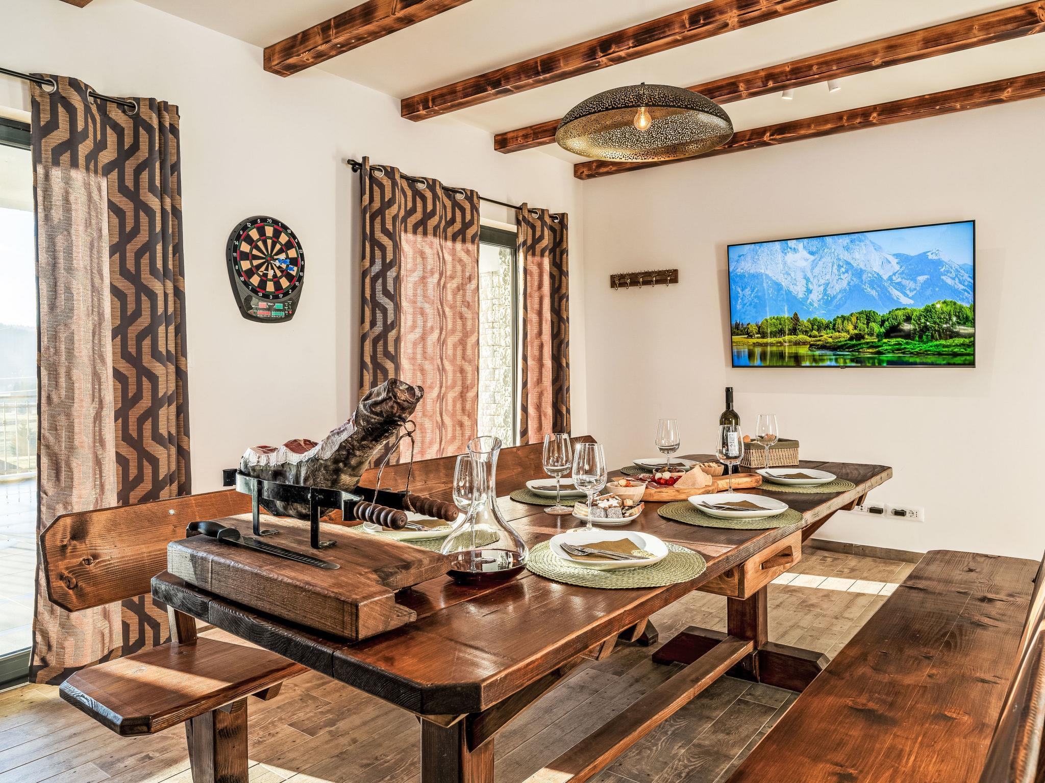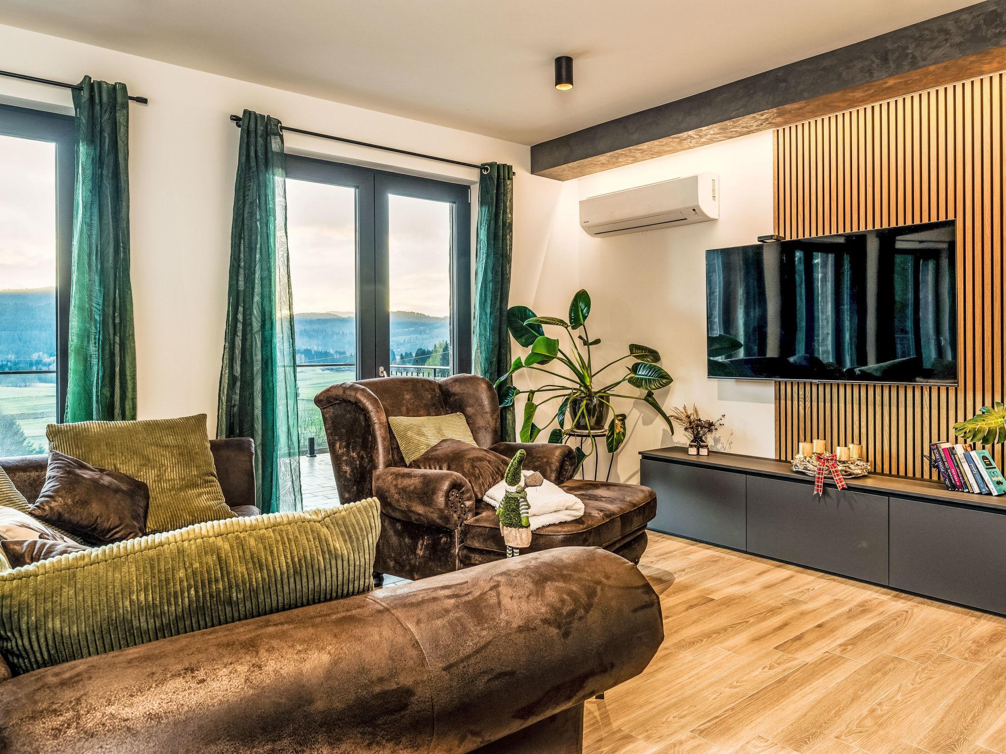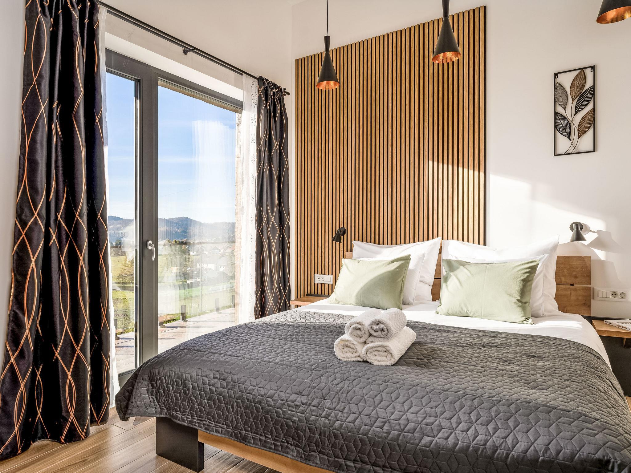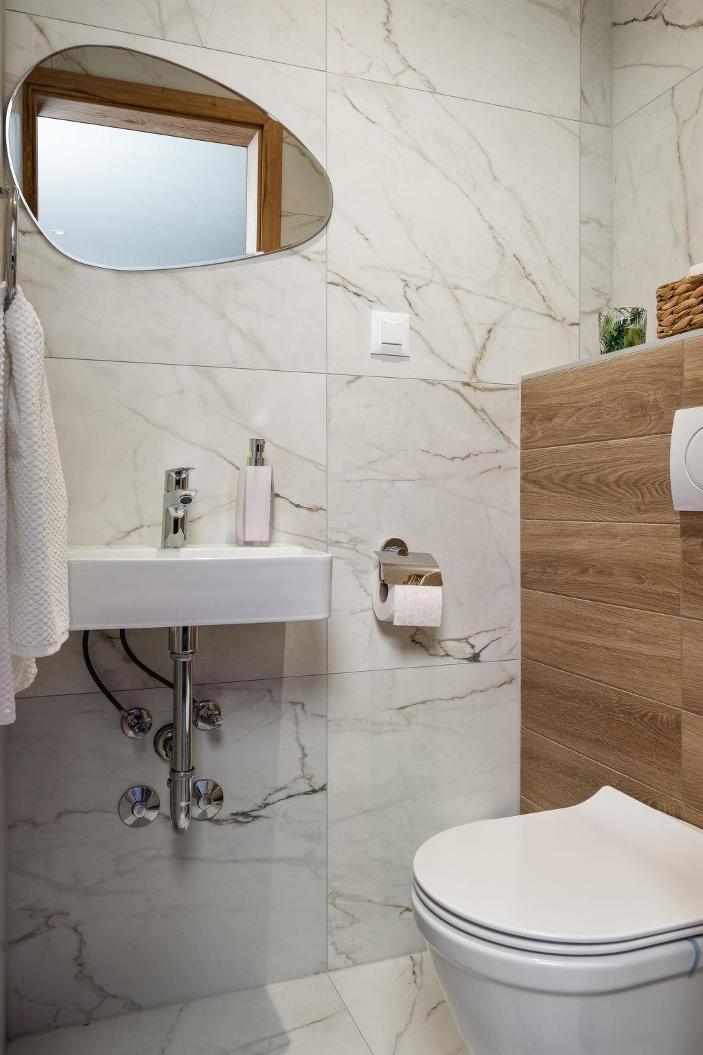 Modern, comfortable villa "Villa Stella Verde", 3 storeys, built in 2024. 1 km from the centre of Ravna Gora, in a sunny, elevated position, 50 km from the sea, in the countryside. Private: property 500 m2, swimming pool angular, heated (22 m2, depth 150 cm, seasonal availability: 01.May. - 30.Oct.) with internal staircase and salt-electrolysis pool-cleaning system. Outdoor shower, terrace (90 m2), garden furniture, pool maintenance by the owner/gardener. In the house: internet access, sauna, hot tub (all included), central heating system. Parking (for 4 cars) at the house on the premises. Shop 1.5 km, restaurant 750 m, bus stop 7.6 km, railway station 7.9 km, pebble beach 50 km. Nearby attractions: NP Risnjak 30 km, Zeleni vir 18 km. Please note: suitable for families. The owner does not accept any youth groups. It is necessary to announce 7 days in advance if the pool heating is required. It is not possible to use the hot tub on the day of arrival.