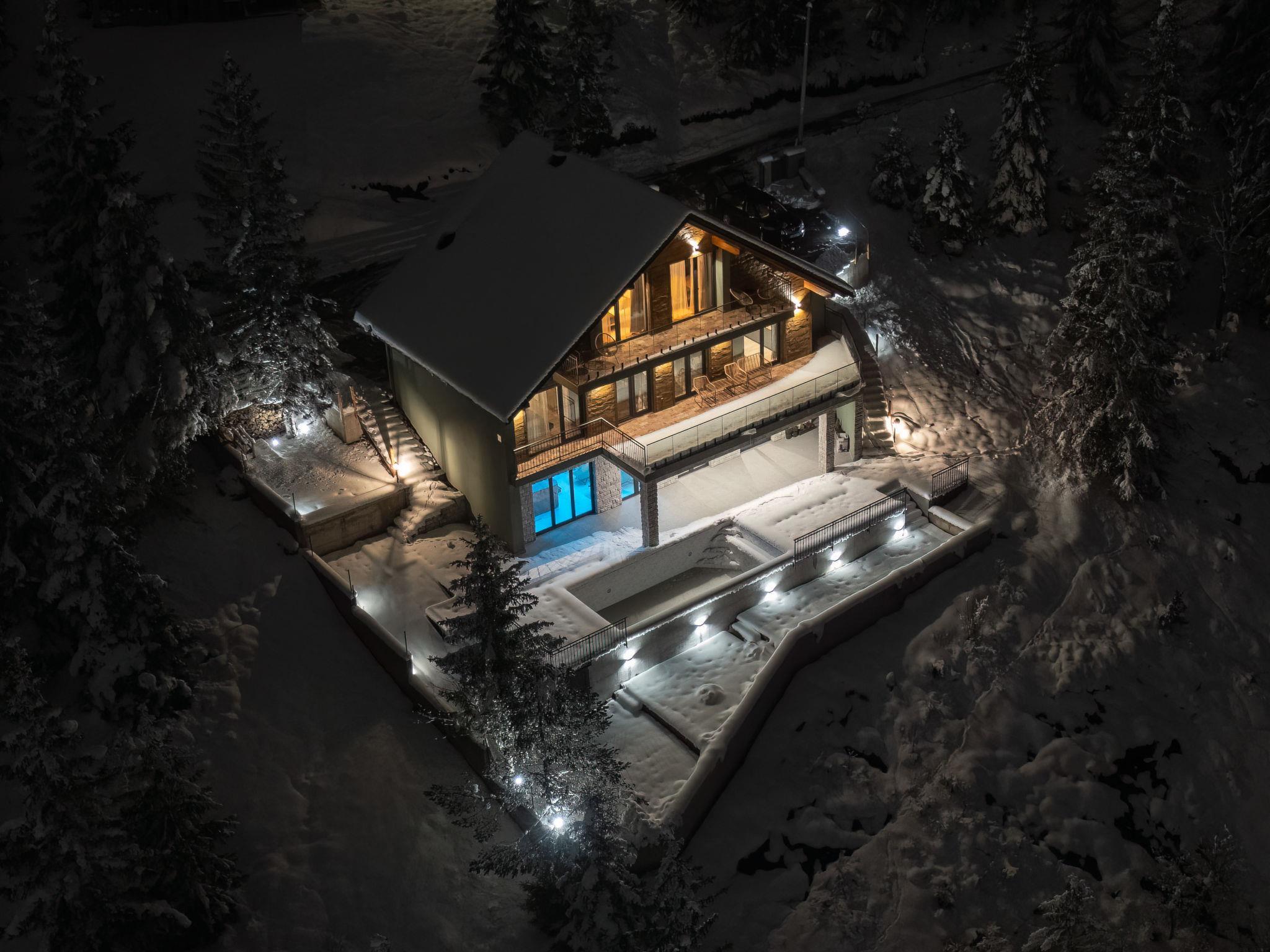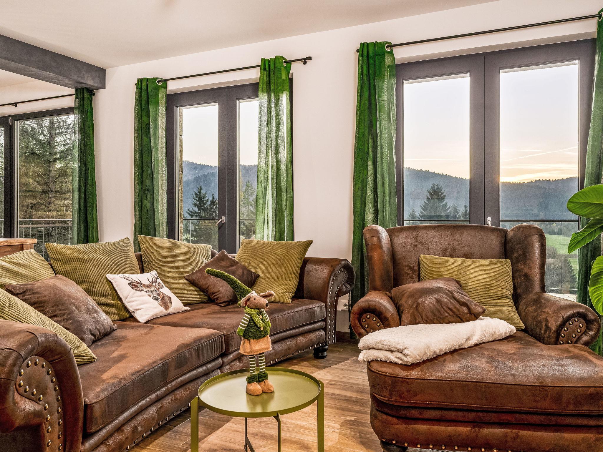 4-room villa 255 m2 on 3 levels. Living/dining room with open-hearth fireplace, satellite TV and air conditioning. Exit to the balcony. 1 room with 1 french bed (180 cm, length 200 cm), bath/WC and satellite TV. Exit to the balcony. Open kitchen (oven, 4 induction hot plates, toaster, kettle, microwave, freezer, electric coffee machine). Sep. WC. On the lower ground floor: living/dining room with open-hearth fireplace and satellite TV. Exit to the terrace, to the swimming pool. Lounge with shower/WC. Exit to the terrace, to the swimming pool. Sep. WC. Upper floor: 2 rooms with sloping ceilings, ceiling height 170 - 400 cm, each room with 1 bed (90 cm, length 200 cm), 1 french bed (180 cm, length 200 cm), shower/WC and satellite TV. Exit to the balcony. Balcony 13 m2, balcony 33 m2, large terrace 90 m2 partly roofed. Terrace furniture, balcony furniture, deck chairs (8). View of the valley and the forest. Facilities: washing machine, iron, baby cot, hair dryer. Internet (WiFi, free). Please note: non-smoking house.