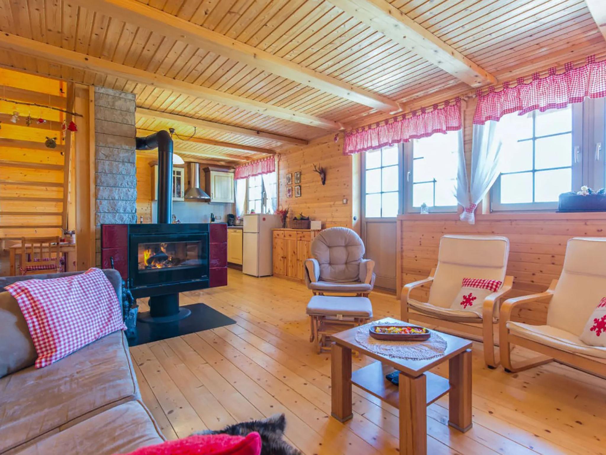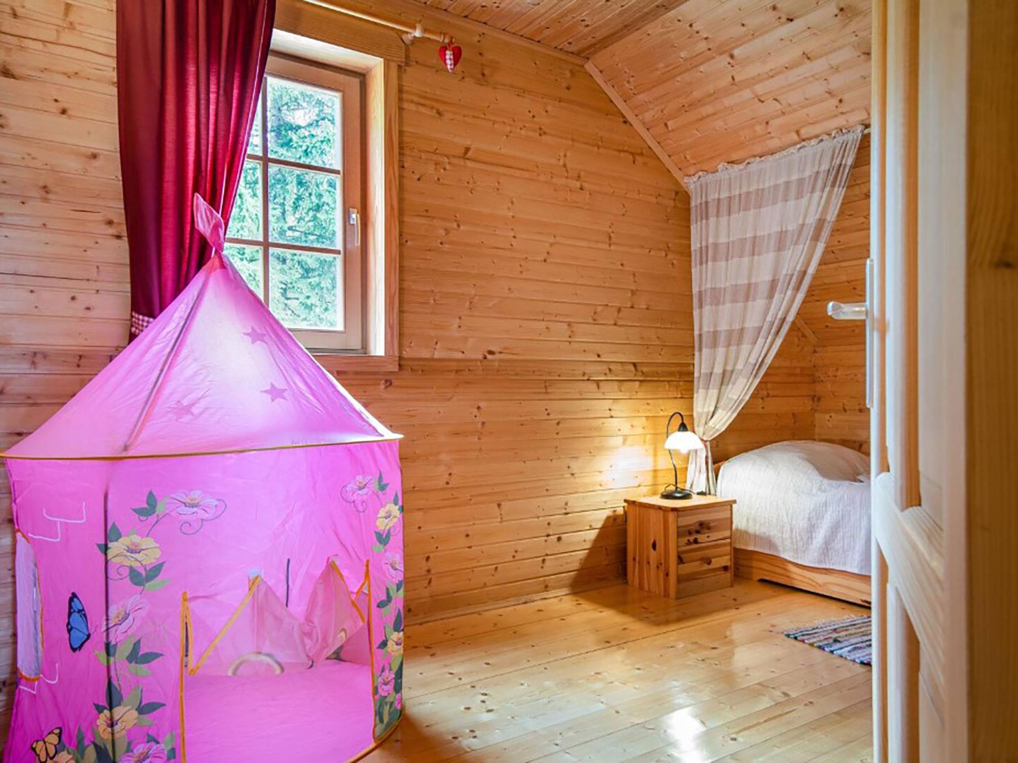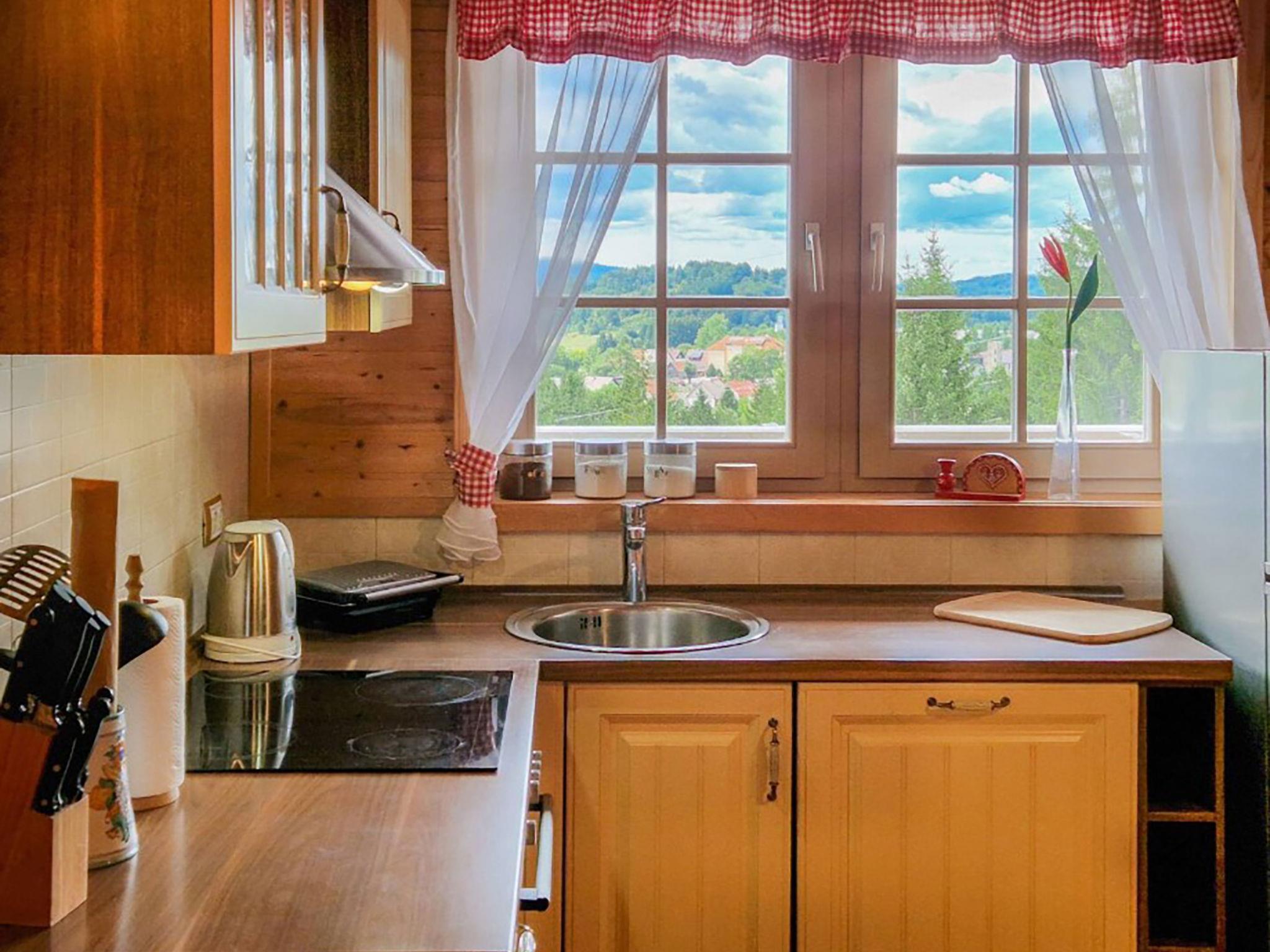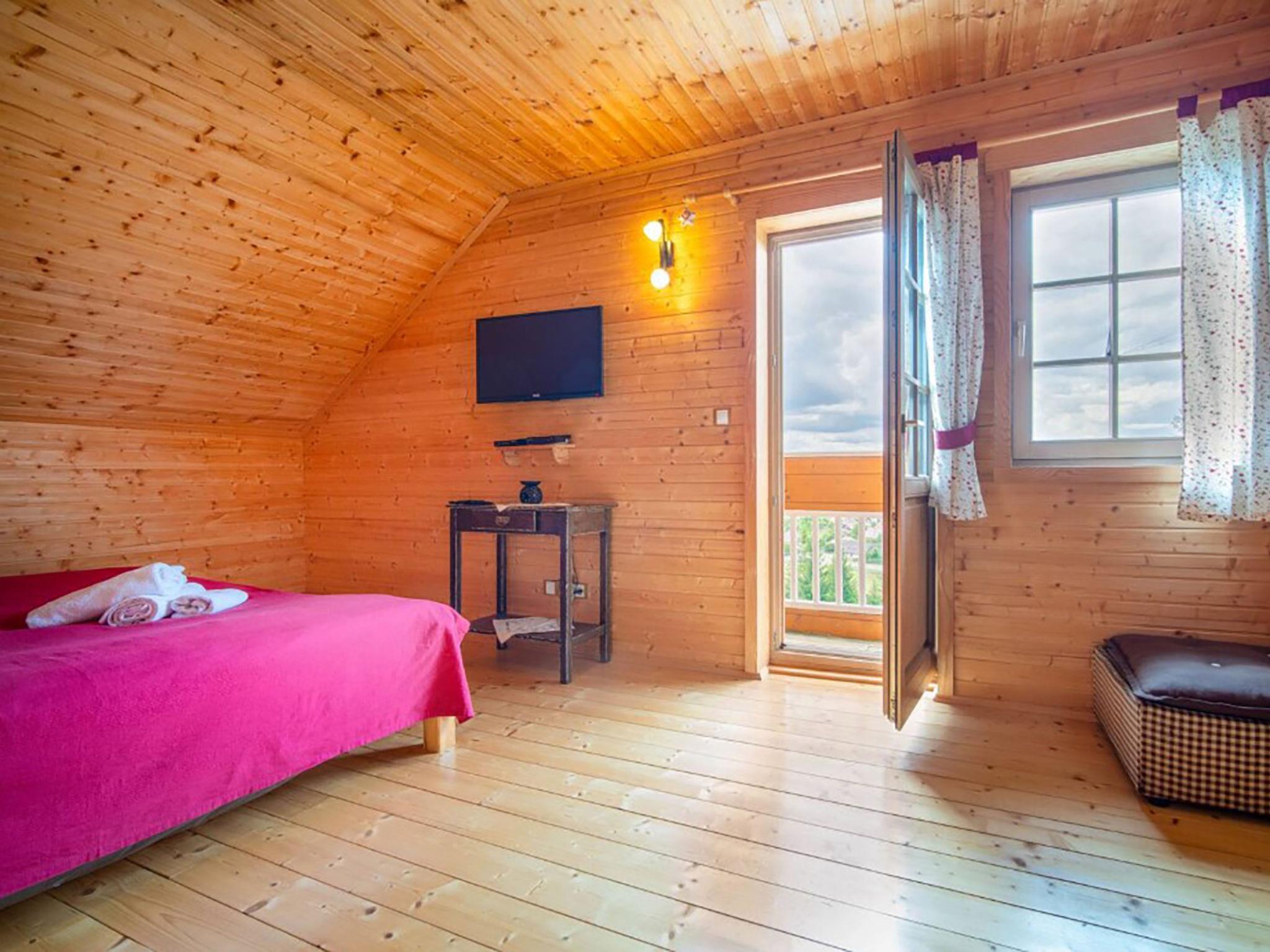 5-room house 197 m2 on 3 levels. Living/dining room with TV (flat screen), wood-burning stove. Exit to the balcony. 1 room with 1 double bed (2 x 90 cm, length 200 cm). Open kitchen (oven, dishwasher, 4 ceramic glass hob hotplates, toaster, kettle, freezer). Shower/WC. On the lower ground floor: (exterior staircase) dining room with open-hearth fireplace. Sep. WC. Top floor: 1 room with sloping ceilings, ceiling height 120 - 230 cm with 1 bed (90 cm, length 200 cm). 1 room with sloping ceilings, ceiling height 120 - 230 cm with 2 beds (90 cm, length 200 cm). 1 room with sloping ceilings, ceiling height 120 - 230 cm with 1 double bed (2 x 90 cm, length 200 cm), satellite TV (flat screen). Exit to the balcony. Shower/WC. Wood heating. Balcony 16 m2, balcony 9 m2. Balcony furniture. View of the valley and the forest. Facilities: baby cot, hair dryer, logs (free). Internet (WiFi, free). Please note: non-smoking house.