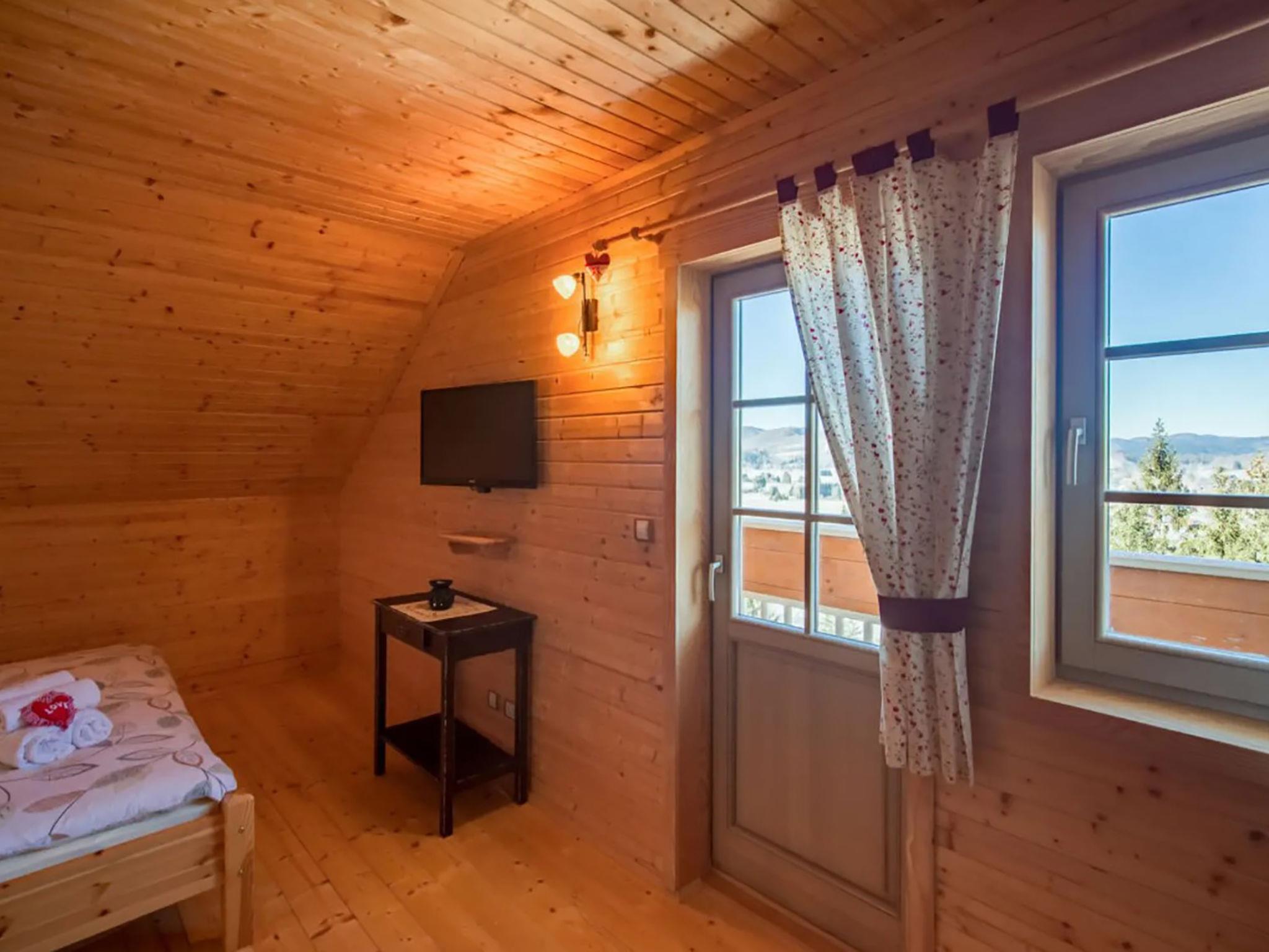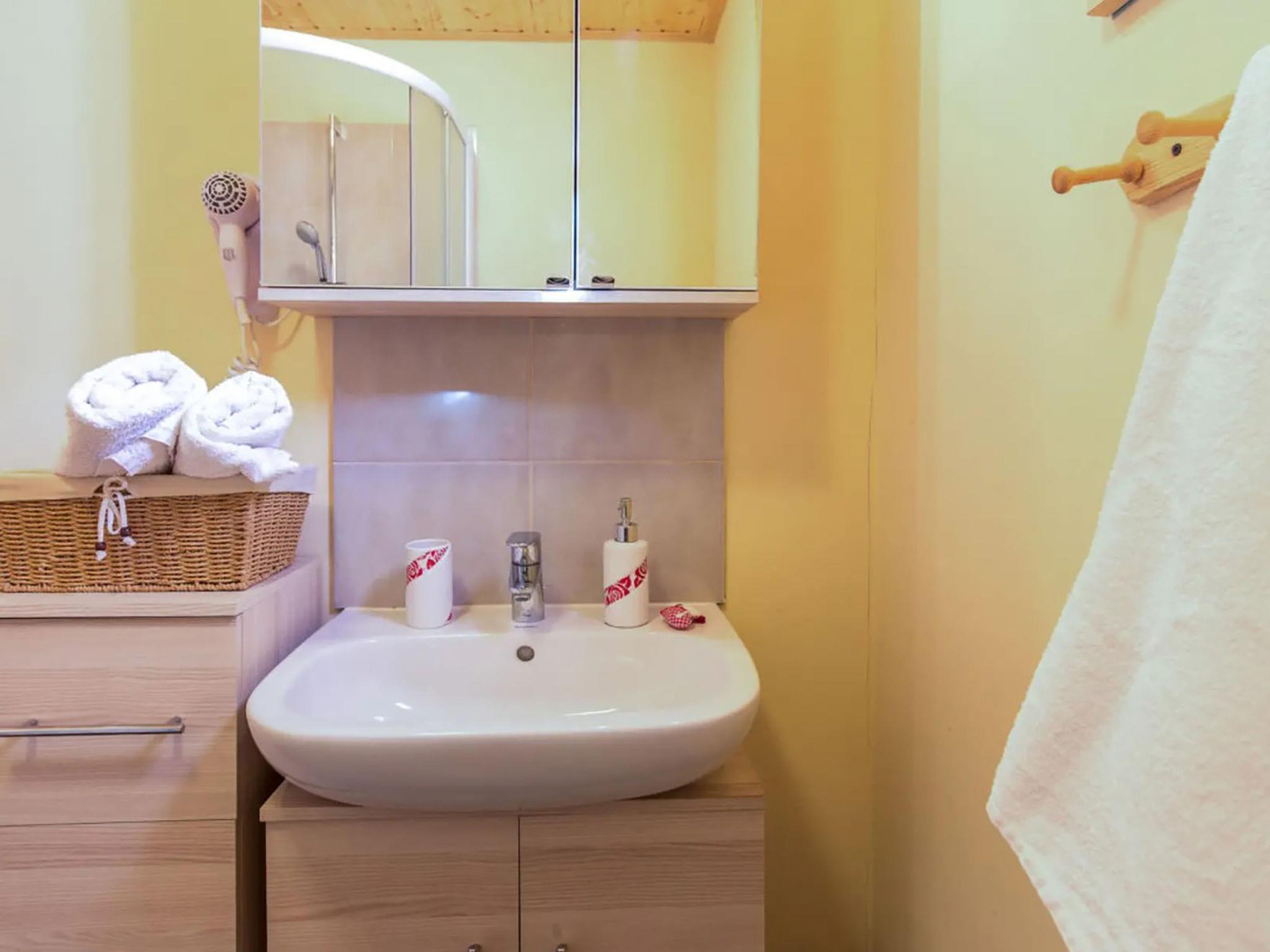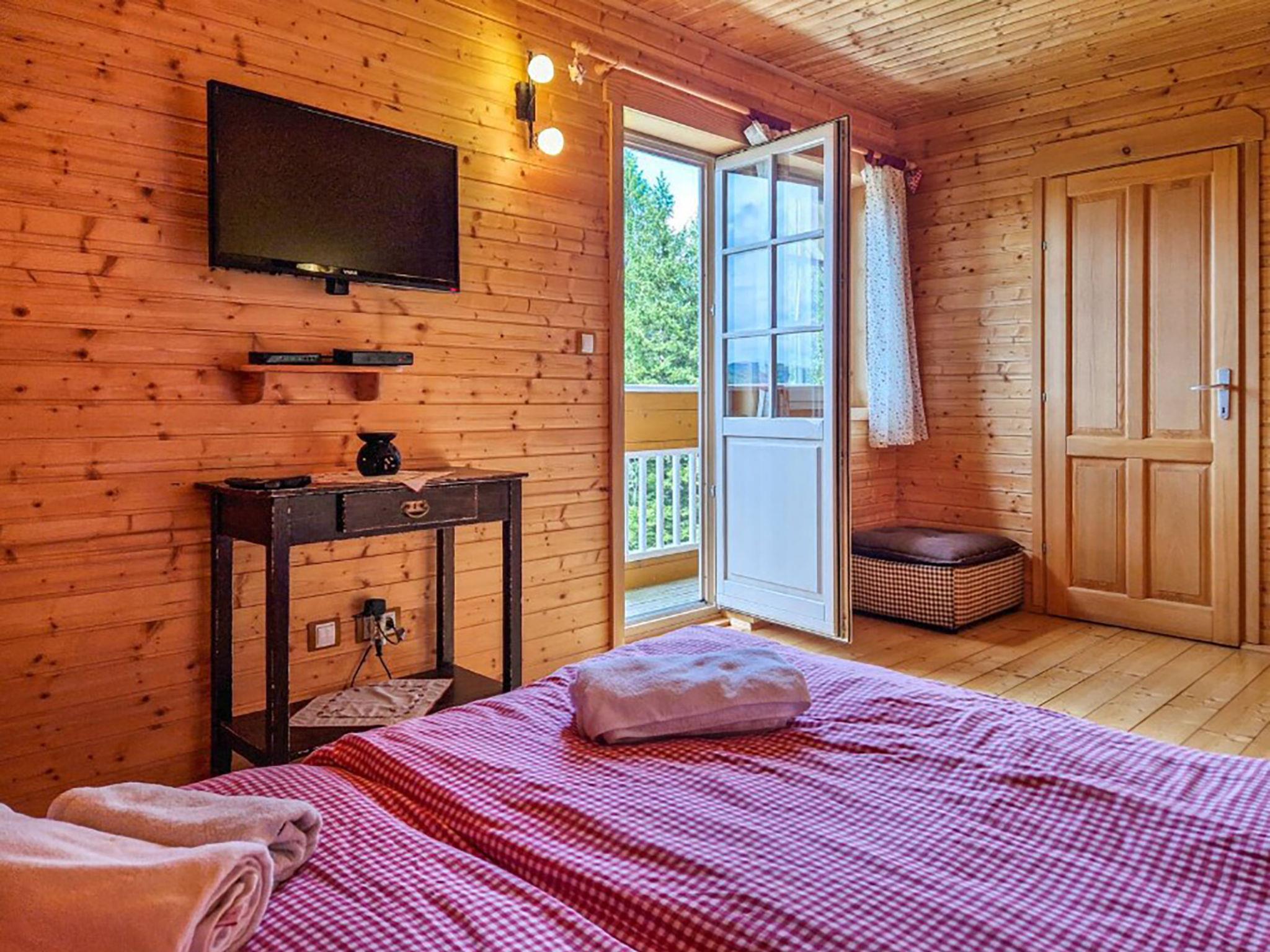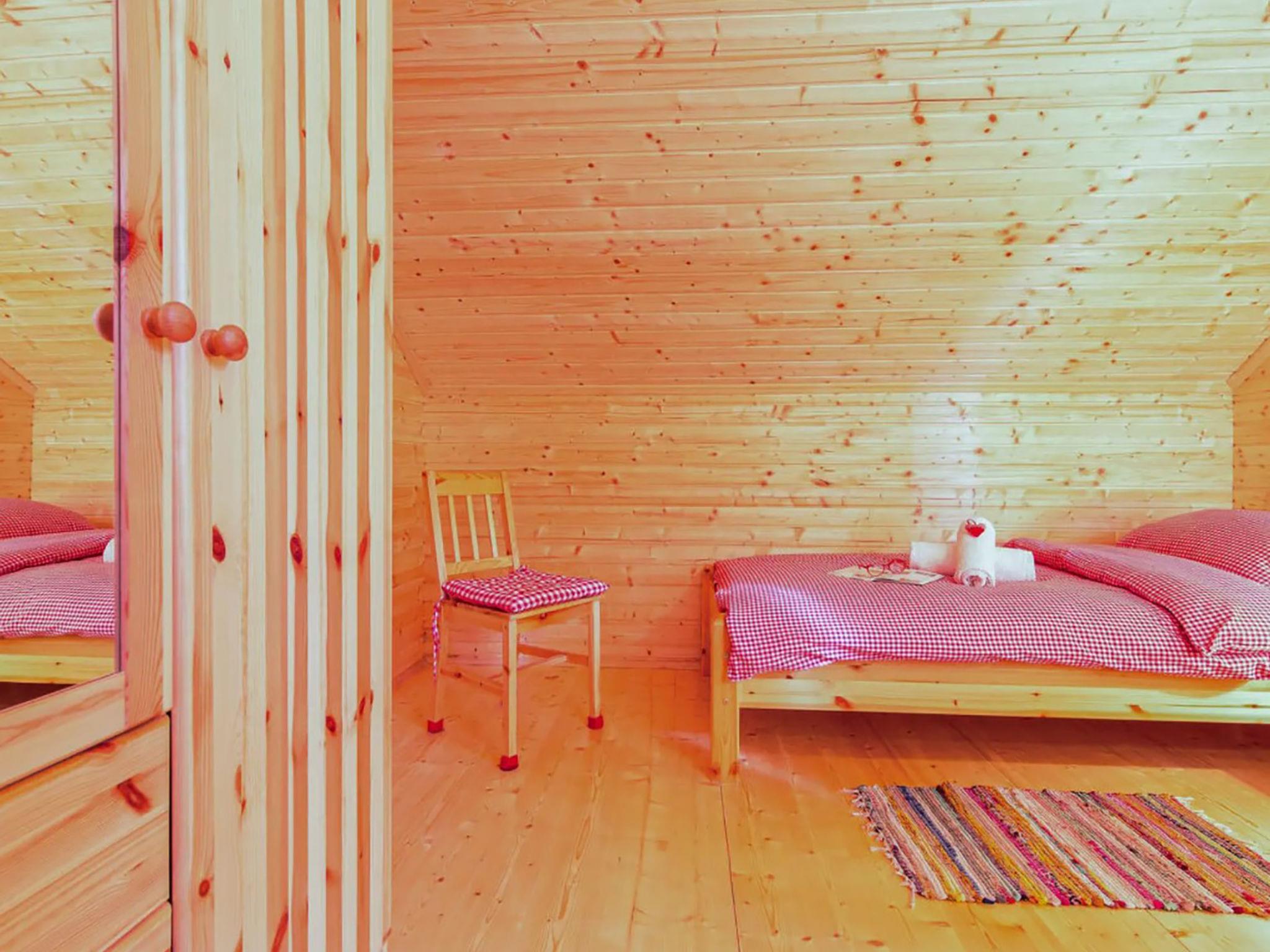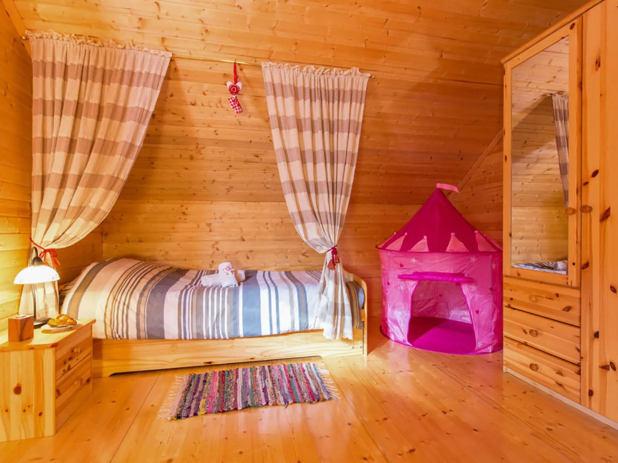 5-room house 197 m2 on 3 levels. Living/dining room with TV (flat screen), wood-burning stove. Exit to the balcony. 1 room with 1 double bed (2 x 90 cm, length 200 cm). Open kitchen (oven, dishwasher, 4 ceramic glass hob hotplates, toaster, kettle, freezer). Shower/WC. On the lower ground floor: (exterior staircase) dining room with open-hearth fireplace. Sep. WC. Top floor: 1 room with sloping ceilings, ceiling height 120 - 230 cm with 1 bed (90 cm, length 200 cm). 1 room with sloping ceilings, ceiling height 120 - 230 cm with 2 beds (90 cm, length 200 cm). 1 room with sloping ceilings, ceiling height 120 - 230 cm with 1 double bed (2 x 90 cm, length 200 cm), satellite TV (flat screen). Exit to the balcony. Shower/WC. Wood heating. Balcony 16 m2, balcony 9 m2. Balcony furniture. View of the valley and the forest. Facilities: baby cot, hair dryer, logs (free). Internet (WiFi, free). Please note: non-smoking house.