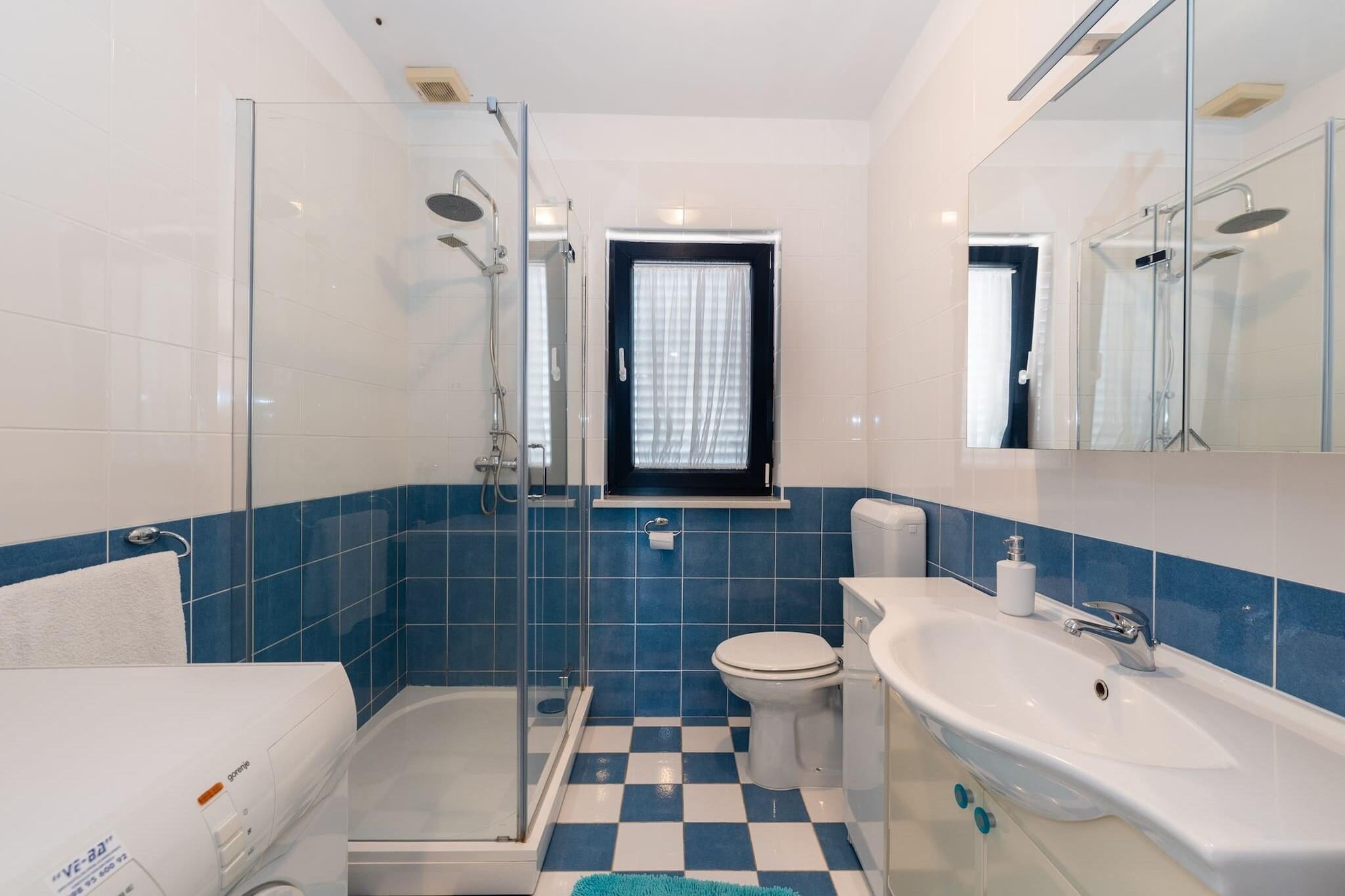 Dette rummelige feriehus i Ravni (Drenje) byder på en fantastisk havudsigt og komfort for op til 9 gæster. Med 5 soveværelser, fire med kingsize- eller queensize-senge og et med en enkelt, er den ideel til familier eller grupper. To fuldt udstyrede køkkener og et grillområde gør spisning let, mens udendørs terrasser og en have giver perfekte steder at slappe af. Blot 700-900 meter fra to smukke strande og 12 km fra Labins historiske centrum er boligen godt placeret for både natur og kultur. Nyd museer, gallerier og panoramaudsigt over Adriaterhavet. Rabac i nærheden byder på vandsport, vandreture og meget mere. Hjemmet har Wi-Fi, aircondition og gratis parkering. Barnesenge og højstole er tilgængelige efter anmodning. I mellem- og lavsæsonen kan gæster leje kun en etage til mindre grupper. Der opkræves et refunderbart depositum ved ankomsten. Uanset om du solbader, udforsker eller nyder en stille aften på terrassen, er dette hjem et perfekt tilflugtssted i Istrien.