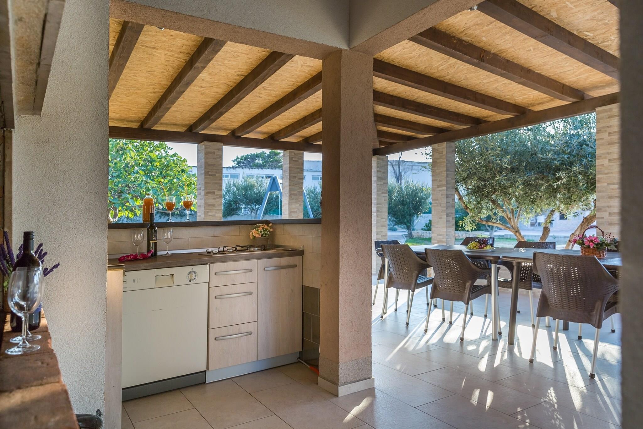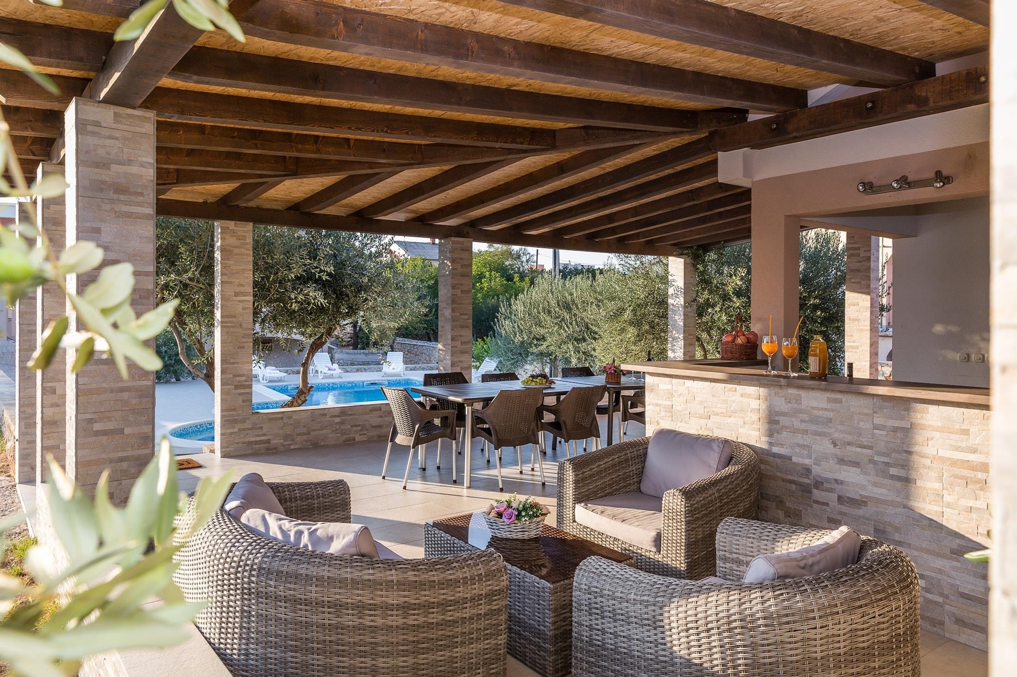 Denne fantastiske villa er beliggende i en malerisk landsby Razanac. Bekvemt placeret kun 400m fra den charmerende stenstrand kan dit sommerhus rumme op til 10 personer. På samme afstand kan du finde en købmand og en traditionel dalmatisk kro med lokal cousine. Huset har en rummelig stue / spisestue, et fuldt udstyret køkken, 3 hyggelige værelser, et moderne badeværelse med ekstra toilet og en dejlig overdækket terrasse. Der er også et dejligt gæstehus med en anden stue med moderne køkken, 2 komfortable soveværelser og et badeværelse. Du kan nyde udendørs området med sin vidunderlige 55m2 private swimmingpool, rummeligt solterrasse godt udstyret med havemøbler og selvfølgelig grillfaciliteter . Vi har også et fuldt udstyret udendørs køkken med åben pejs og charmerende overdækket terrasse. I en 1 km radius kan du vælge mellem sandstrande, sten eller stenstrande. Charmerende blanding af hav, bjerge og typisk middelhavs atmosfære i en lille dalmatisk landsby gør denne villa til et perfekt sted for stressfri ferie. Old town of Zadar er kun 20 km væk, så er indgangen til det vigtigste klatrestation i Kroatien nationalpark Paklenica . Nærhed til Velebit bjergene med sine parker, huler, stier og cykelruter gør denne region attraktiv for dem, der søger en aktiv ferie.