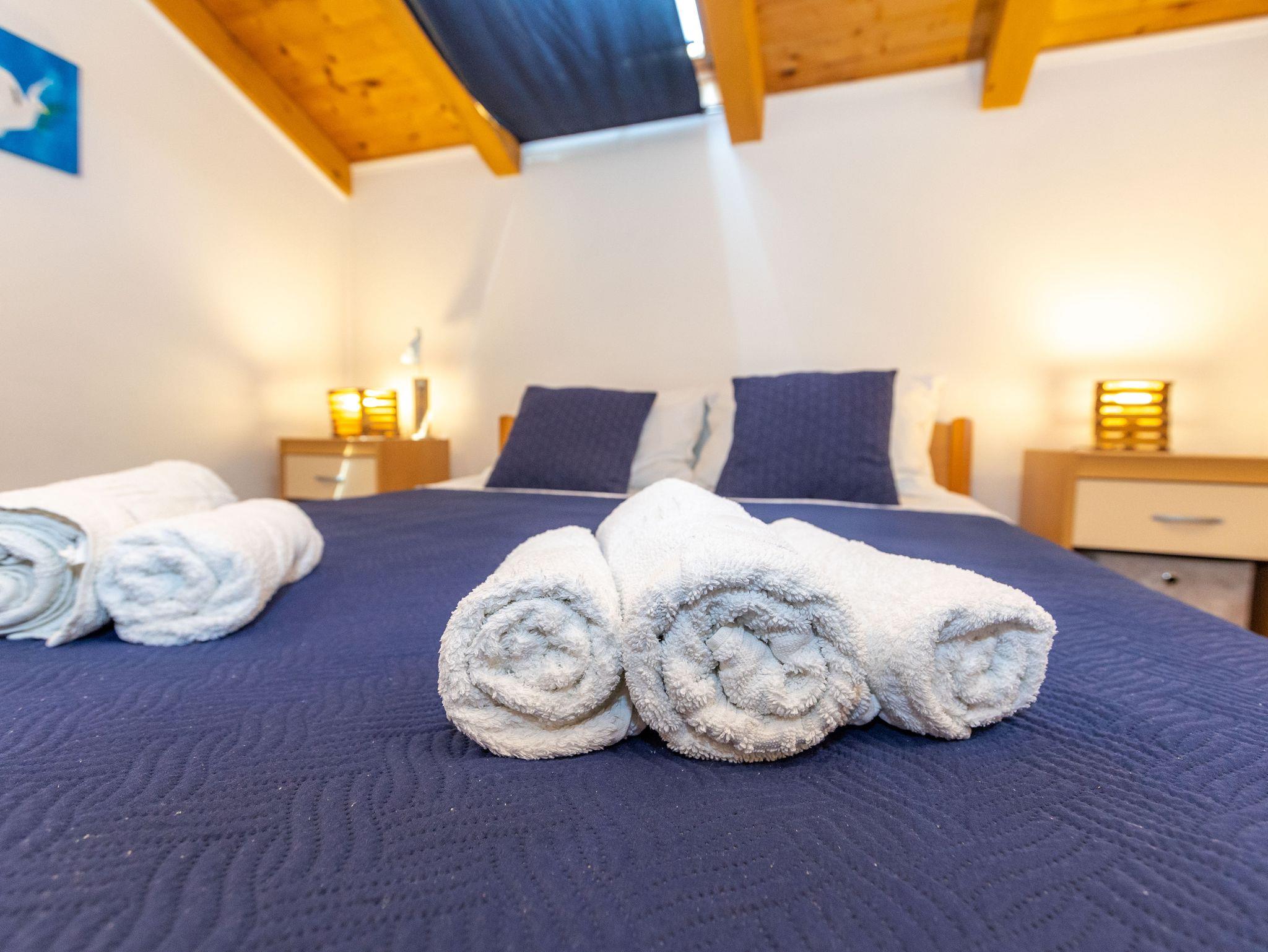 Ferienwohnung bietet Platz für 4 Gäste. Die Betten sind in Schlafzimmern, die es 1 gibt, und in Esszimmer, innerhalb einer Gesamtfläche von 42m2, angeordnet. Die Gäste haben eine eigene Terrasse zur Verfügung, auf der sie in warmen Sommernächten genießen können. Das Apartment bietet Meerblick. Es ist erlaubt, Speisen auf dem Gemeinschafts-Grill vorzubereiten. IM PREIS INBEGRIFFEN: Kurtaxe, Endreinigung, Klimatisierung, Parkplatz, Internet, Kinderbett, Bügeleisen, Bügelbrett, Föhn. UNVERBINDLICHE ZUSÄTZLICHE KOSTEN: Wäschewaschen (5,00 € Waschen), Zusatzbett (8,00 € pro Nacht). Die Verfügbarkeit zusätzlicher Dienstleistungen in Ihrem reservierten Termin und die Preise derselben (falls nicht aufgeführt) müssen im Voraus überprüft werden. Zusätzliche Dienstleistungen die in der Zahlungsaufforderung nicht aufgeführt sind werden direkt beim Vermieter bezahlt, angenommen der Gast nutzt auch diese. Ermäßigung auf den Grundpreis: Gratistag 14=13 (bei einem Aufenthalt von 14 Tagen oder mehr erhalten Sie einen Gratistag für den Aufenthalt bis 31.12.26).