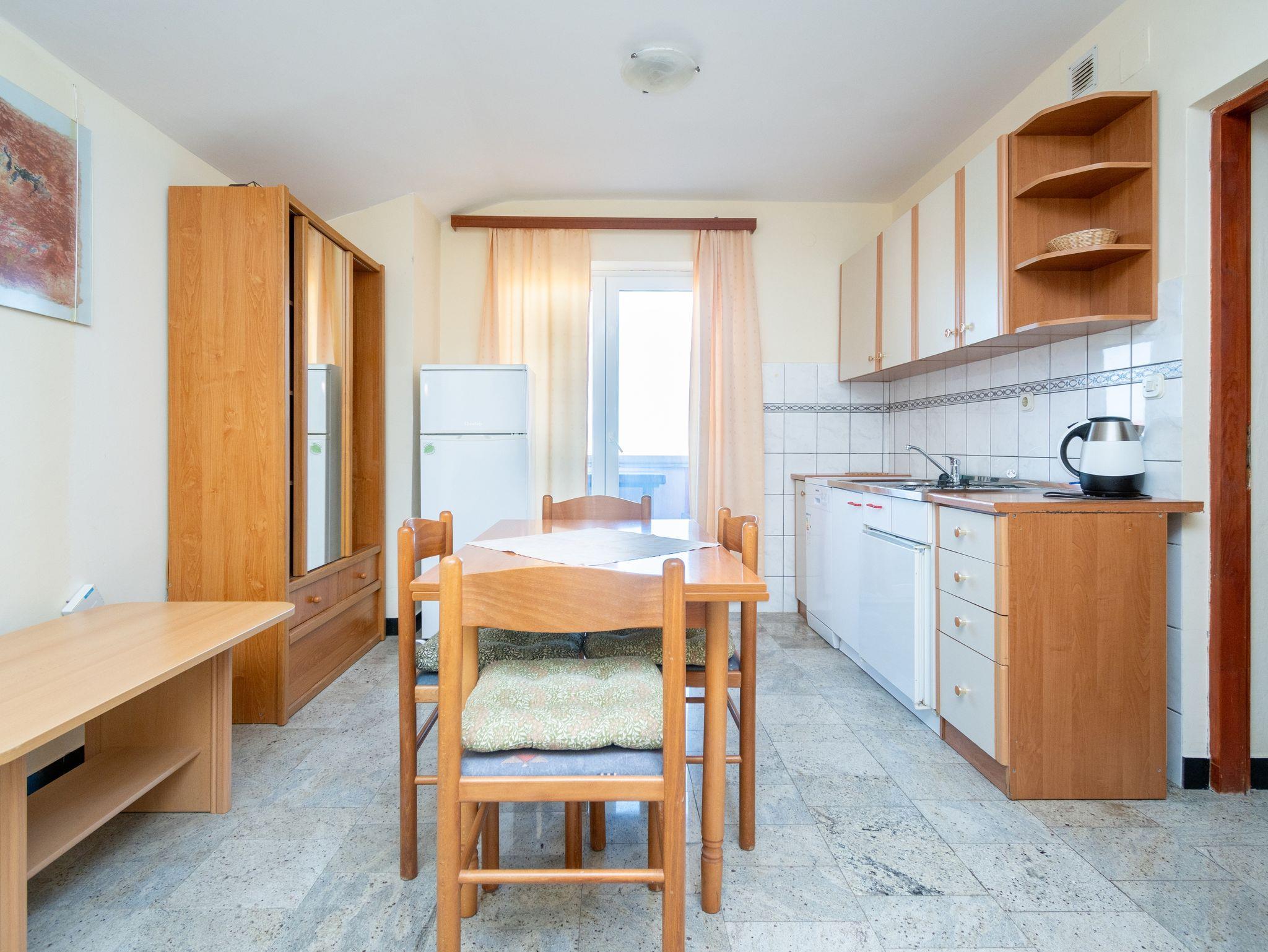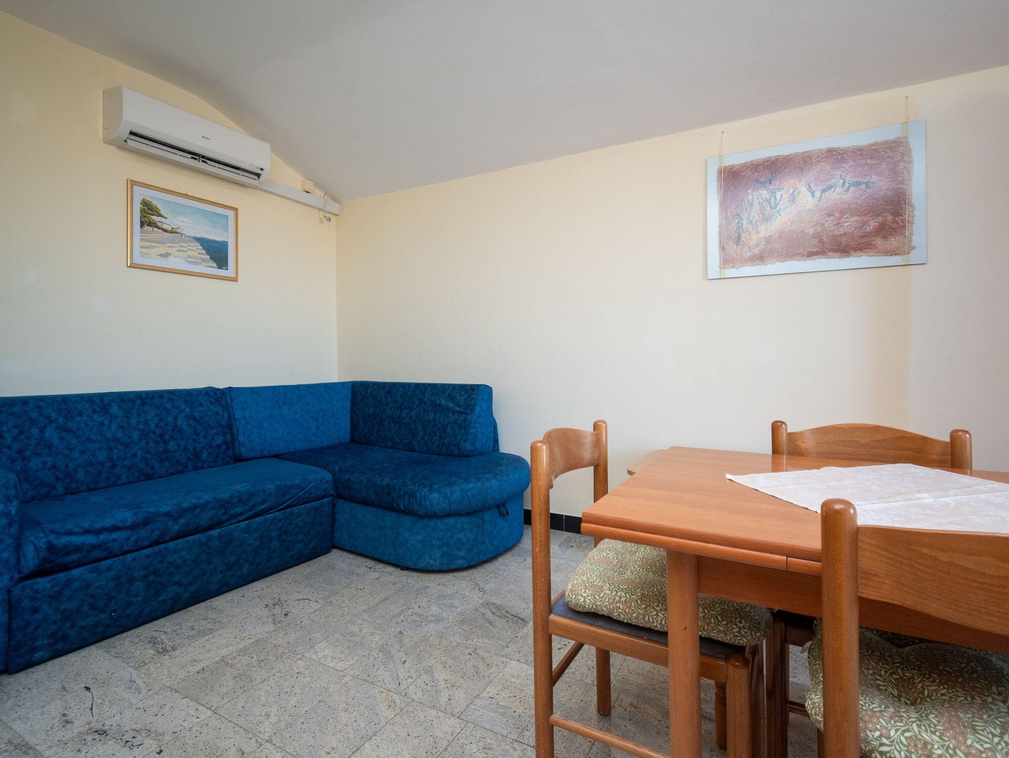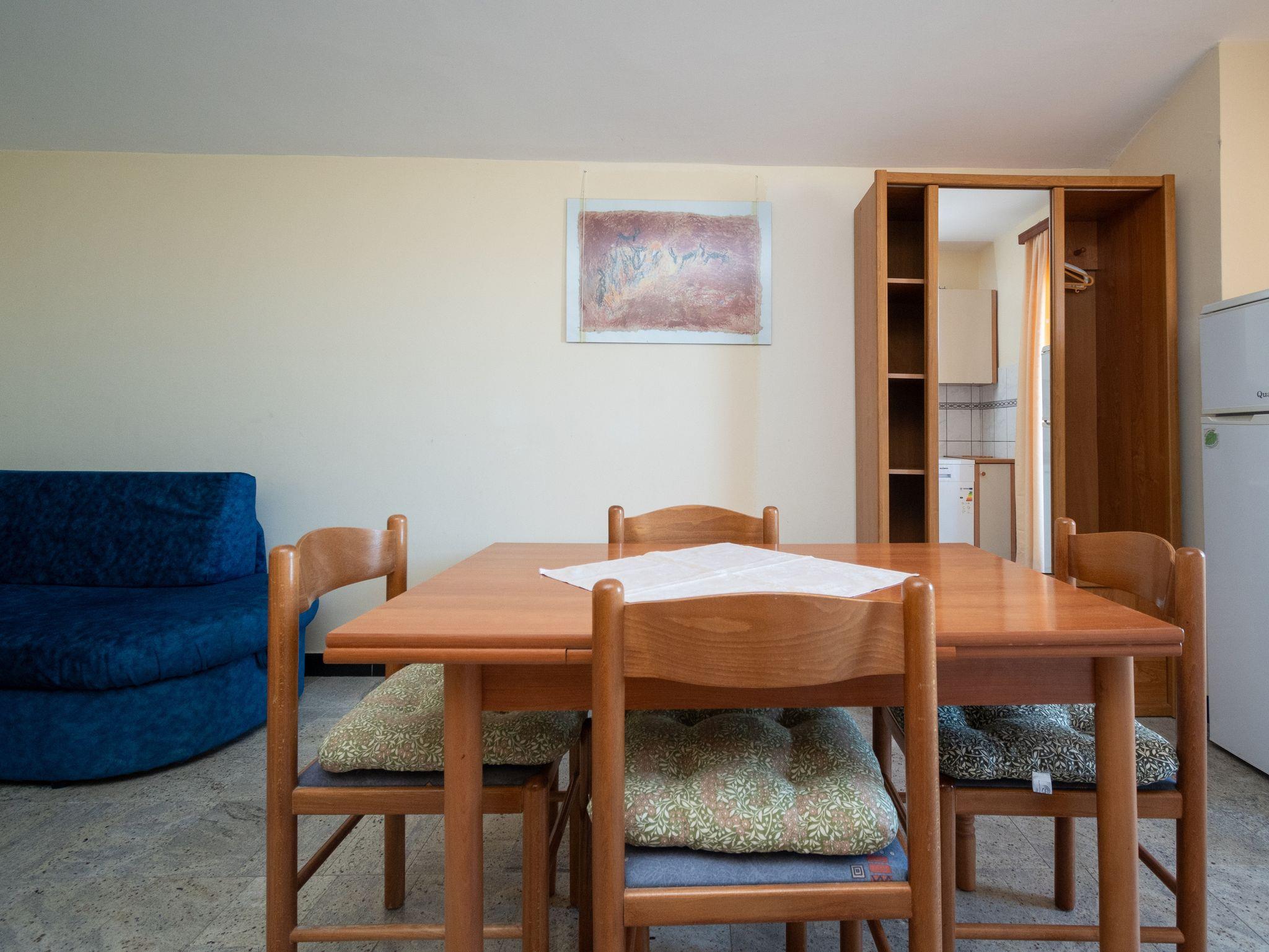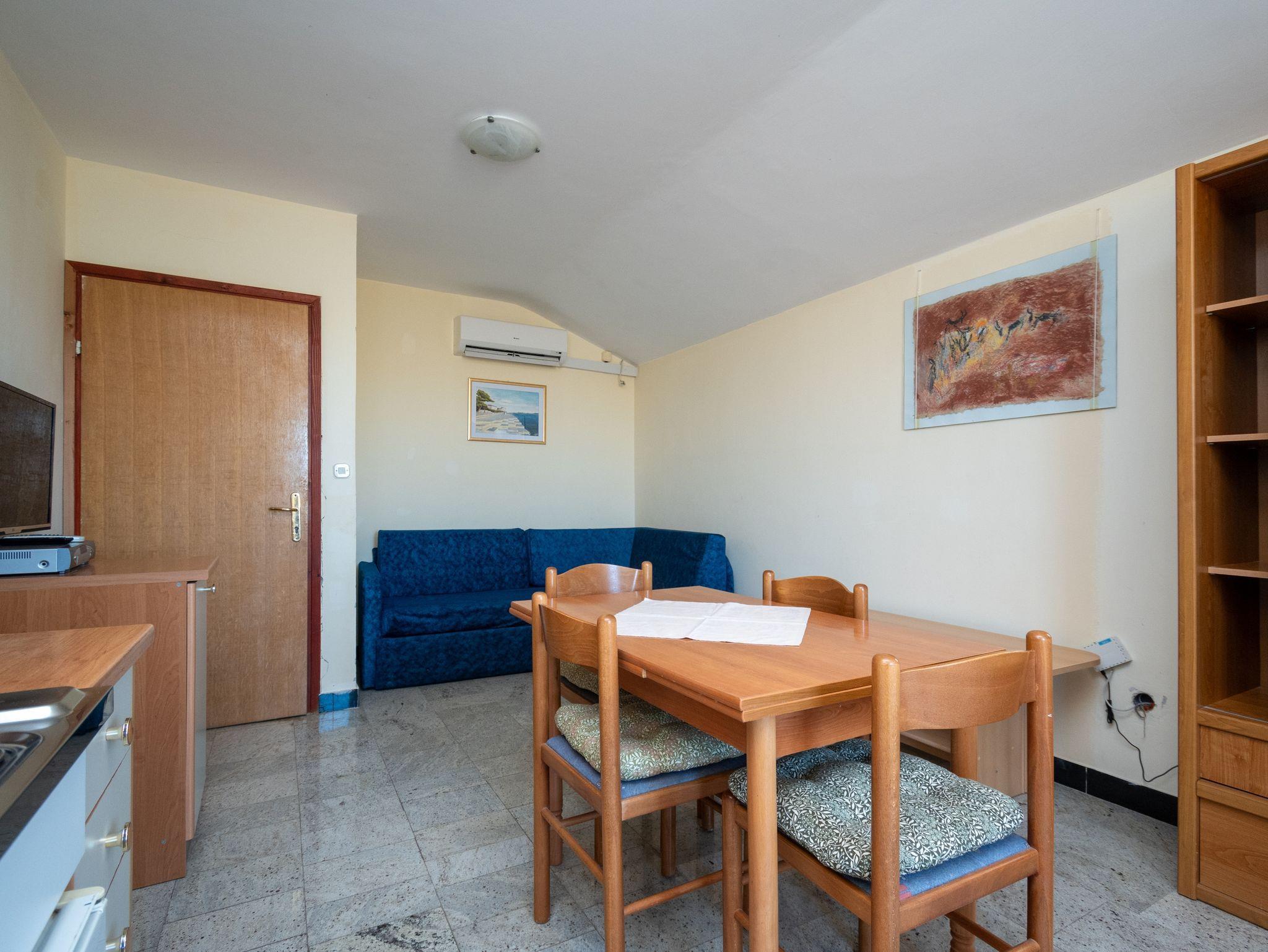 Ferienwohnung bietet Platz für 4 Gäste. Die Betten sind in Schlafzimmern, die es 1 gibt, und in Wohnzimmer, innerhalb einer Gesamtfläche von 31m2, angeordnet. Die Gäste haben eine eigene Terrasse zur Verfügung, auf der sie in warmen Sommernächten genießen können. Das Apartment bietet Meerblick. Es ist erlaubt, Speisen auf dem Gemeinschafts-Grill vorzubereiten. In der Unterkunftseinheit besteht die Möglichkeit des Mitbringens von Haustieren gegen Aufpreis. IM PREIS INBEGRIFFEN: Kurtaxe, Endreinigung, Parkplatz, Internet. VERBINDLICHE ZUSÄTZLICHE KOSTEN: Aufzahlung für Kurzaufenthalte (prozentualer Zuschlag pro Nächtigungsanzahl: 30% - 1, 20% - 2, 10% - 3). UNVERBINDLICHE ZUSÄTZLICHE KOSTEN: Klimatisierung (6,00 € pro Nacht), Haustiere (10,00 € pro Nacht), Zusatzbett (10,00 € pro Nacht). Die Verfügbarkeit zusätzlicher Dienstleistungen in Ihrem reservierten Termin und die Preise derselben (falls nicht aufgeführt) müssen im Voraus überprüft werden. Zusätzliche Dienstleistungen die in der Zahlungsaufforderung nicht aufgeführt sind werden direkt beim Vermieter bezahlt, angenommen der Gast nutzt auch diese. Ermäßigung auf den Grundpreis: Gratistag 14=13 (bei einem Aufenthalt von 14 Tagen oder mehr erhalten Sie einen Gratistag für den Aufenthalt bis 31.12.26).