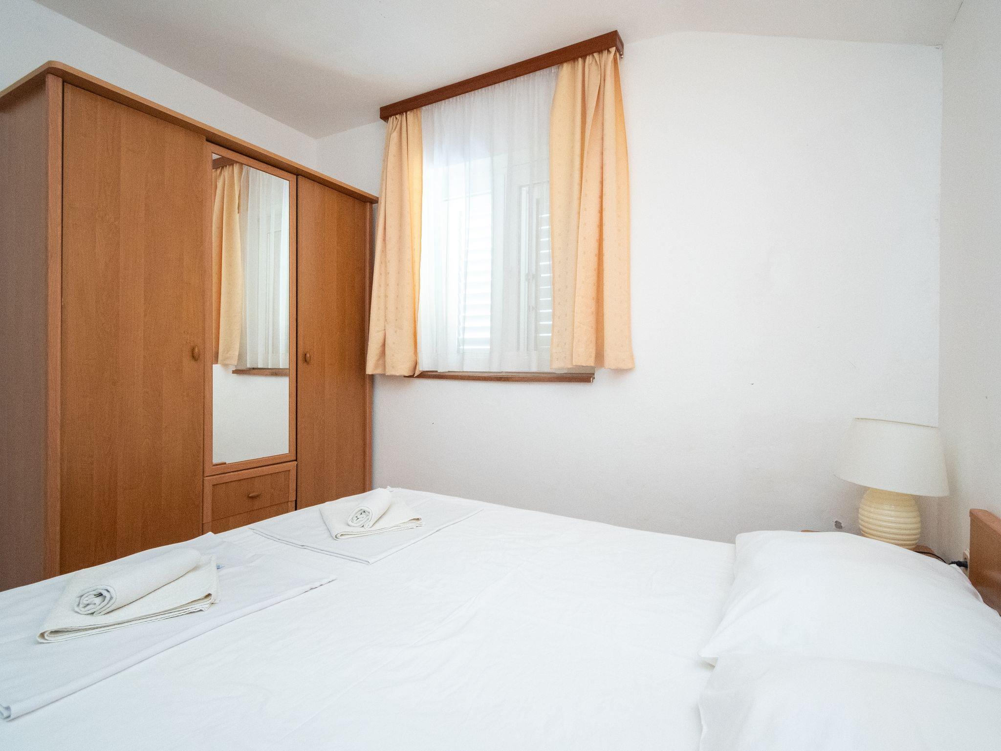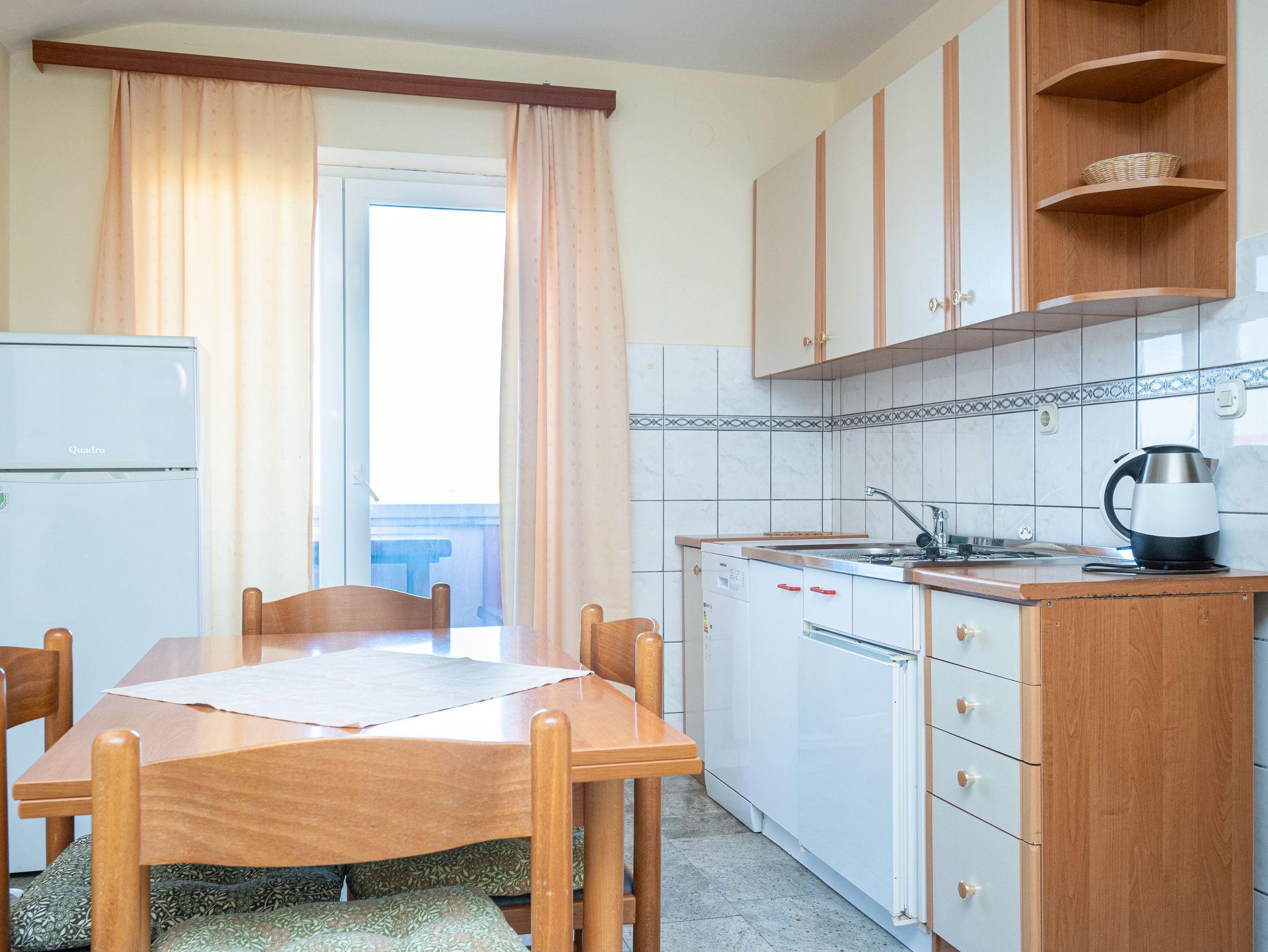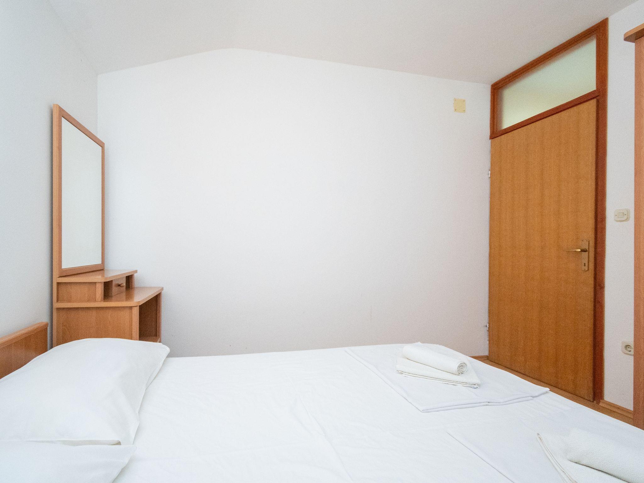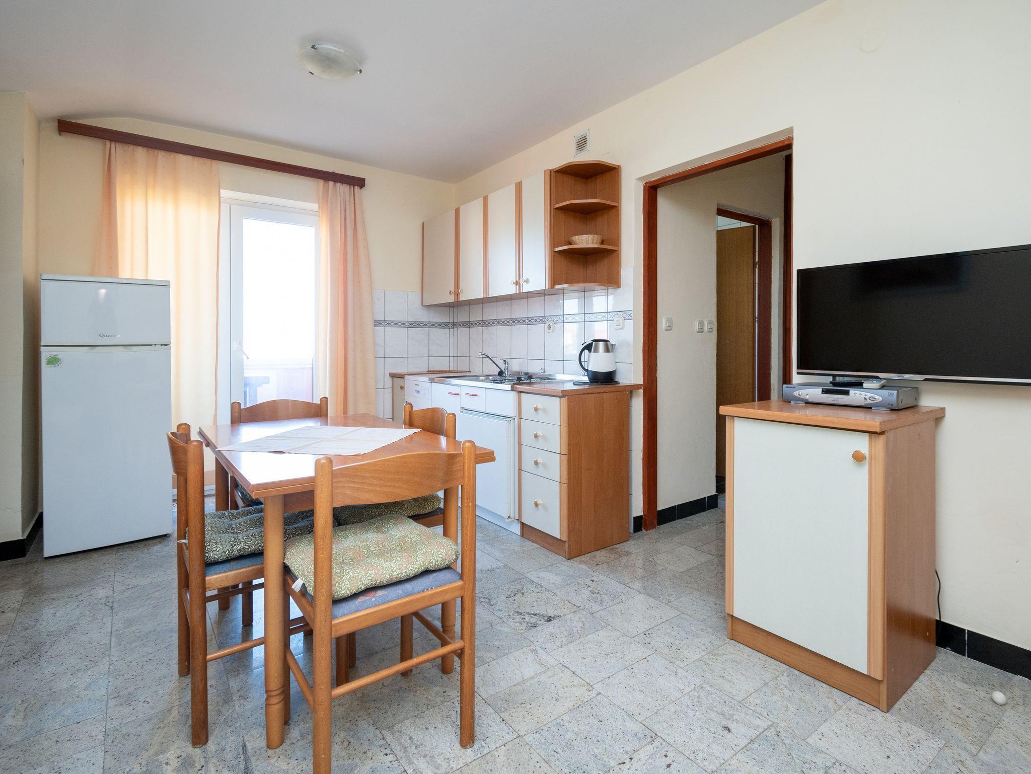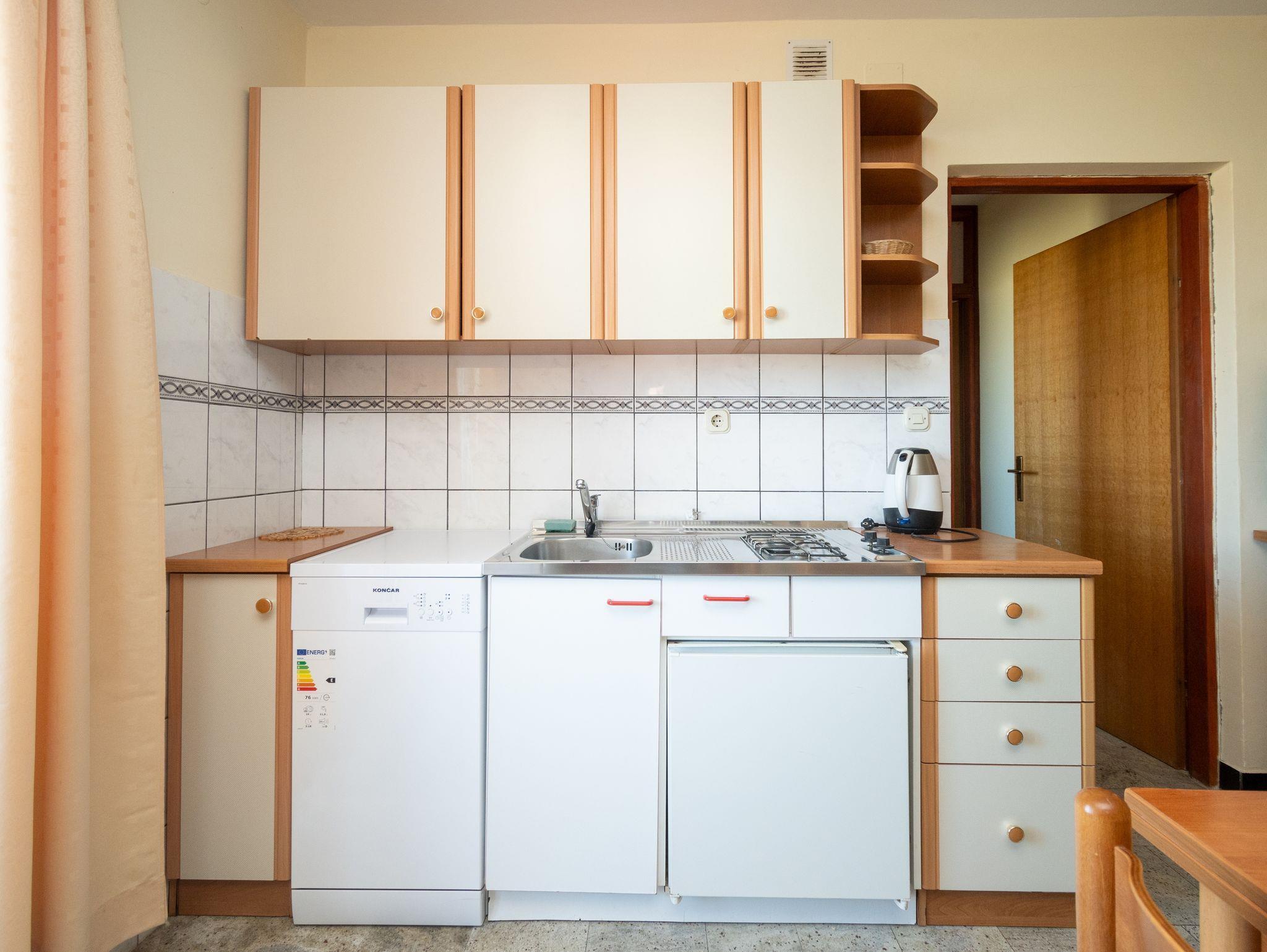 Ferienwohnung bietet Platz für 4 Gäste. Die Betten sind in Schlafzimmern, die es 1 gibt, und in Wohnzimmer, innerhalb einer Gesamtfläche von 31m2, angeordnet. Die Gäste haben eine eigene Terrasse zur Verfügung, auf der sie in warmen Sommernächten genießen können. Das Apartment bietet Meerblick. Es ist erlaubt, Speisen auf dem Gemeinschafts-Grill vorzubereiten. In der Unterkunftseinheit besteht die Möglichkeit des Mitbringens von Haustieren gegen Aufpreis. IM PREIS INBEGRIFFEN: Kurtaxe, Endreinigung, Parkplatz, Internet. VERBINDLICHE ZUSÄTZLICHE KOSTEN: Aufzahlung für Kurzaufenthalte (prozentualer Zuschlag pro Nächtigungsanzahl: 30% - 1, 20% - 2, 10% - 3). UNVERBINDLICHE ZUSÄTZLICHE KOSTEN: Klimatisierung (6,00 € pro Nacht), Haustiere (10,00 € pro Nacht), Zusatzbett (10,00 € pro Nacht). Die Verfügbarkeit zusätzlicher Dienstleistungen in Ihrem reservierten Termin und die Preise derselben (falls nicht aufgeführt) müssen im Voraus überprüft werden. Zusätzliche Dienstleistungen die in der Zahlungsaufforderung nicht aufgeführt sind werden direkt beim Vermieter bezahlt, angenommen der Gast nutzt auch diese. Ermäßigung auf den Grundpreis: Gratistag 14=13 (bei einem Aufenthalt von 14 Tagen oder mehr erhalten Sie einen Gratistag für den Aufenthalt bis 31.12.26).