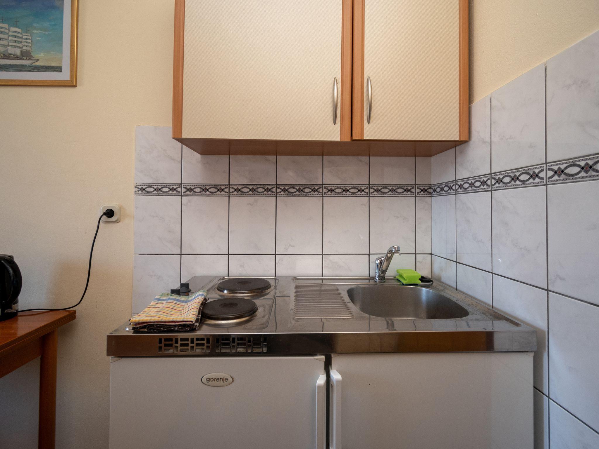 Studio bietet Platz für 2 Gäste. Die Betten sind in Schlafzimmern, die es 1 gibt, innerhalb einer Gesamtfläche von 17m2, angeordnet. Die Gäste haben einen eigenen Balkon zur Verfügung, auf der sie in warmen Sommernächten genießen können. Das Studio-Apartment bietet Meerblick. Es ist erlaubt, Speisen auf dem Gemeinschafts-Grill vorzubereiten. In der Unterkunftseinheit besteht die Möglichkeit des Mitbringens von Haustieren gegen Aufpreis. IM PREIS INBEGRIFFEN: Kurtaxe, Endreinigung, Parkplatz, Internet. VERBINDLICHE ZUSÄTZLICHE KOSTEN: Aufzahlung für Kurzaufenthalte (prozentualer Zuschlag pro Nächtigungsanzahl: 30% - 1, 20% - 2, 10% - 3). UNVERBINDLICHE ZUSÄTZLICHE KOSTEN: Klimatisierung (6,00 € pro Nacht), Haustiere (10,00 € pro Nacht), Zusatzbett (10,00 € pro Nacht). Die Verfügbarkeit zusätzlicher Dienstleistungen in Ihrem reservierten Termin und die Preise derselben (falls nicht aufgeführt) müssen im Voraus überprüft werden. Zusätzliche Dienstleistungen die in der Zahlungsaufforderung nicht aufgeführt sind werden direkt beim Vermieter bezahlt, angenommen der Gast nutzt auch diese. Ermäßigung auf den Grundpreis: Gratistag 14=13 (bei einem Aufenthalt von 14 Tagen oder mehr erhalten Sie einen Gratistag für den Aufenthalt bis 31.12.26).