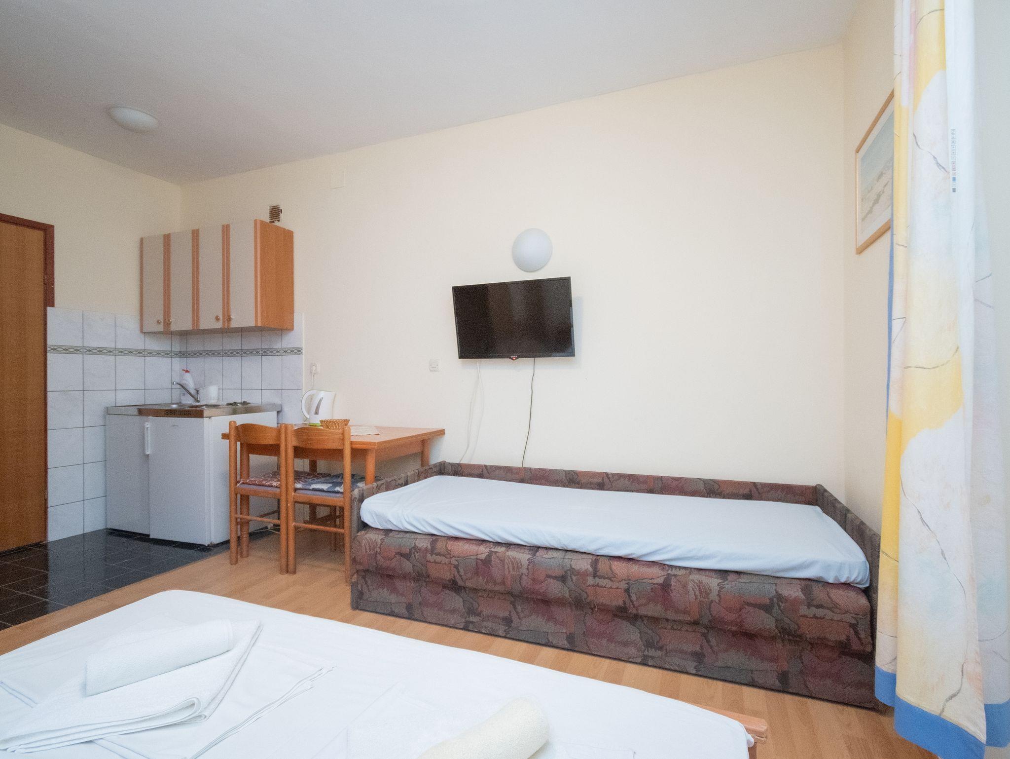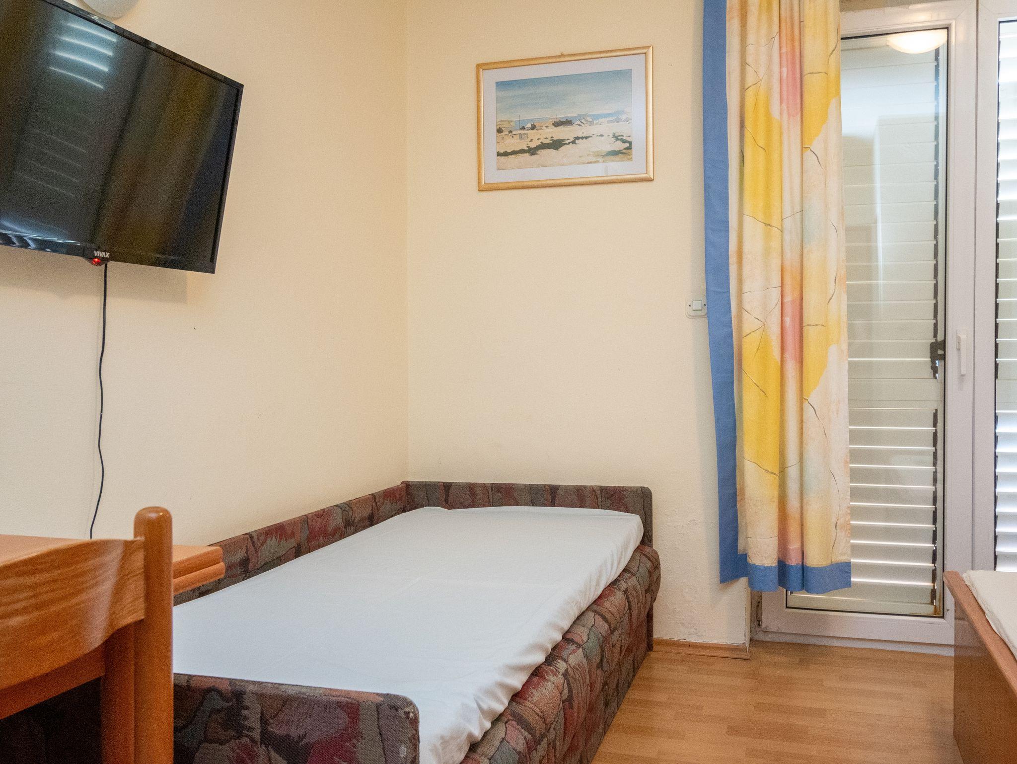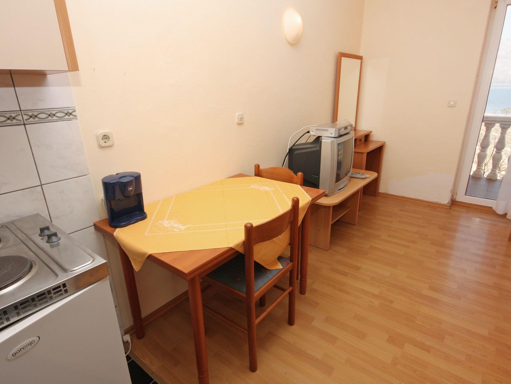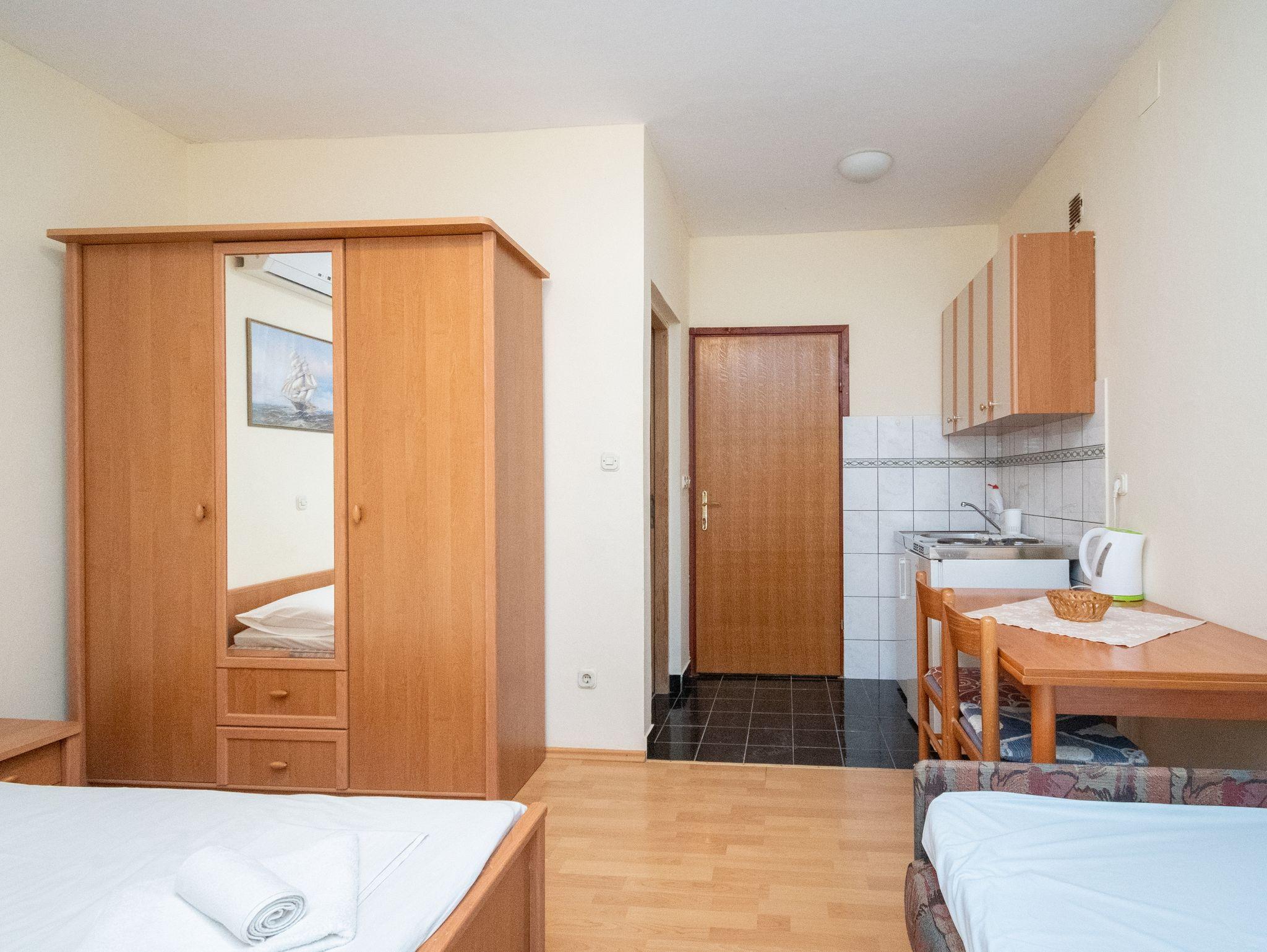 Studio bietet Platz für 2 Gäste. Die Betten sind in Schlafzimmern, die es 1 gibt, innerhalb einer Gesamtfläche von 17m2, angeordnet. Die Gäste haben einen eigenen Balkon zur Verfügung, auf der sie in warmen Sommernächten genießen können. Das Studio-Apartment bietet Meerblick. Es ist erlaubt, Speisen auf dem Gemeinschafts-Grill vorzubereiten. In der Unterkunftseinheit besteht die Möglichkeit des Mitbringens von Haustieren gegen Aufpreis. IM PREIS INBEGRIFFEN: Kurtaxe, Endreinigung, Parkplatz, Internet. VERBINDLICHE ZUSÄTZLICHE KOSTEN: Aufzahlung für Kurzaufenthalte (prozentualer Zuschlag pro Nächtigungsanzahl: 30% - 1, 20% - 2, 10% - 3). UNVERBINDLICHE ZUSÄTZLICHE KOSTEN: Klimatisierung (6,00 € pro Nacht), Haustiere (10,00 € pro Nacht), Zusatzbett (10,00 € pro Nacht). Die Verfügbarkeit zusätzlicher Dienstleistungen in Ihrem reservierten Termin und die Preise derselben (falls nicht aufgeführt) müssen im Voraus überprüft werden. Zusätzliche Dienstleistungen die in der Zahlungsaufforderung nicht aufgeführt sind werden direkt beim Vermieter bezahlt, angenommen der Gast nutzt auch diese. Ermäßigung auf den Grundpreis: Gratistag 14=13 (bei einem Aufenthalt von 14 Tagen oder mehr erhalten Sie einen Gratistag für den Aufenthalt bis 31.12.26).