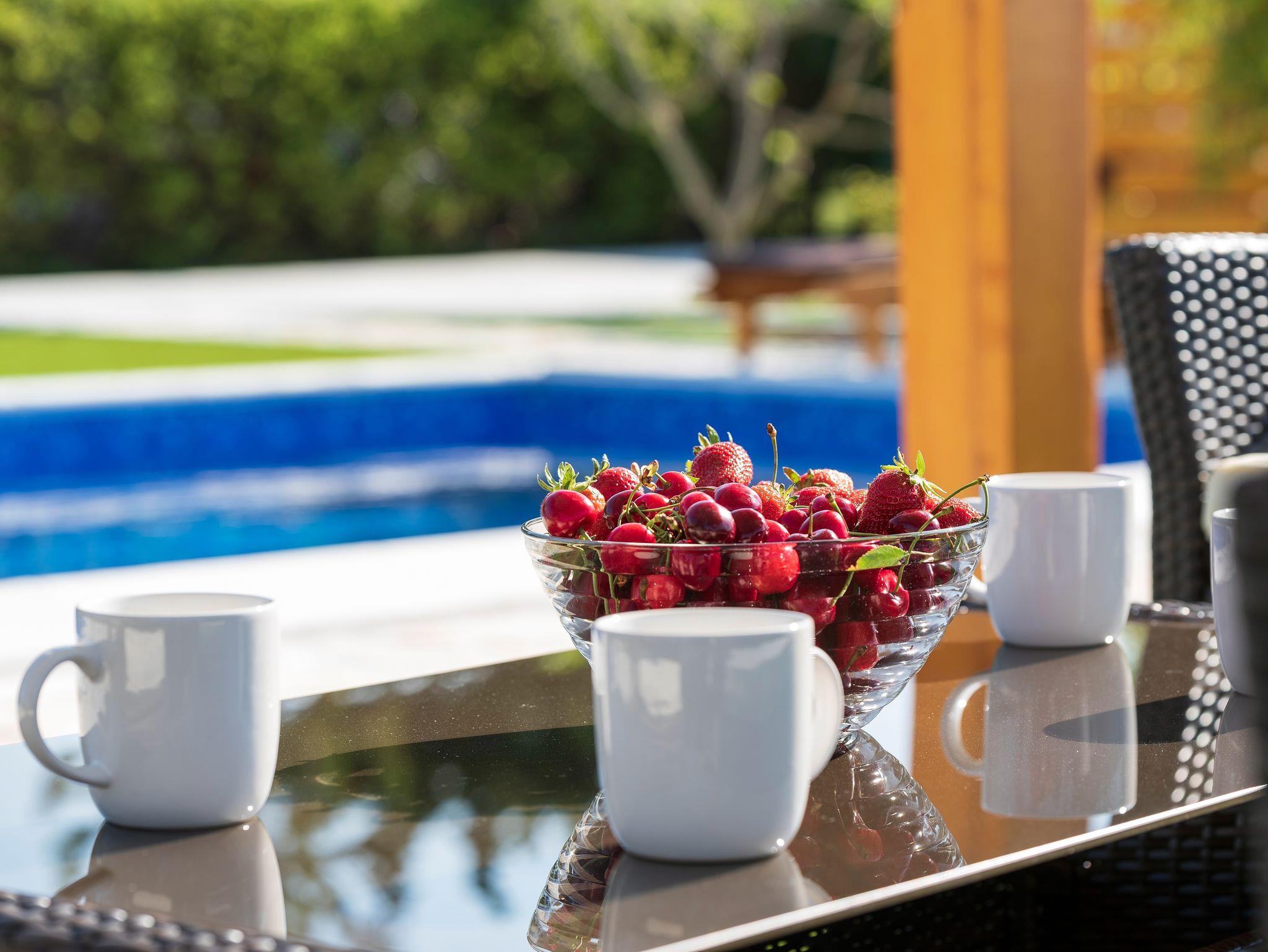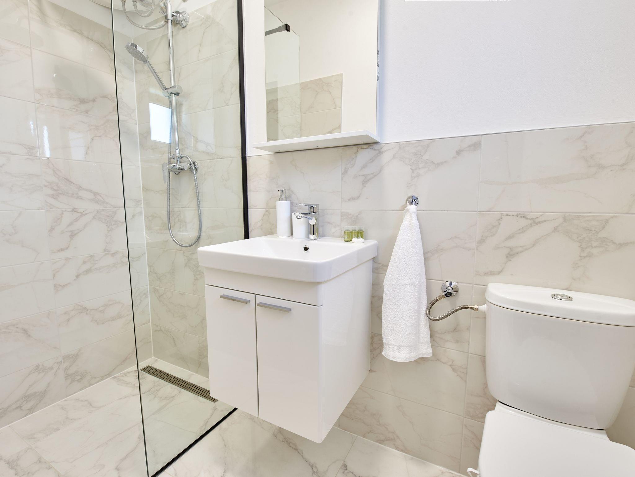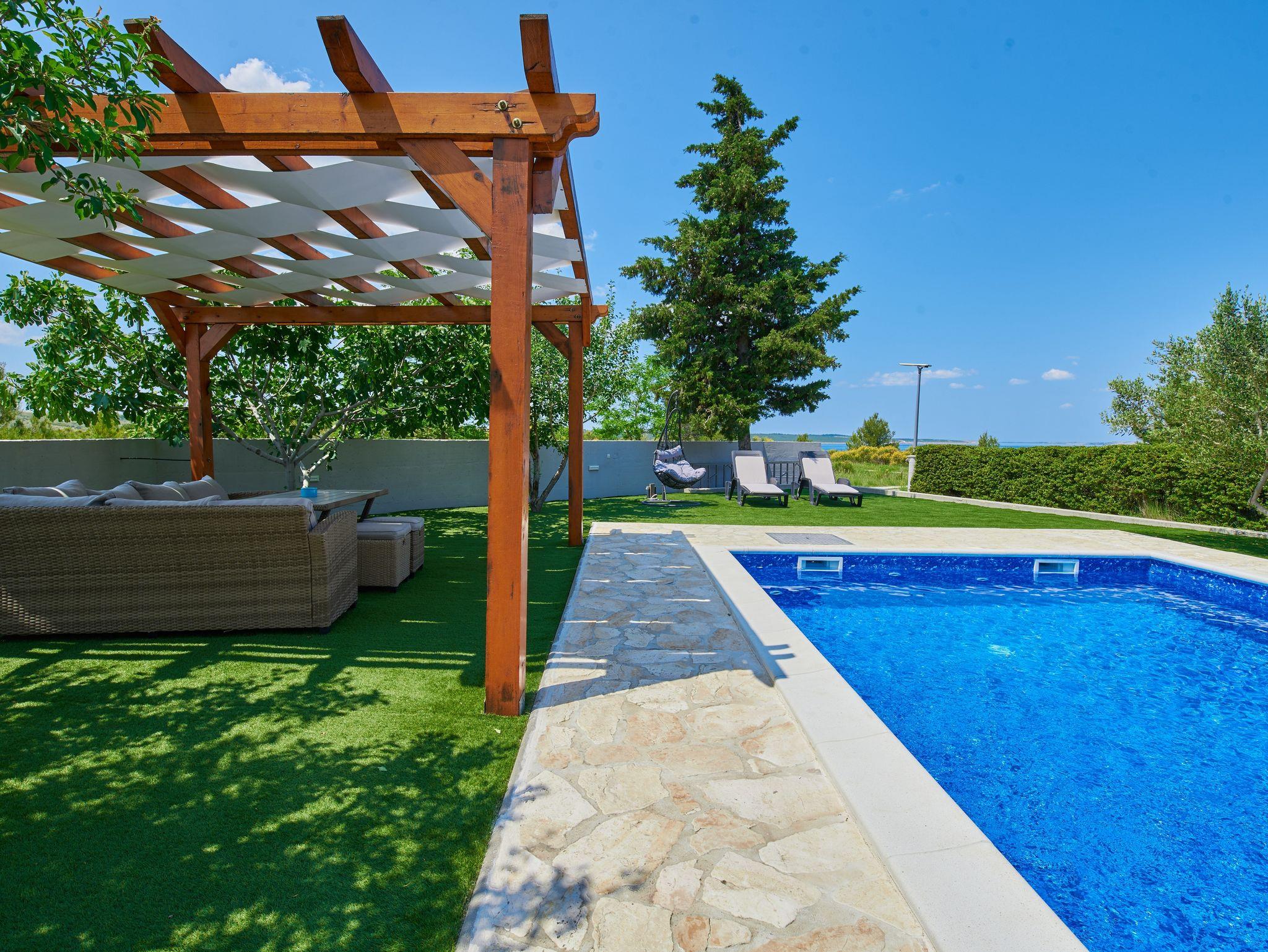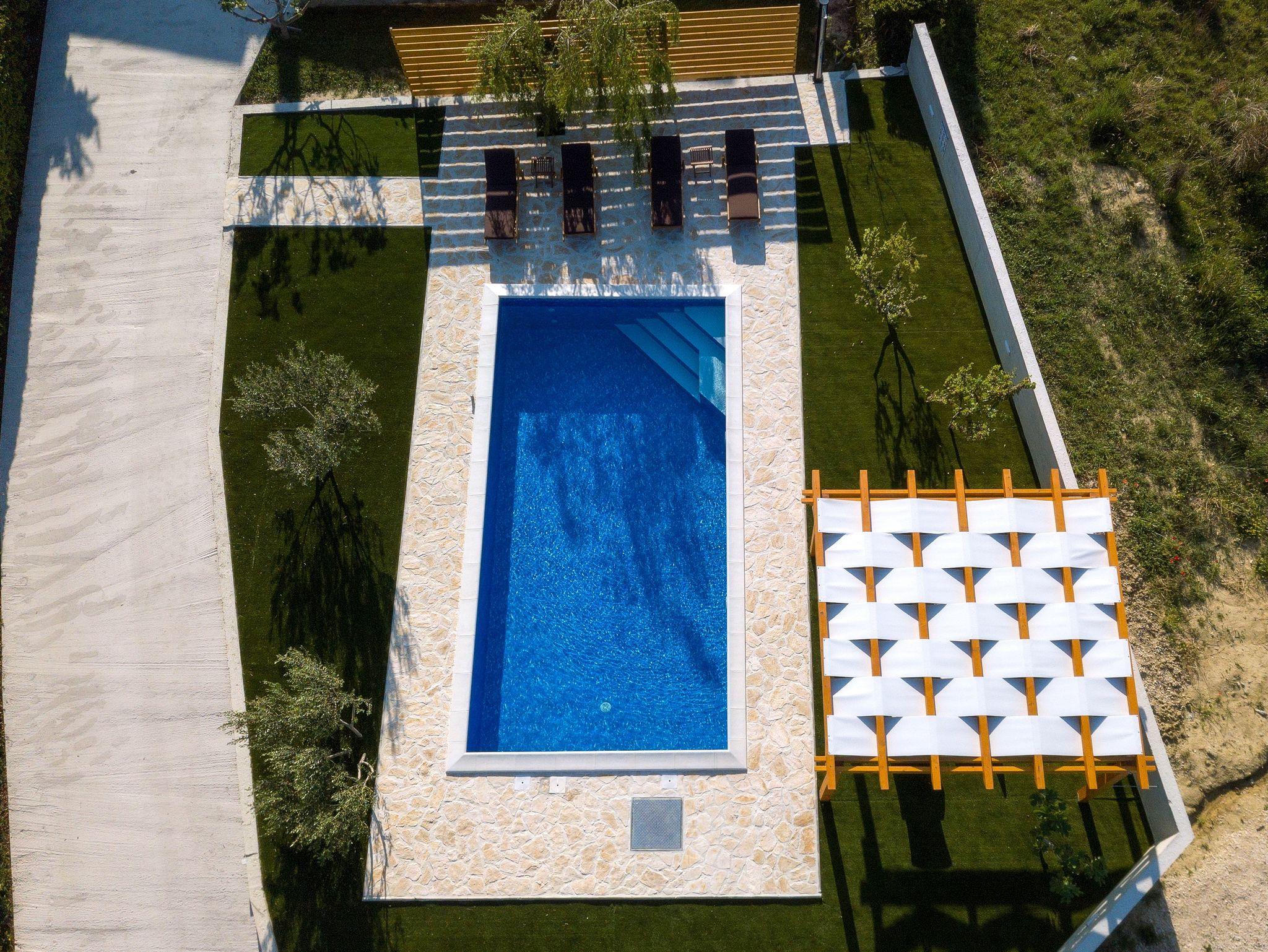 Ferienwohnung bietet Platz für 6 Gäste. Die Betten sind in Schlafzimmern, die es 3 gibt, innerhalb einer Gesamtfläche von 77m2, angeordnet. Die Gäste haben eine eigene Terrasse zur Verfügung, auf der sie in warmen Sommernächten genießen können. Das Apartment bietet Meerblick. Es ist erlaubt, Speisen auf dem Gemeinschafts-Grill vorzubereiten. Während ihres Aufenthalts können sich Gäste im privaten Schwimmbad entspannen. IM PREIS INBEGRIFFEN: Kurtaxe, Endreinigung, Klimatisierung, Pool, Parkplatz, Internet, Kinderbett, Bügeleisen, Bügelbrett, Föhn. VERBINDLICHE ZUSÄTZLICHE KOSTEN: Aufzahlung für Kurzaufenthalte (prozentualer Zuschlag pro Nächtigungsanzahl: 30% - 1, 20% - 2, 10% - 3). Die Verfügbarkeit zusätzlicher Dienstleistungen in Ihrem reservierten Termin und die Preise derselben (falls nicht aufgeführt) müssen im Voraus überprüft werden. Zusätzliche Dienstleistungen die in der Zahlungsaufforderung nicht aufgeführt sind werden direkt beim Vermieter bezahlt, angenommen der Gast nutzt auch diese.