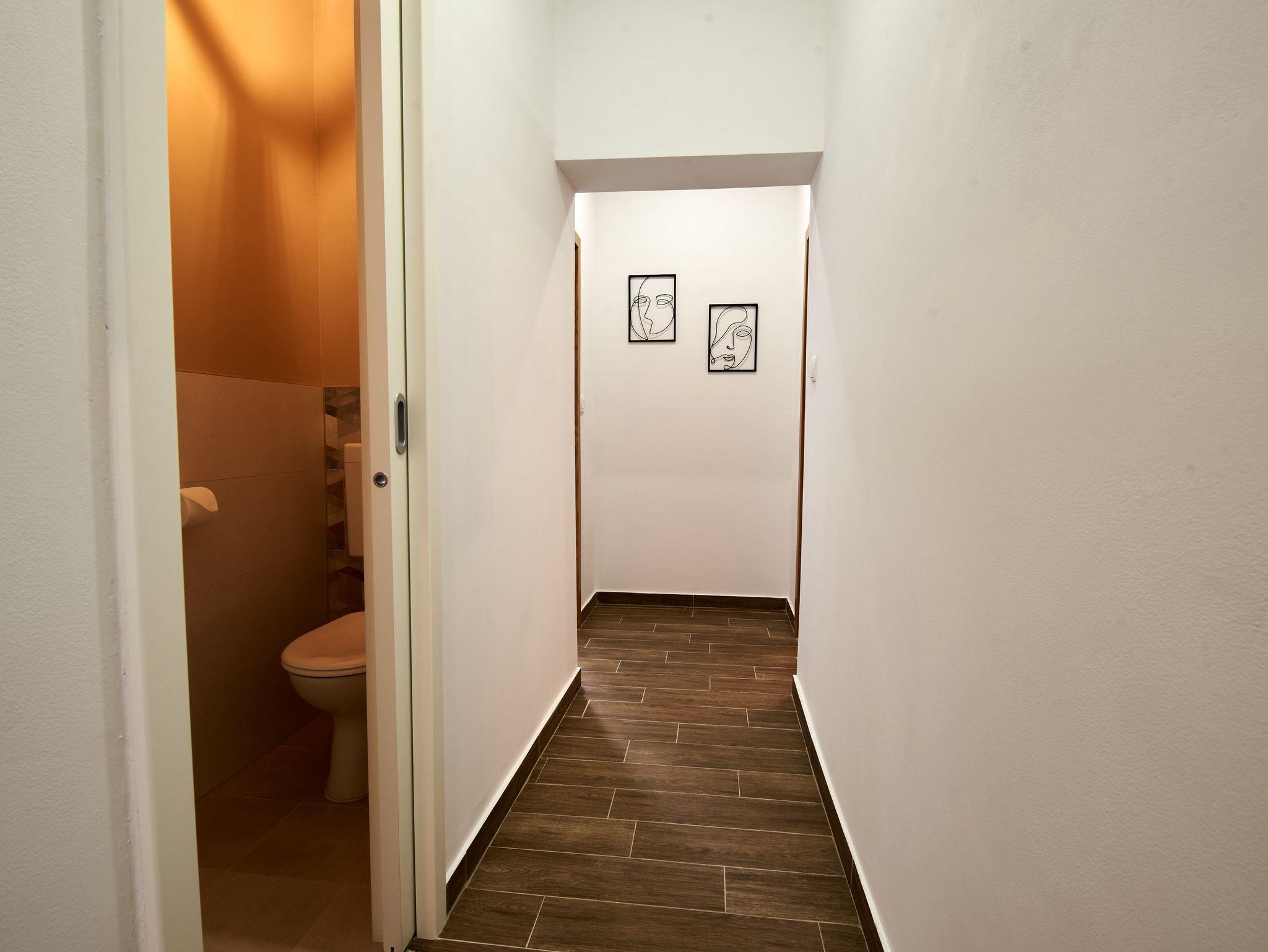 Hof (300m2, Kinderbereich, Sitzbereich), Parkplatz (Anzahl der Parkplätze: 3, Entfernung vom Objekt: im Hof), Grill: gemeinsam, WiFi Internet, Föhn, Bügeleisen, Bügelbrett, Kinderbett