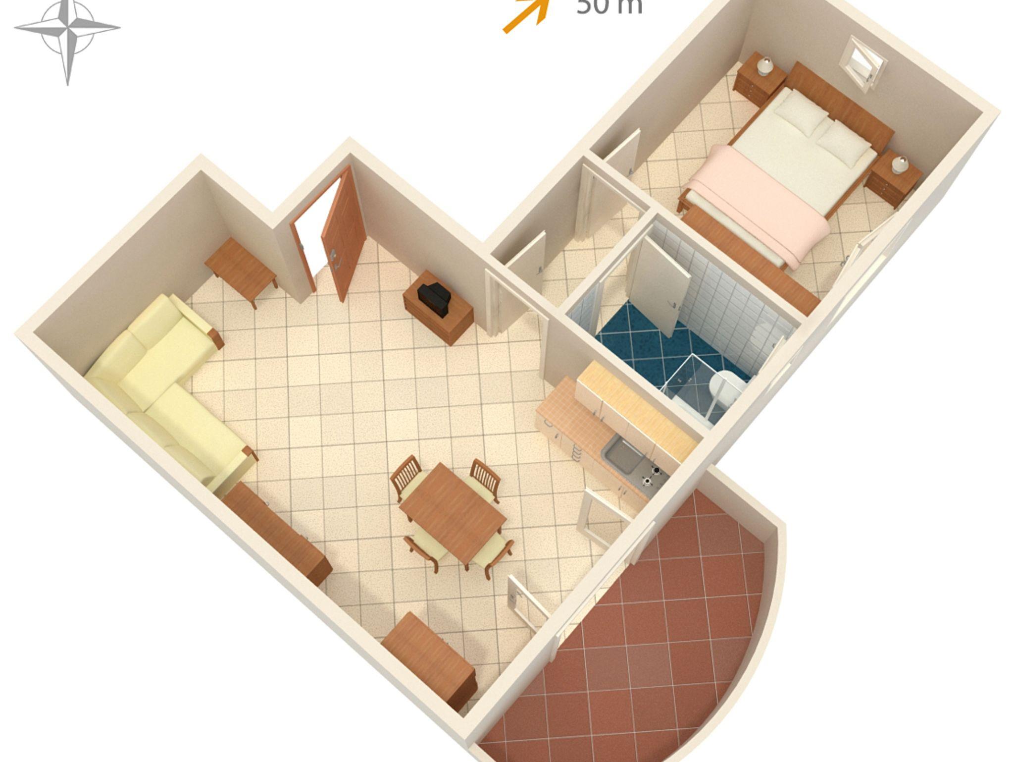 Ferienwohnung bietet Platz für 4 Gäste. Die Betten sind in Schlafzimmern, die es 1 gibt, und in Wohnzimmer, innerhalb einer Gesamtfläche von 31m2, angeordnet. Die Gäste haben eine eigene Terrasse zur Verfügung, auf der sie in warmen Sommernächten genießen können. Das Apartment bietet Meerblick. Es ist erlaubt, Speisen auf dem Gemeinschafts-Grill vorzubereiten. In der Unterkunftseinheit besteht die Möglichkeit des Mitbringens von Haustieren gegen Aufpreis. IM PREIS INBEGRIFFEN: Kurtaxe, Endreinigung, Parkplatz, Internet. VERBINDLICHE ZUSÄTZLICHE KOSTEN: Aufzahlung für Kurzaufenthalte (prozentualer Zuschlag pro Nächtigungsanzahl: 30% - 1, 20% - 2, 10% - 3). UNVERBINDLICHE ZUSÄTZLICHE KOSTEN: Klimatisierung (6,00 € pro Nacht), Haustiere (10,00 € pro Nacht), Zusatzbett (10,00 € pro Nacht). Die Verfügbarkeit zusätzlicher Dienstleistungen in Ihrem reservierten Termin und die Preise derselben (falls nicht aufgeführt) müssen im Voraus überprüft werden. Zusätzliche Dienstleistungen die in der Zahlungsaufforderung nicht aufgeführt sind werden direkt beim Vermieter bezahlt, angenommen der Gast nutzt auch diese. Ermäßigung auf den Grundpreis: Gratistag 14=13 (bei einem Aufenthalt von 14 Tagen oder mehr erhalten Sie einen Gratistag für den Aufenthalt bis 31.12.26).