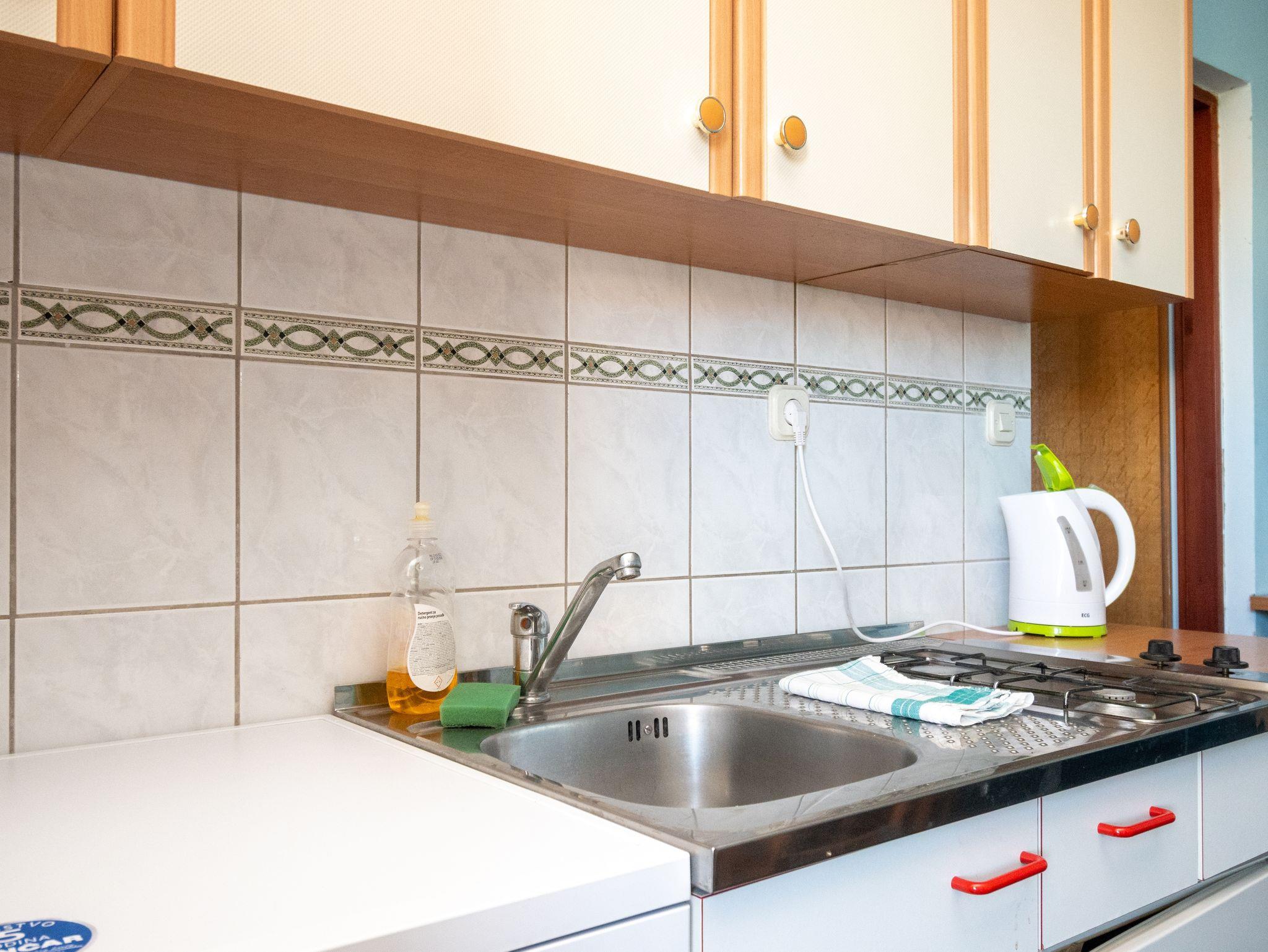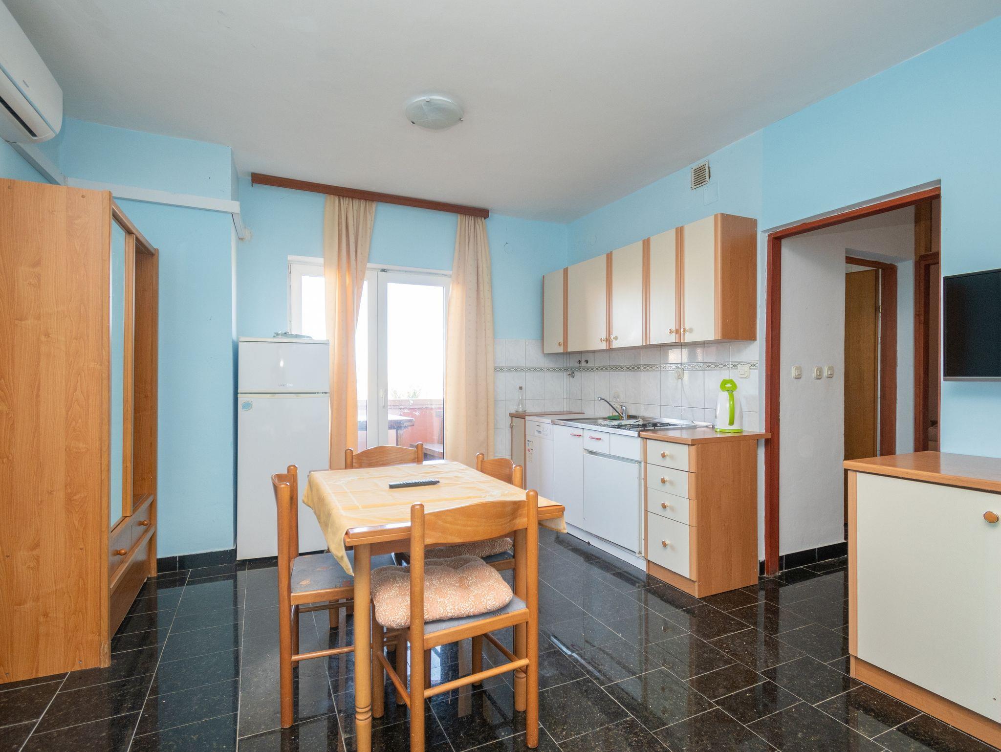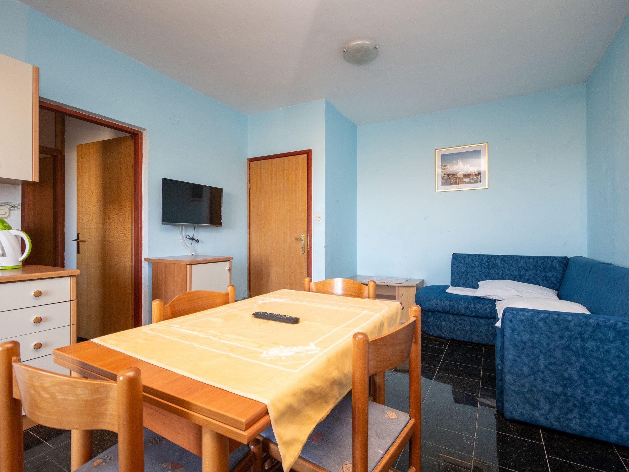Ferienwohnung bietet Platz für 4 Gäste. Die Betten sind in Schlafzimmern, die es 1 gibt, und in Wohnzimmer, innerhalb einer Gesamtfläche von 31m2, angeordnet. Die Gäste haben eine eigene Terrasse zur Verfügung, auf der sie in warmen Sommernächten genießen können. Das Apartment bietet Meerblick. Es ist erlaubt, Speisen auf dem Gemeinschafts-Grill vorzubereiten. In der Unterkunftseinheit besteht die Möglichkeit des Mitbringens von Haustieren gegen Aufpreis. IM PREIS INBEGRIFFEN: Kurtaxe, Endreinigung, Parkplatz, Internet. VERBINDLICHE ZUSÄTZLICHE KOSTEN: Aufzahlung für Kurzaufenthalte (prozentualer Zuschlag pro Nächtigungsanzahl: 30% - 1, 20% - 2, 10% - 3). UNVERBINDLICHE ZUSÄTZLICHE KOSTEN: Klimatisierung (6,00 € pro Nacht), Haustiere (10,00 € pro Nacht), Zusatzbett (10,00 € pro Nacht). Die Verfügbarkeit zusätzlicher Dienstleistungen in Ihrem reservierten Termin und die Preise derselben (falls nicht aufgeführt) müssen im Voraus überprüft werden. Zusätzliche Dienstleistungen die in der Zahlungsaufforderung nicht aufgeführt sind werden direkt beim Vermieter bezahlt, angenommen der Gast nutzt auch diese. Ermäßigung auf den Grundpreis: Gratistag 14=13 (bei einem Aufenthalt von 14 Tagen oder mehr erhalten Sie einen Gratistag für den Aufenthalt bis 31.12.26).