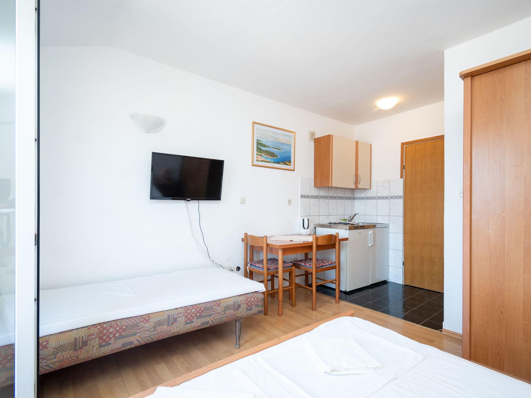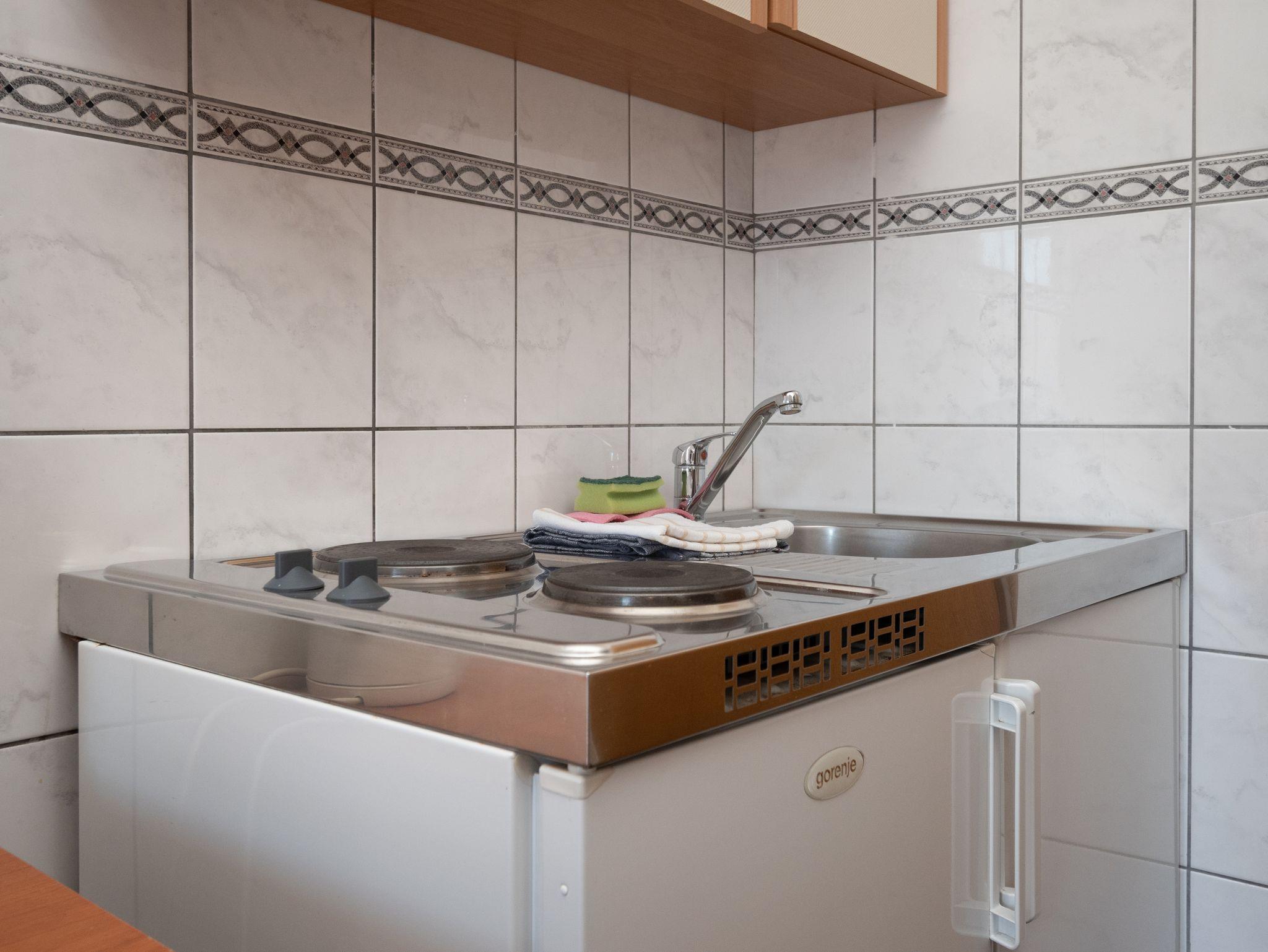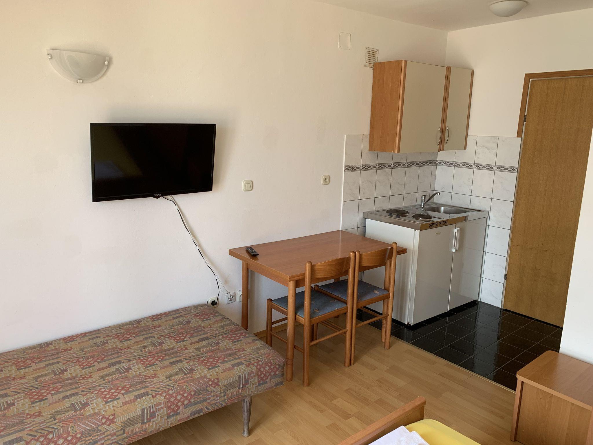 Studio bietet Platz für 2 Gäste. Die Betten sind in Schlafzimmern, die es 1 gibt, innerhalb einer Gesamtfläche von 17m2, angeordnet. Die Gäste haben einen eigenen Balkon zur Verfügung, auf der sie in warmen Sommernächten genießen können. Das Studio-Apartment bietet Meerblick. Es ist erlaubt, Speisen auf dem Gemeinschafts-Grill vorzubereiten. In der Unterkunftseinheit besteht die Möglichkeit des Mitbringens von Haustieren gegen Aufpreis. IM PREIS INBEGRIFFEN: Kurtaxe, Endreinigung, Parkplatz, Internet. VERBINDLICHE ZUSÄTZLICHE KOSTEN: Aufzahlung für Kurzaufenthalte (prozentualer Zuschlag pro Nächtigungsanzahl: 30% - 1, 20% - 2, 10% - 3). UNVERBINDLICHE ZUSÄTZLICHE KOSTEN: Klimatisierung (6,00 € pro Nacht), Haustiere (10,00 € pro Nacht), Zusatzbett (10,00 € pro Nacht). Die Verfügbarkeit zusätzlicher Dienstleistungen in Ihrem reservierten Termin und die Preise derselben (falls nicht aufgeführt) müssen im Voraus überprüft werden. Zusätzliche Dienstleistungen die in der Zahlungsaufforderung nicht aufgeführt sind werden direkt beim Vermieter bezahlt, angenommen der Gast nutzt auch diese. Ermäßigung auf den Grundpreis: Gratistag 14=13 (bei einem Aufenthalt von 14 Tagen oder mehr erhalten Sie einen Gratistag für den Aufenthalt bis 31.12.26).