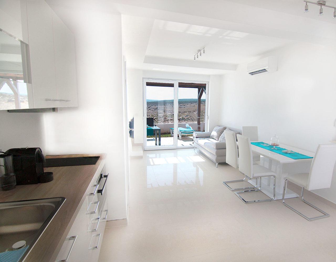 Atrium Blue Holiday House D. Kroatienurlaub im eigenen Reihenhaus in atemberaubender Lage und spektakulären, unverbautem Blick auf das Meer und die Berge.